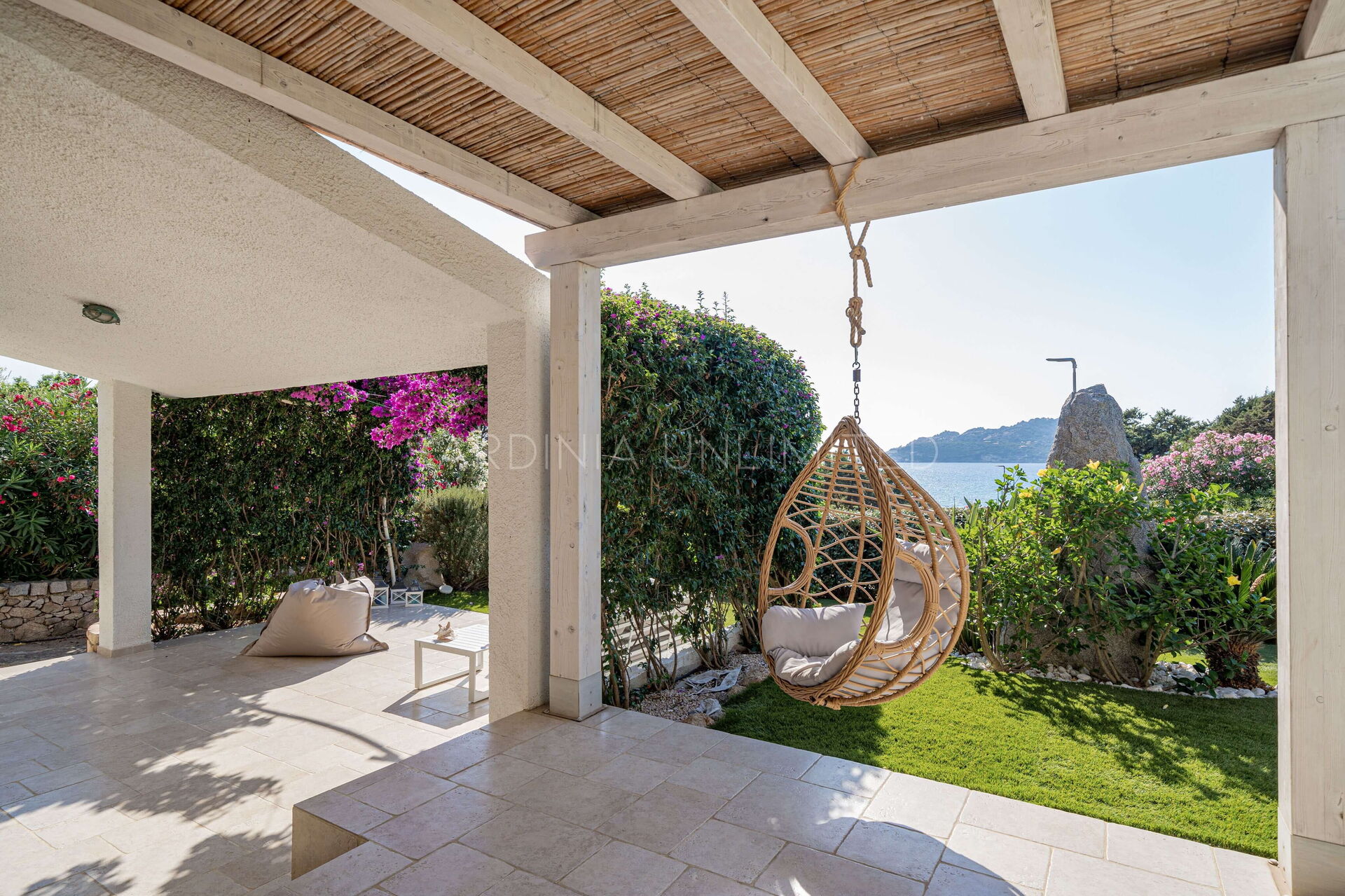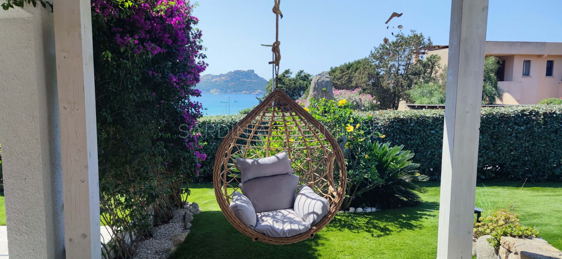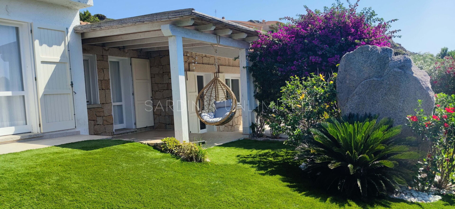 Nella splendida cornice naturalistica di Baia Santa Reparata, a pochi passi dal mare, si trova questa splendida villa in affitto in Sardegna. Villa Bolina dispone di ampi e accoglienti spazi esterni come uno spaziosissimo e ben curato prato inglese adornato con piante decorative e interamente cinto da una siepe che conferisce alla proprietà grande riservatezza e privacy. Inoltre, villa Bolina è dotata di una meravigliosa veranda esterna completamente attrezzata con un comodissimo divano ad angolo e delle poltrone che permettono di godersi piacevoli momenti di relax in compagnia ammirando la stupenda vista mare incorniciata da un pergolato di buganvillee dagli aromi intensi.