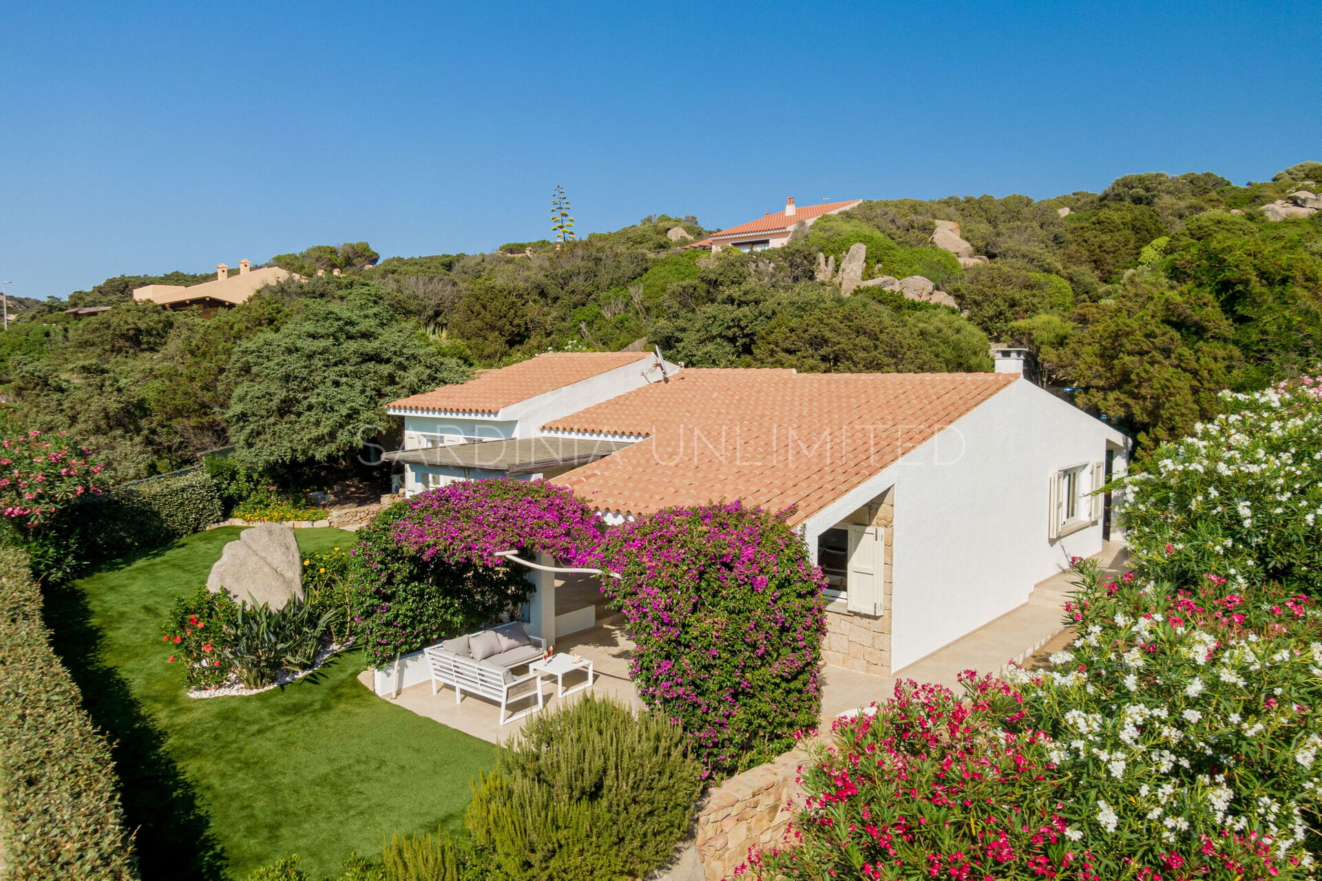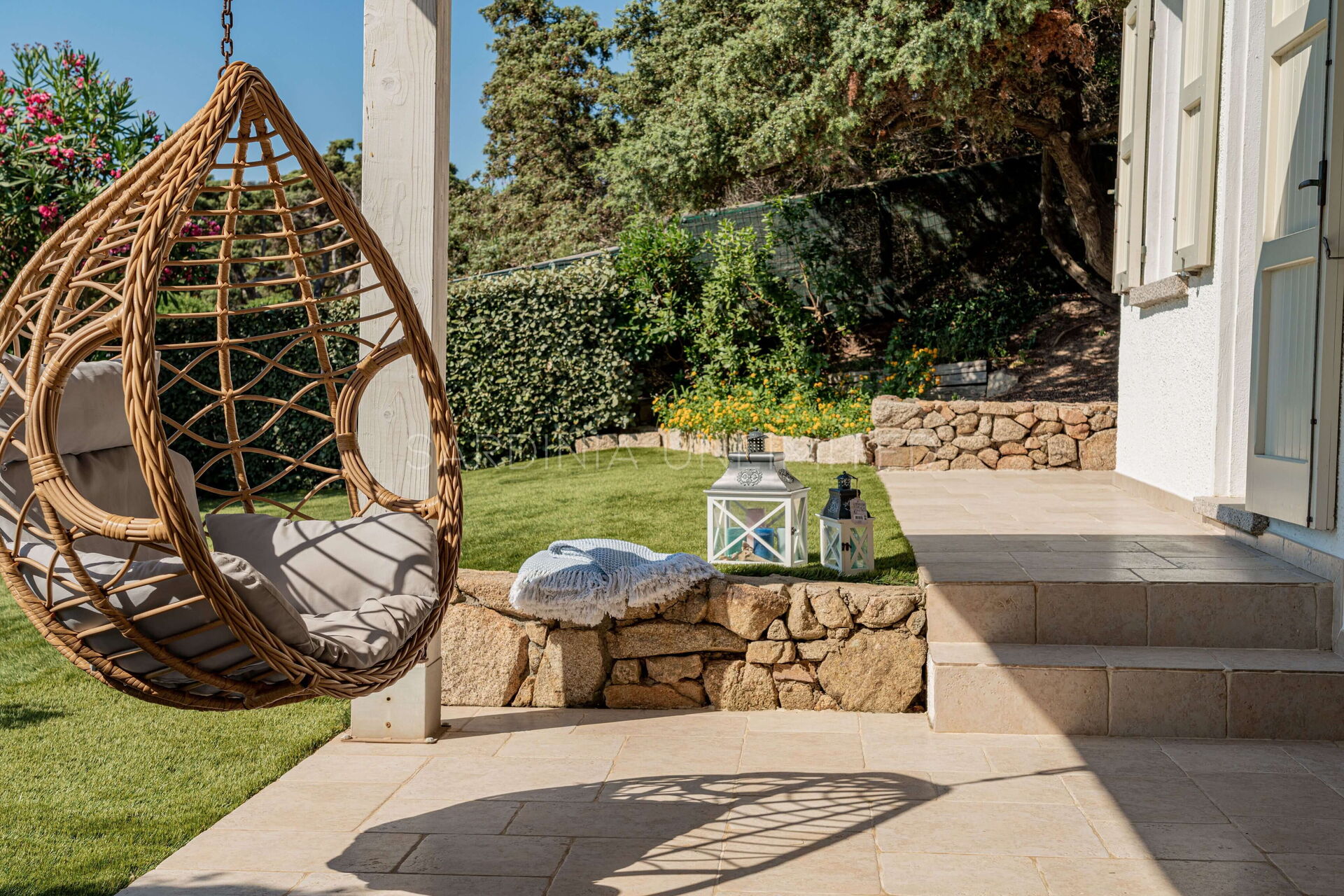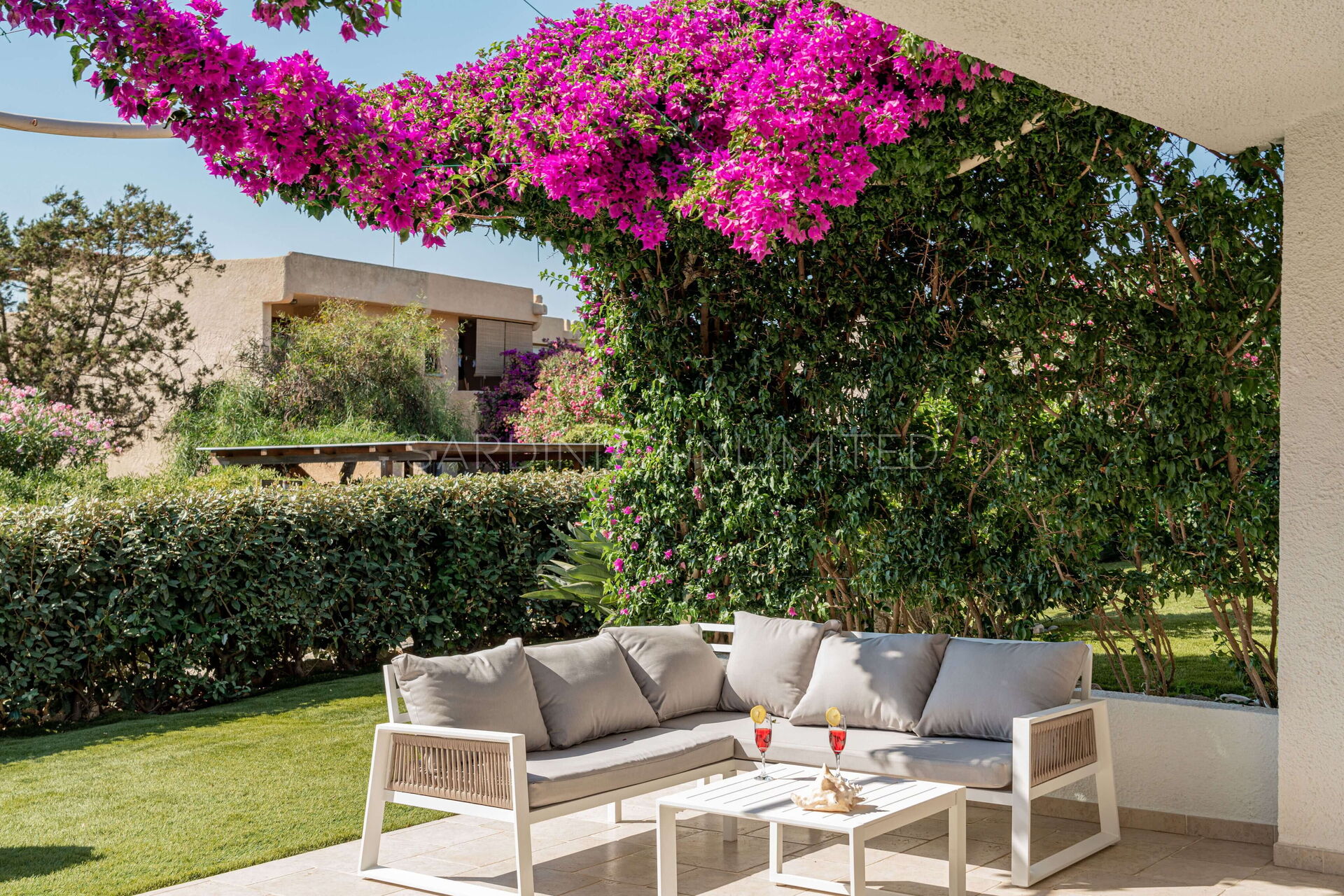 Nella splendida cornice naturalistica di Baia Santa Reparata, a pochi passi dal mare, si trova questa splendida villa in affitto in Sardegna. Villa Bolina dispone di ampi e accoglienti spazi esterni come uno spaziosissimo e ben curato prato inglese adornato con piante decorative e interamente cinto da una siepe che conferisce alla proprietà grande riservatezza e privacy. Inoltre, villa Bolina è dotata di una meravigliosa veranda esterna completamente attrezzata con un comodissimo divano ad angolo e delle poltrone che permettono di godersi piacevoli momenti di relax in compagnia ammirando la stupenda vista mare incorniciata da un pergolato di buganvillee dagli aromi intensi.