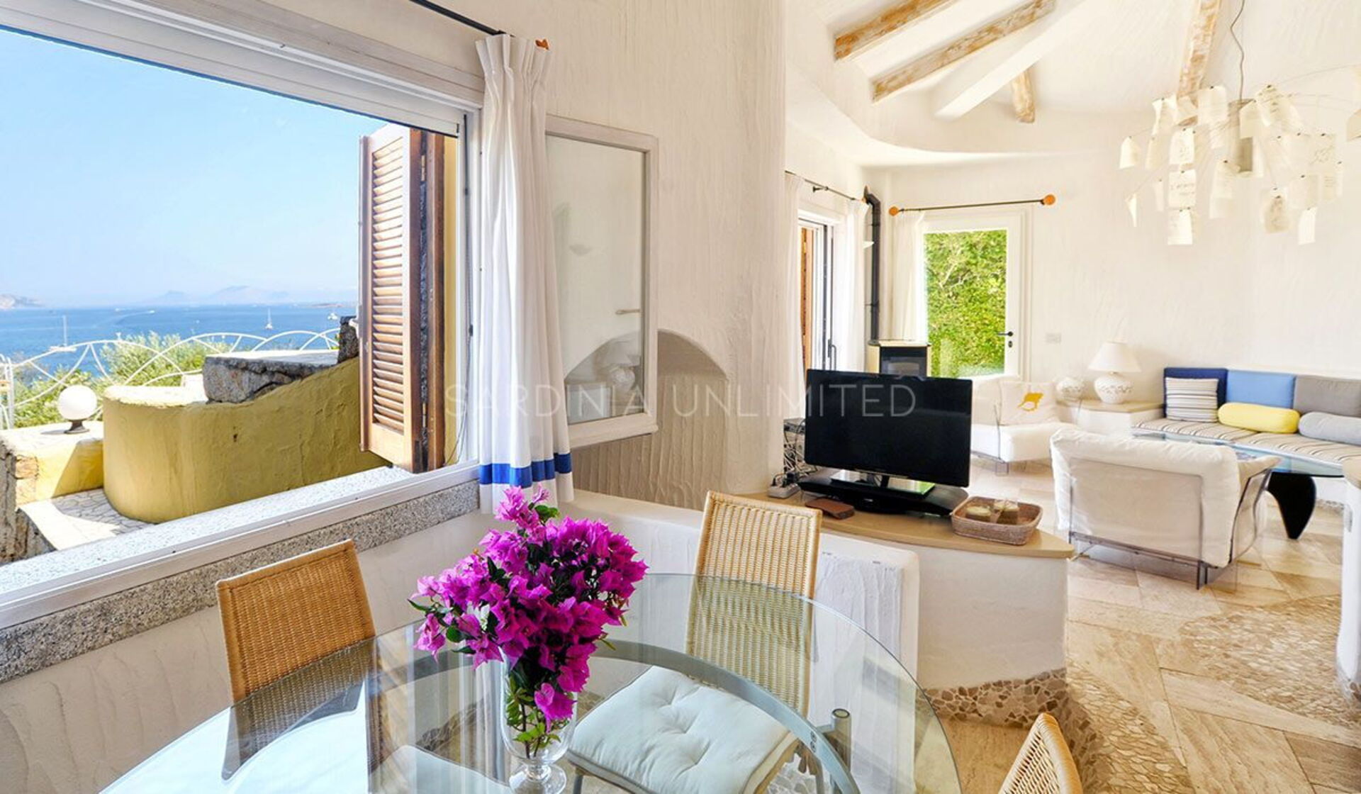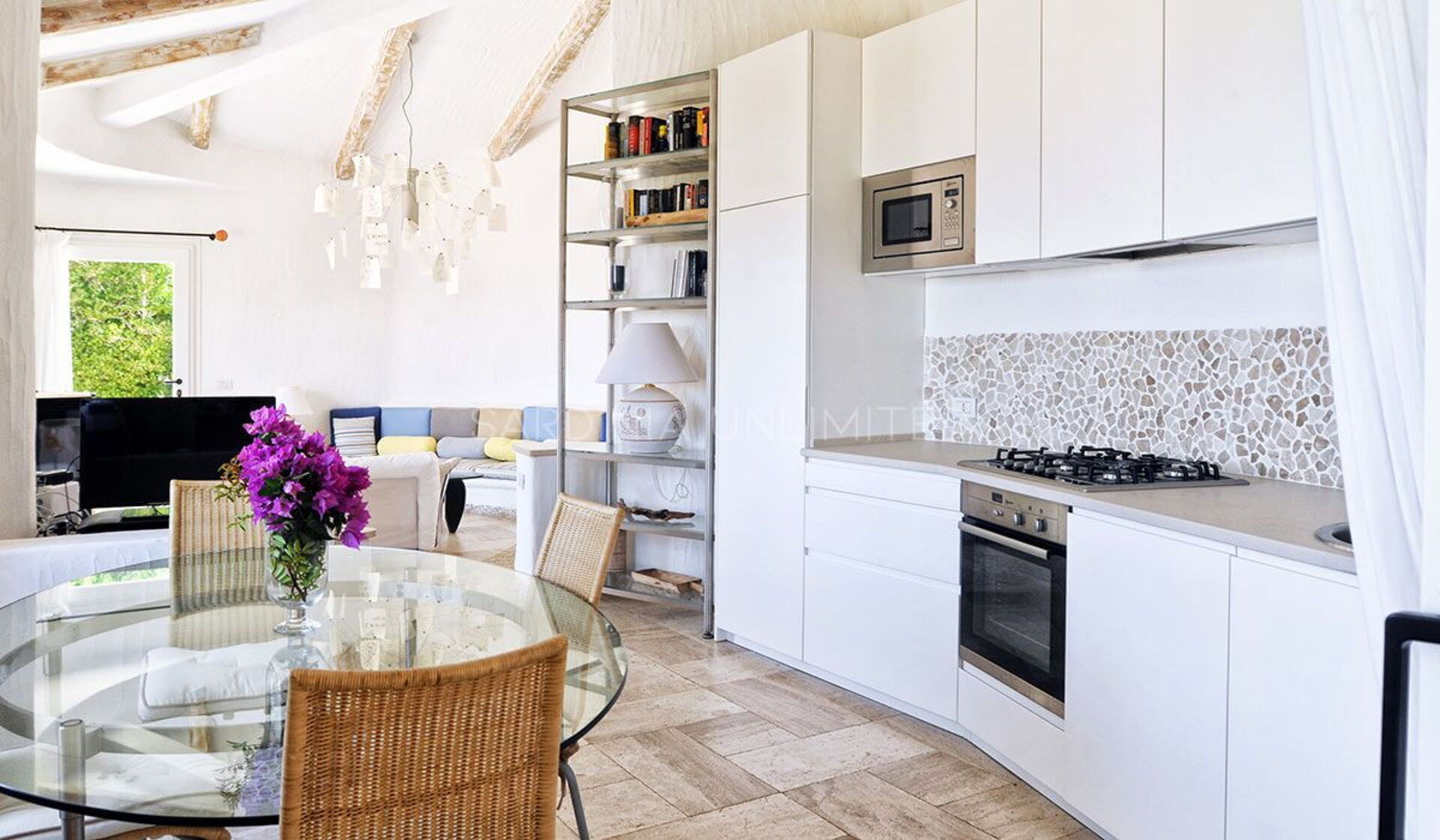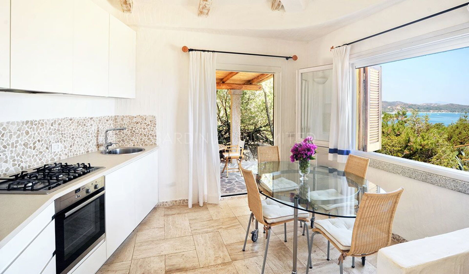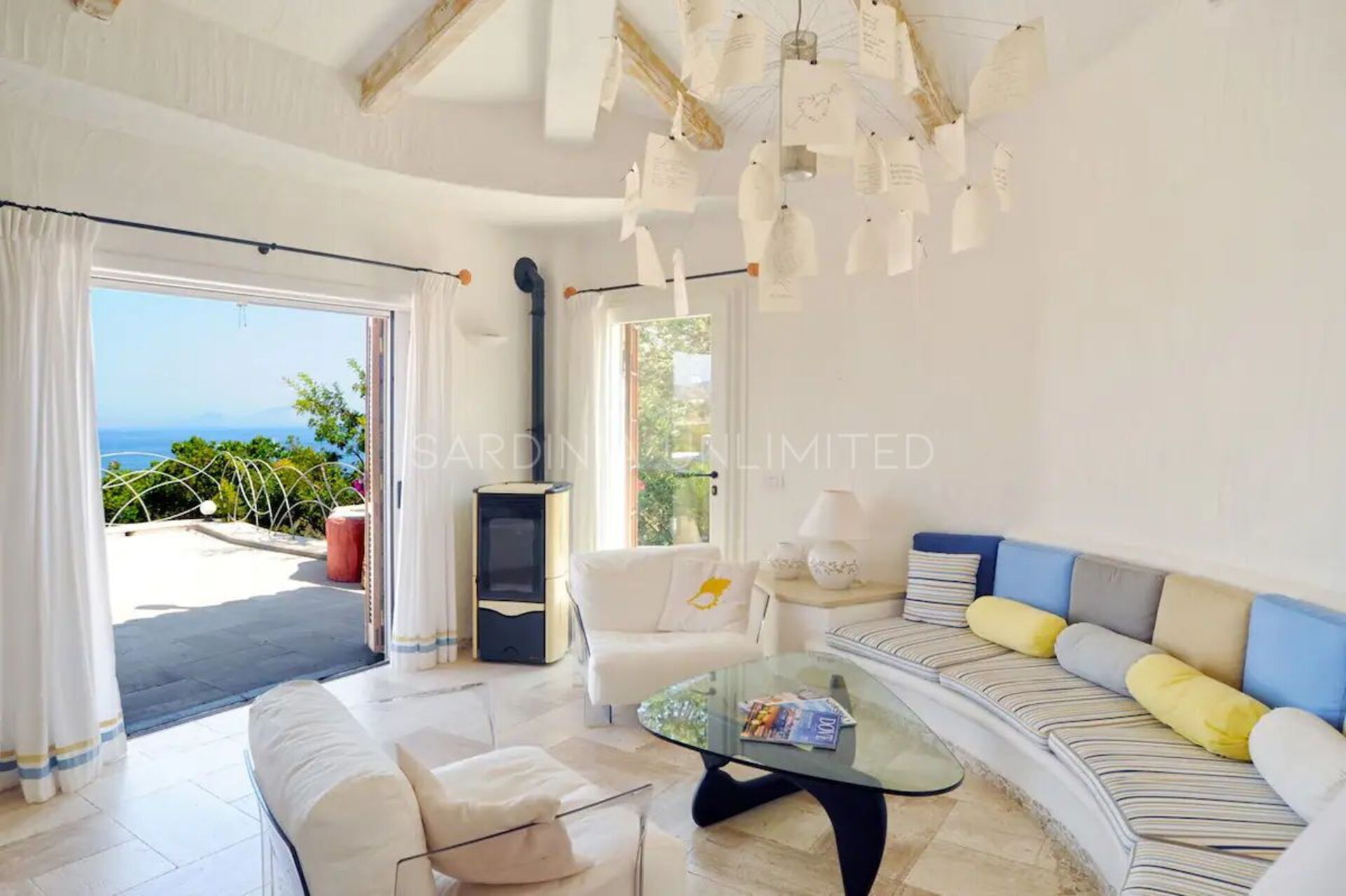 A fully equipped kitchen overlooks the large and elegant living room, from which is possible to access to a panoramic terrace that frames the beautiful Tavolara Island.