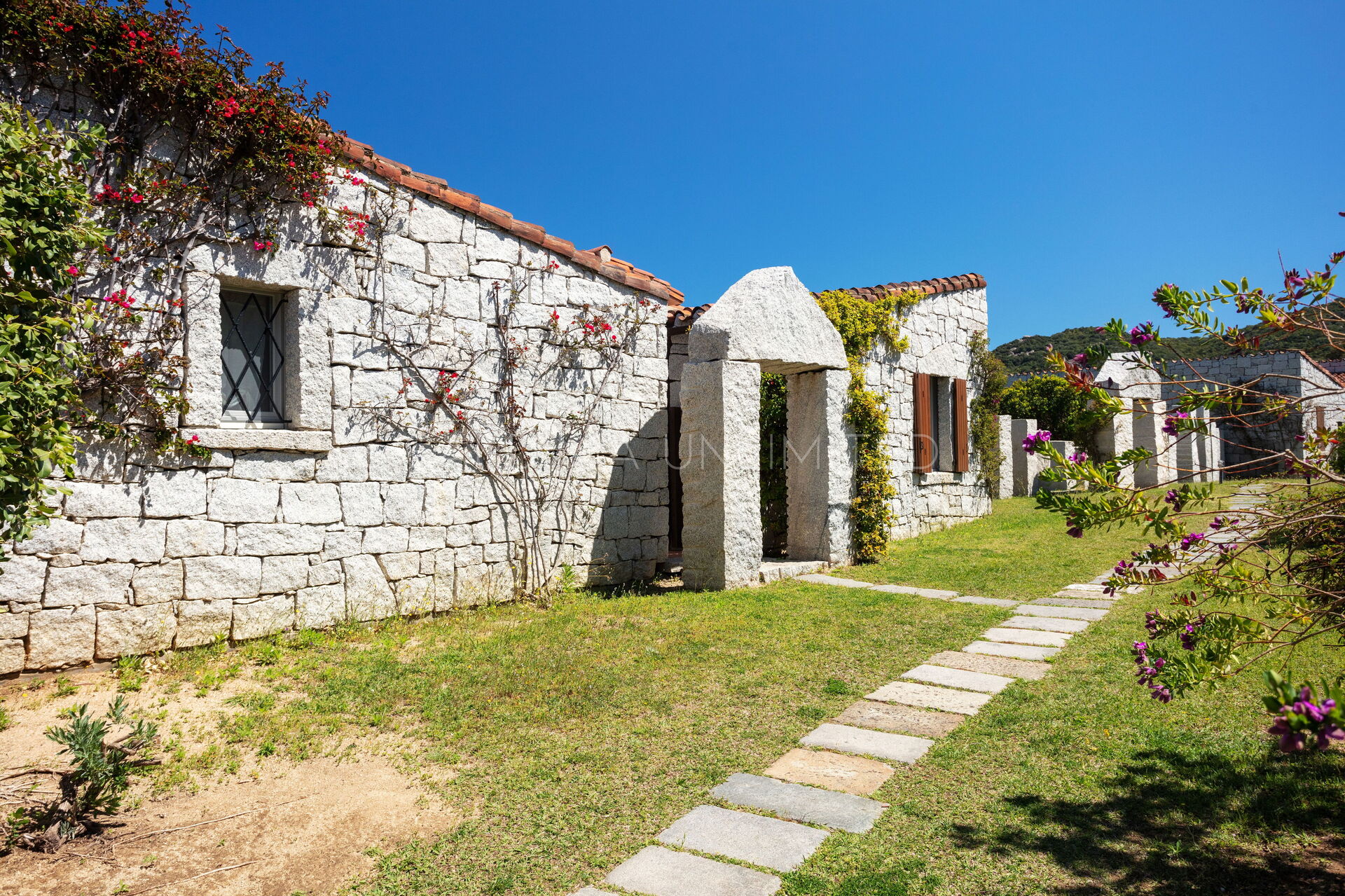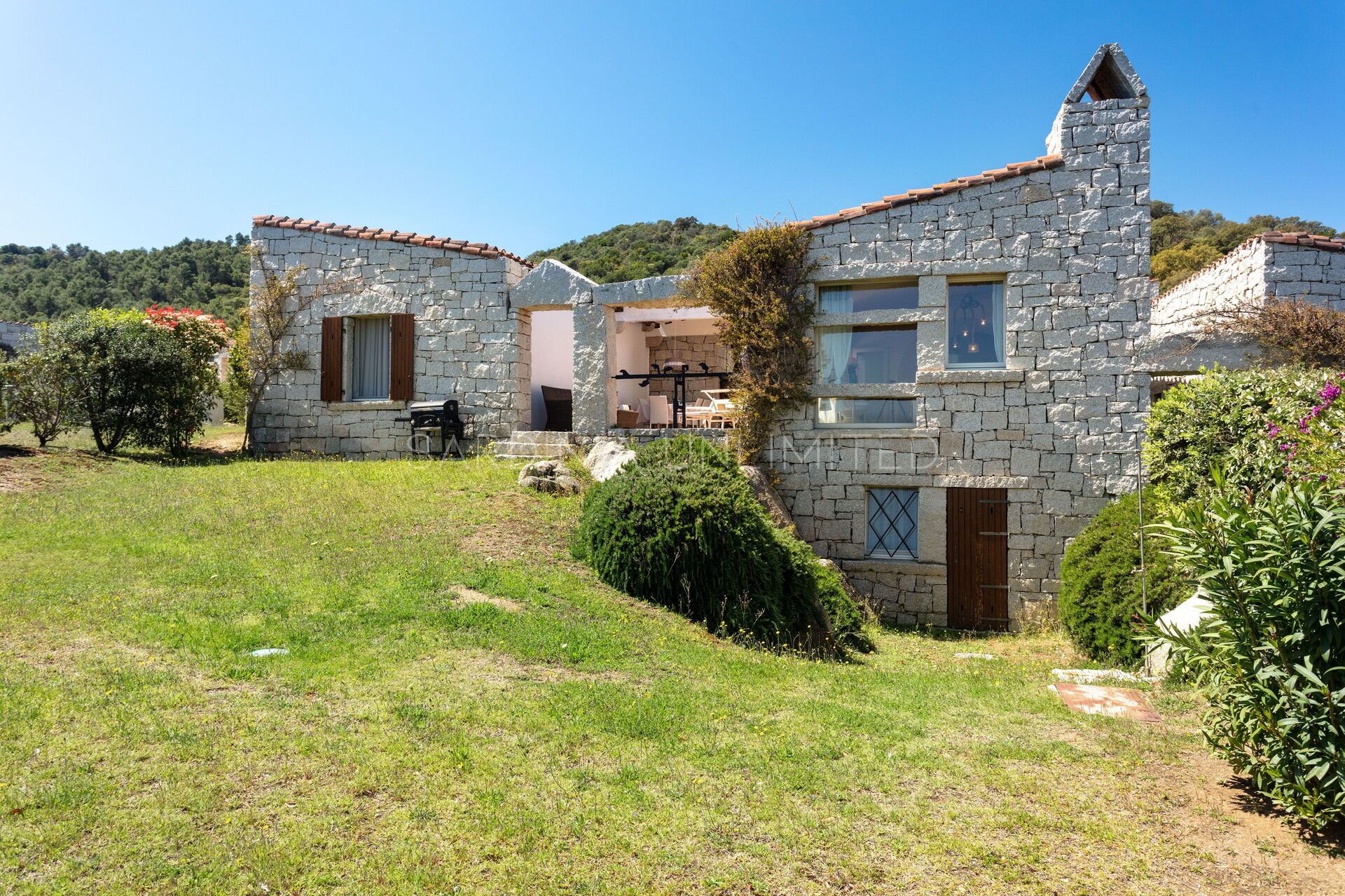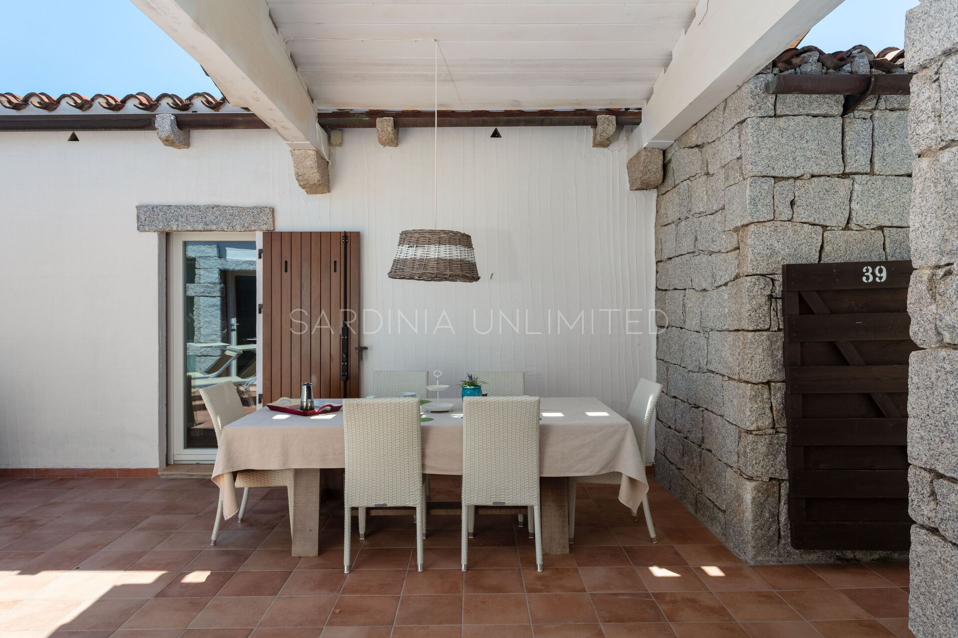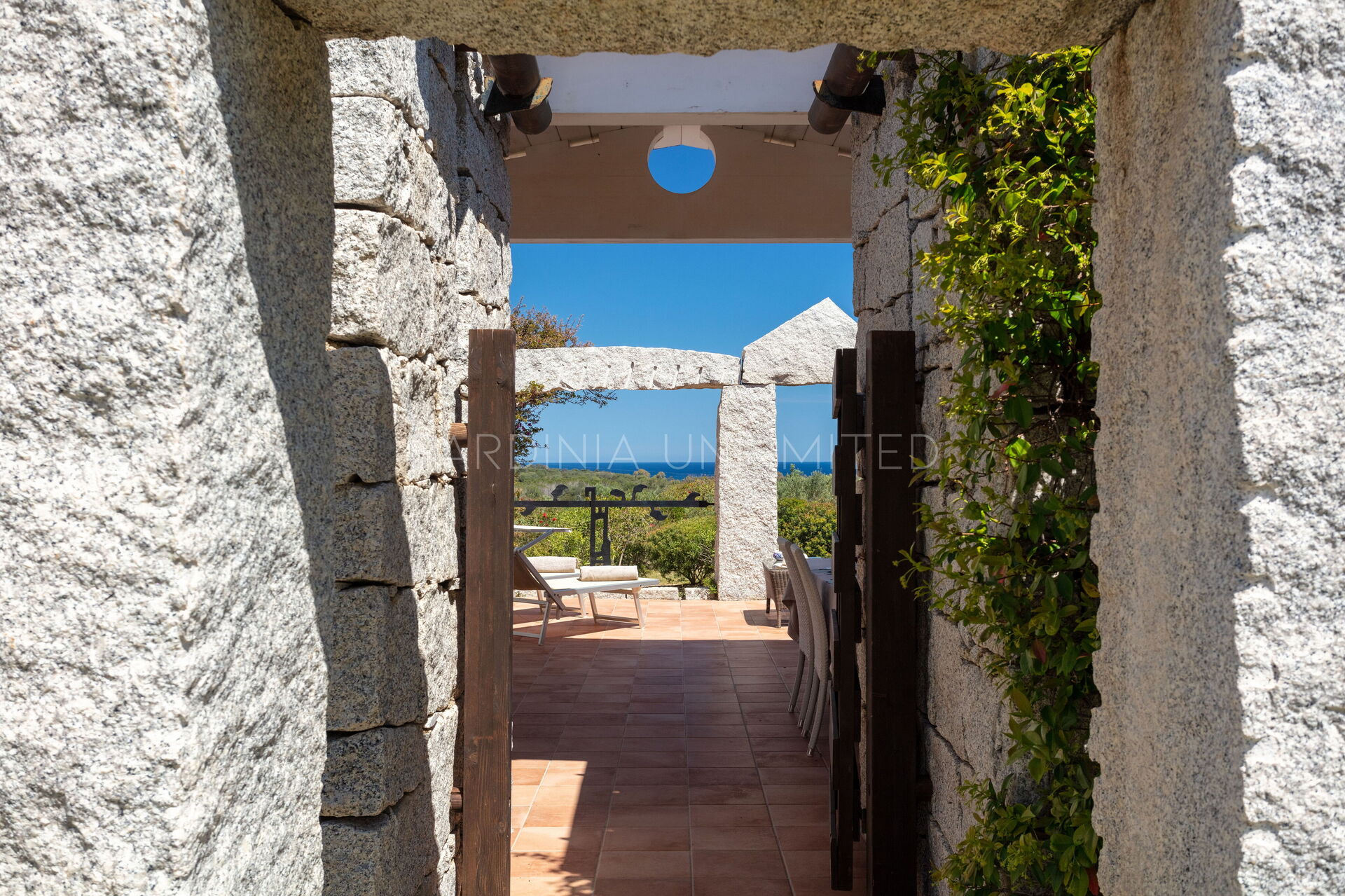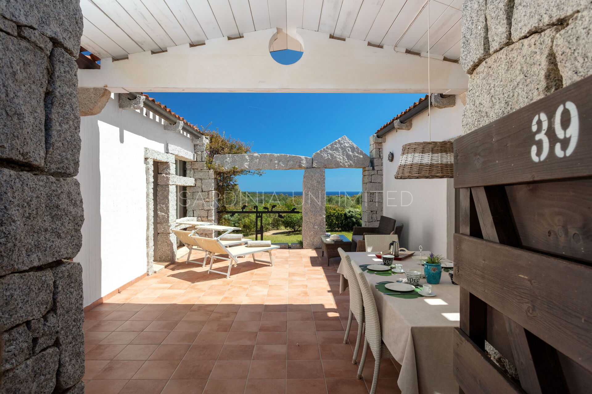 This villa to rent in Sardinia presents itself as a fantastic example of a stone building in which the granite, meticulously worked, emerges in all its beauty with the aim of creating a harmony between human and natural elements. To enjoy the harmony given by the indigo of the sea and the warm colors of the Mediterranean maquis, the villa has a spacious patio which houses a lounge area, a solarium area and a table for comfortably having meals outdoors.