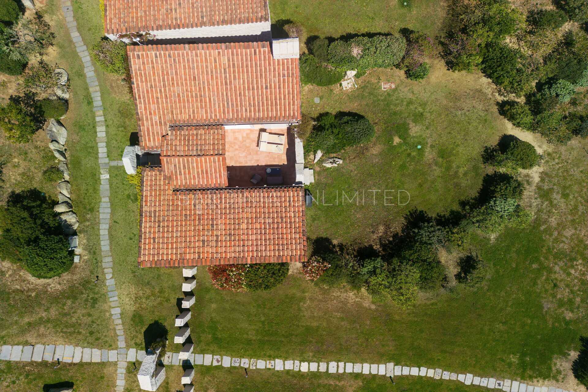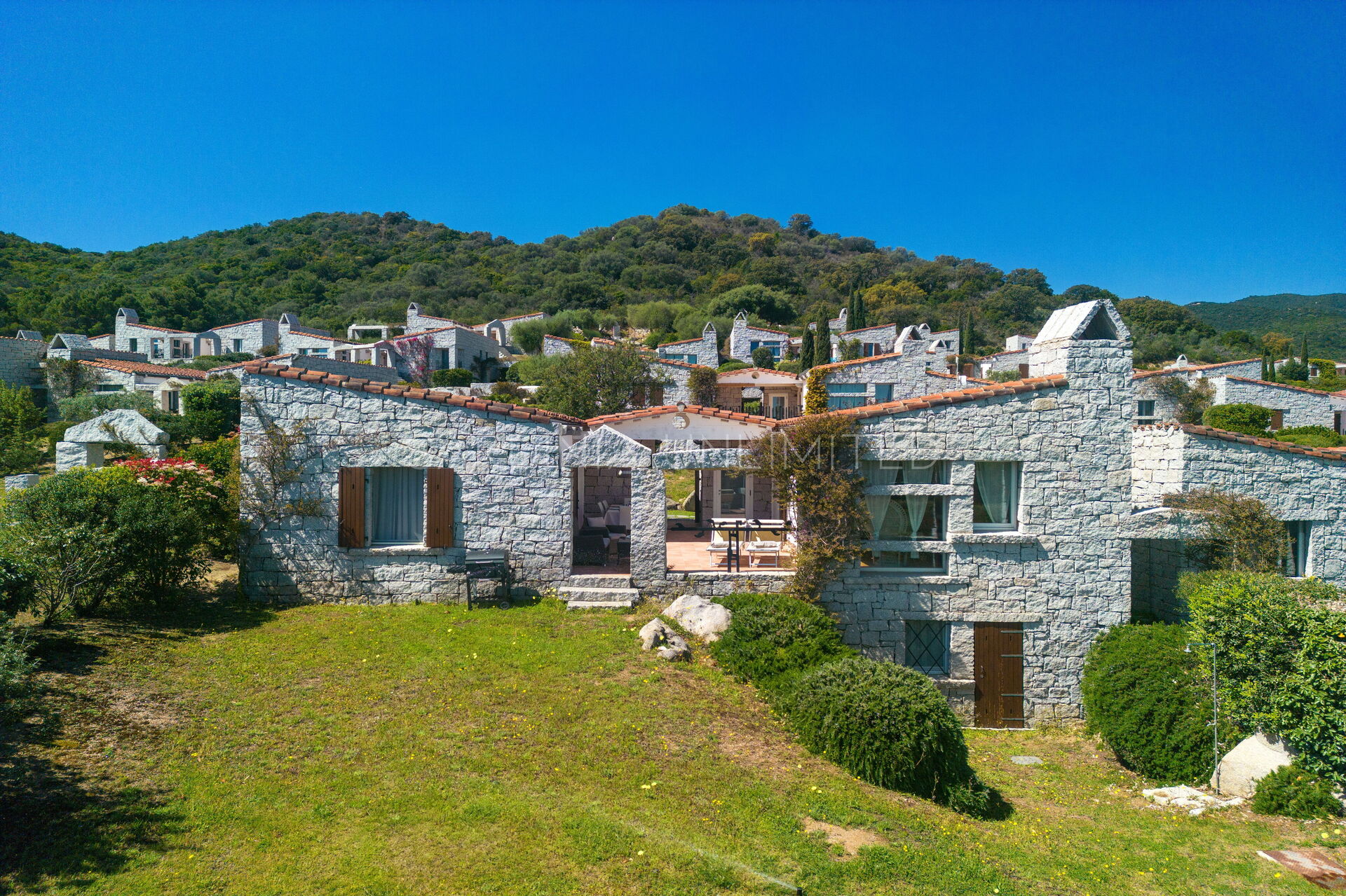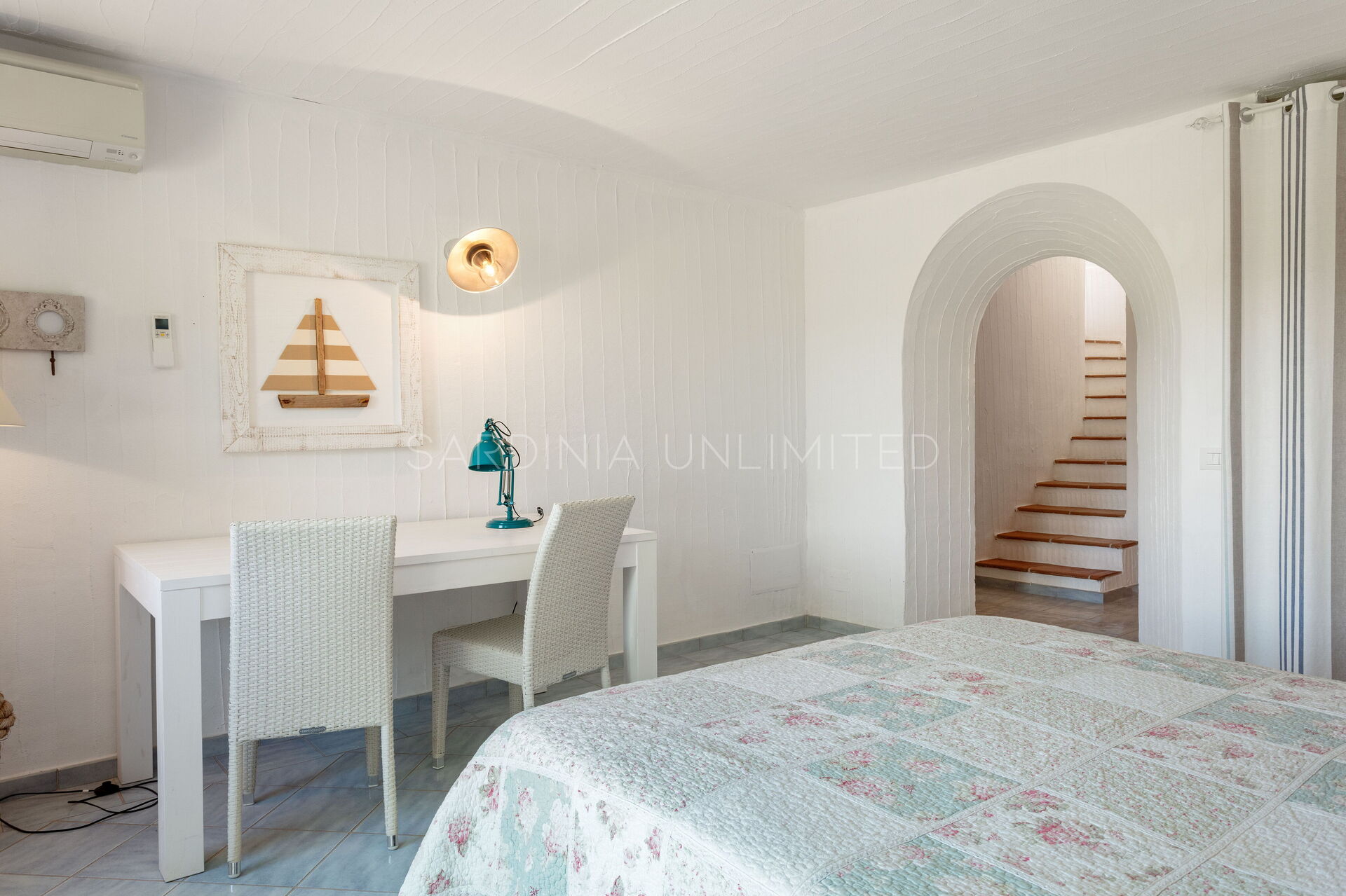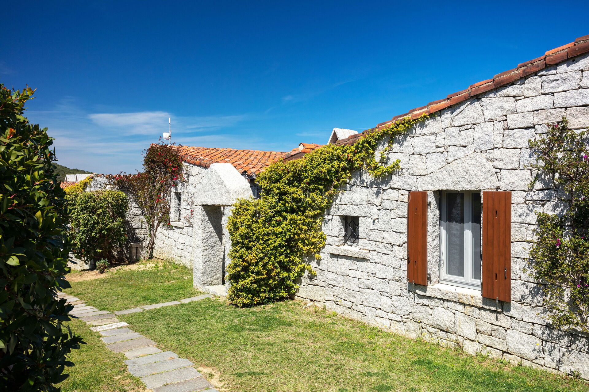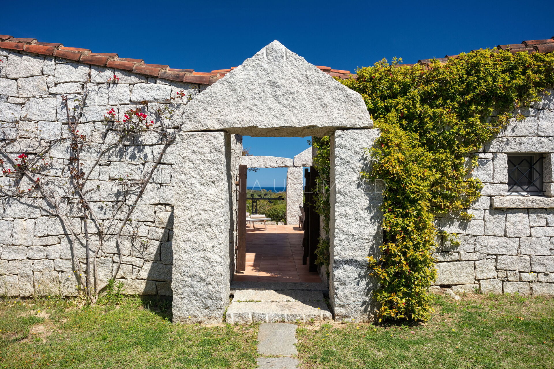 This villa to rent in Sardinia presents itself as a fantastic example of a stone building in which the granite, meticulously worked, emerges in all its beauty with the aim of creating a harmony between human and natural elements. To enjoy the harmony given by the indigo of the sea and the warm colors of the Mediterranean maquis, the villa has a spacious patio which houses a lounge area, a solarium area and a table for comfortably having meals outdoors.