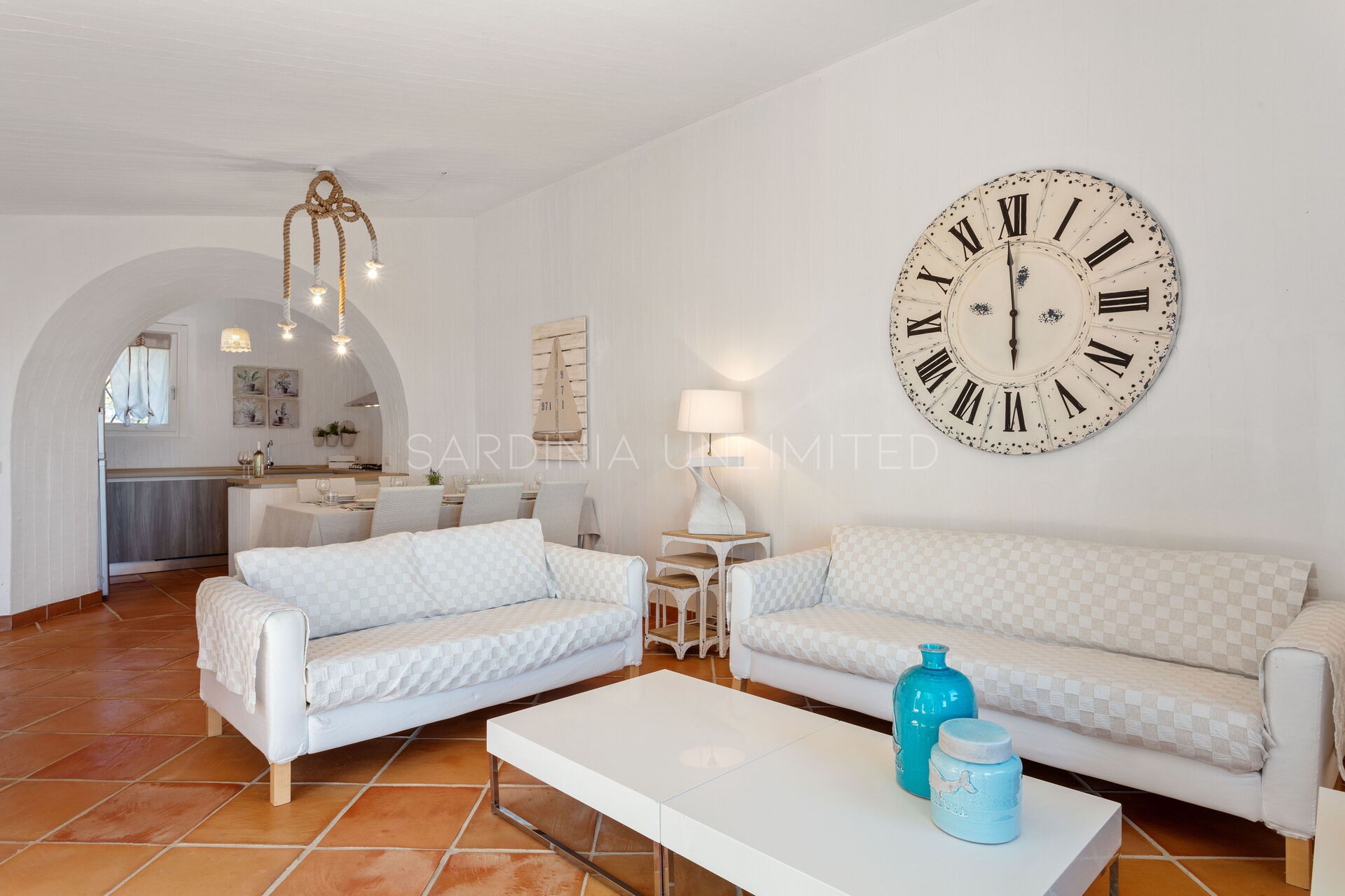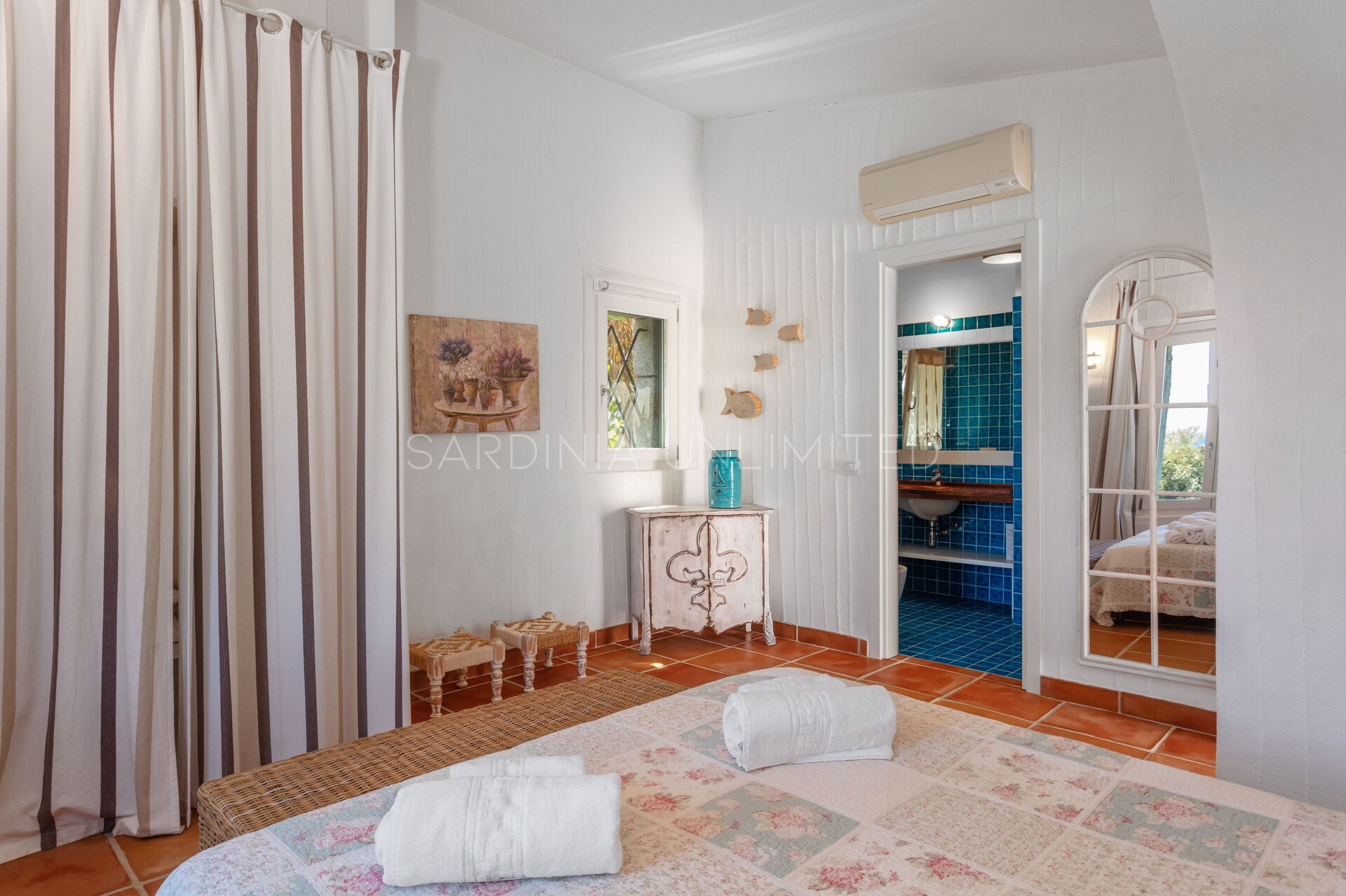 Villetta Bluetiful is a charming villa to rent in Italy designed to comfortably accommodate up to a maximum of six people. In fact, the property has large and bright interior spaces, starting from the open space. This consists of a very bright living area with a panoramic view, a table and a comfortable fully equipped corner kitchen, all in an elegant modern rustic style made up of harmonious contrasts between the red of the terracotta and the whiteness of the furniture. The sleeping area consists of three large double bedrooms, one of which has an en-suite bathroom.