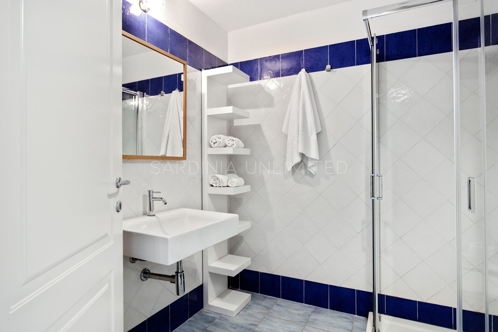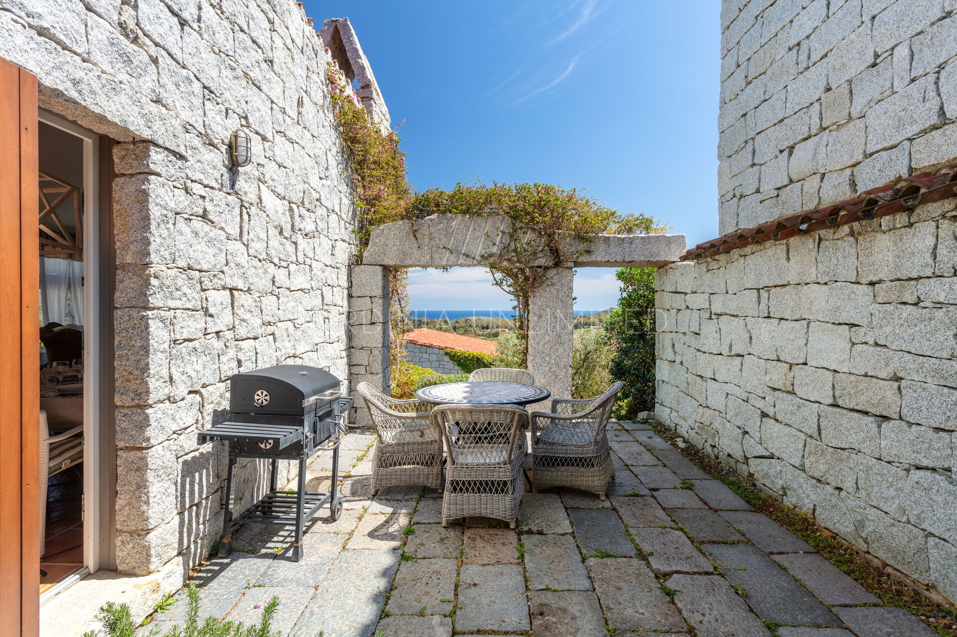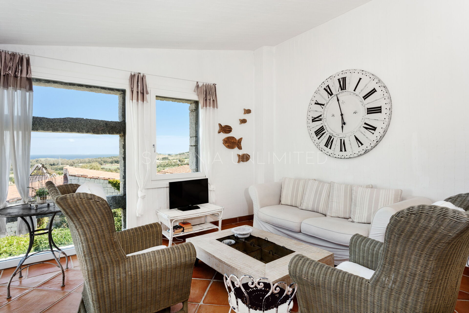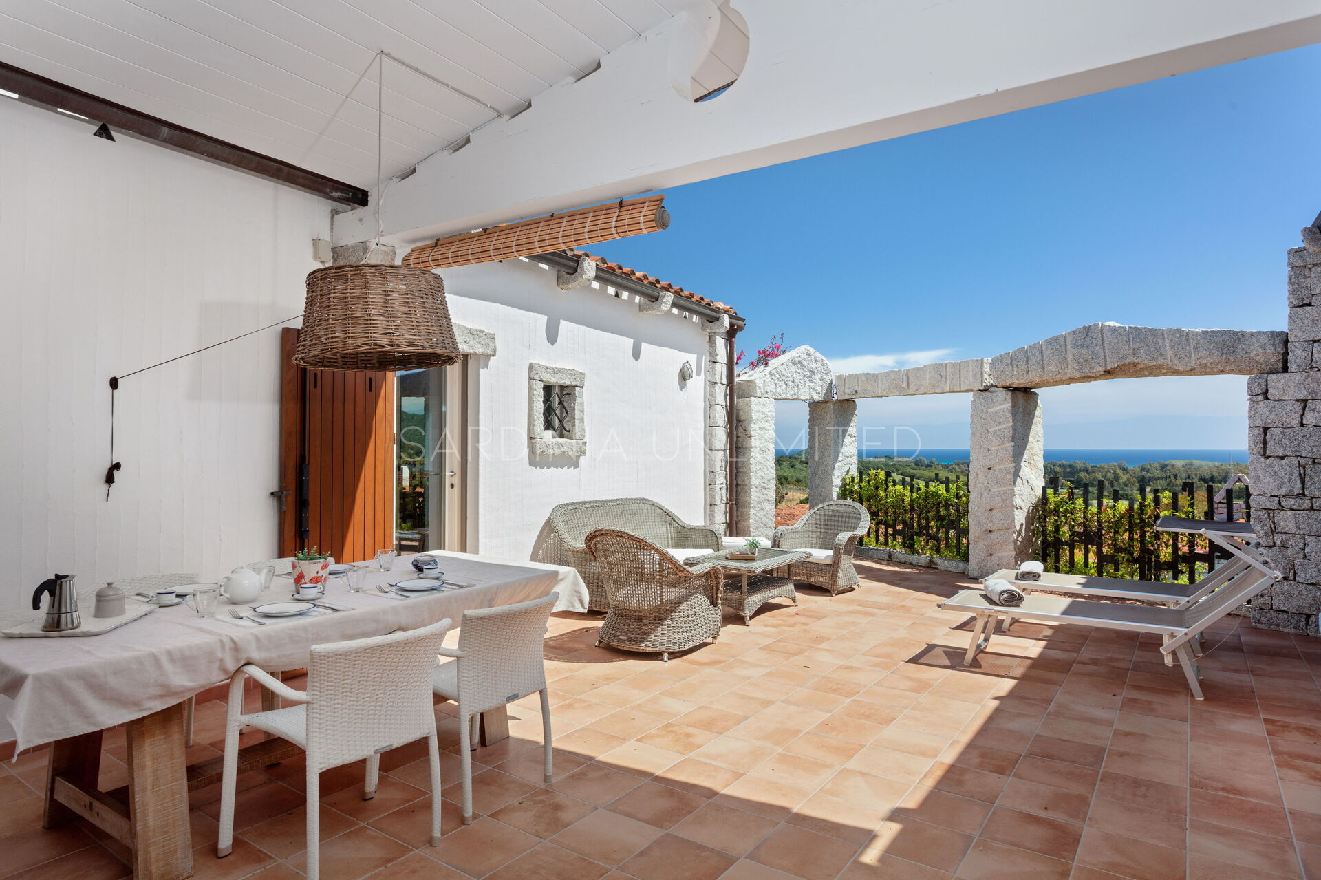 The sleeping area instead consists of a spacious double bedroom with private balcony and sea view which, thanks to the large French windows, gives it a feeling of continuity with the external nature. Furthermore, the house has another very large double bedroom equipped with all comforts and a last room, fully furnished in Sardinian style, with three single beds.