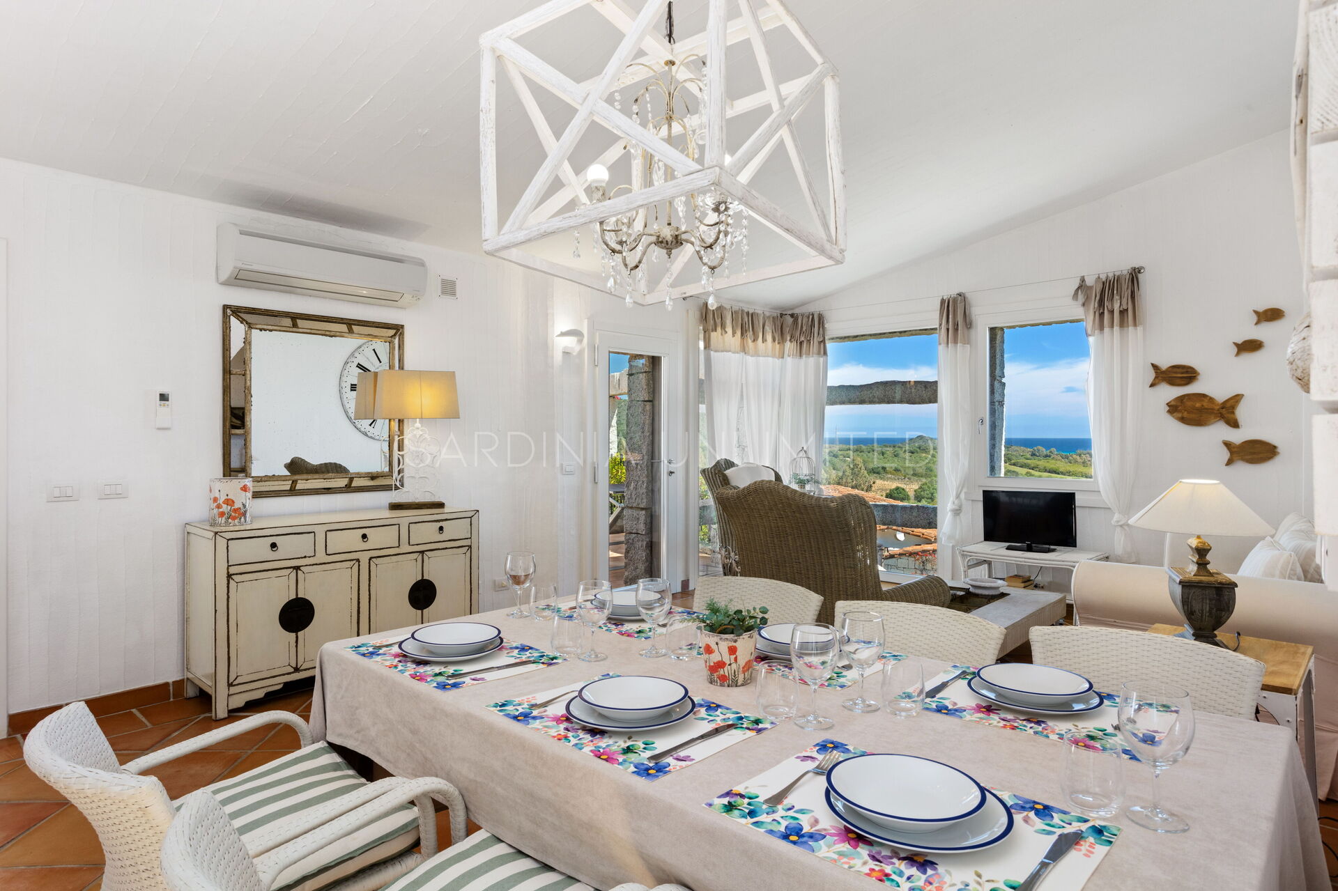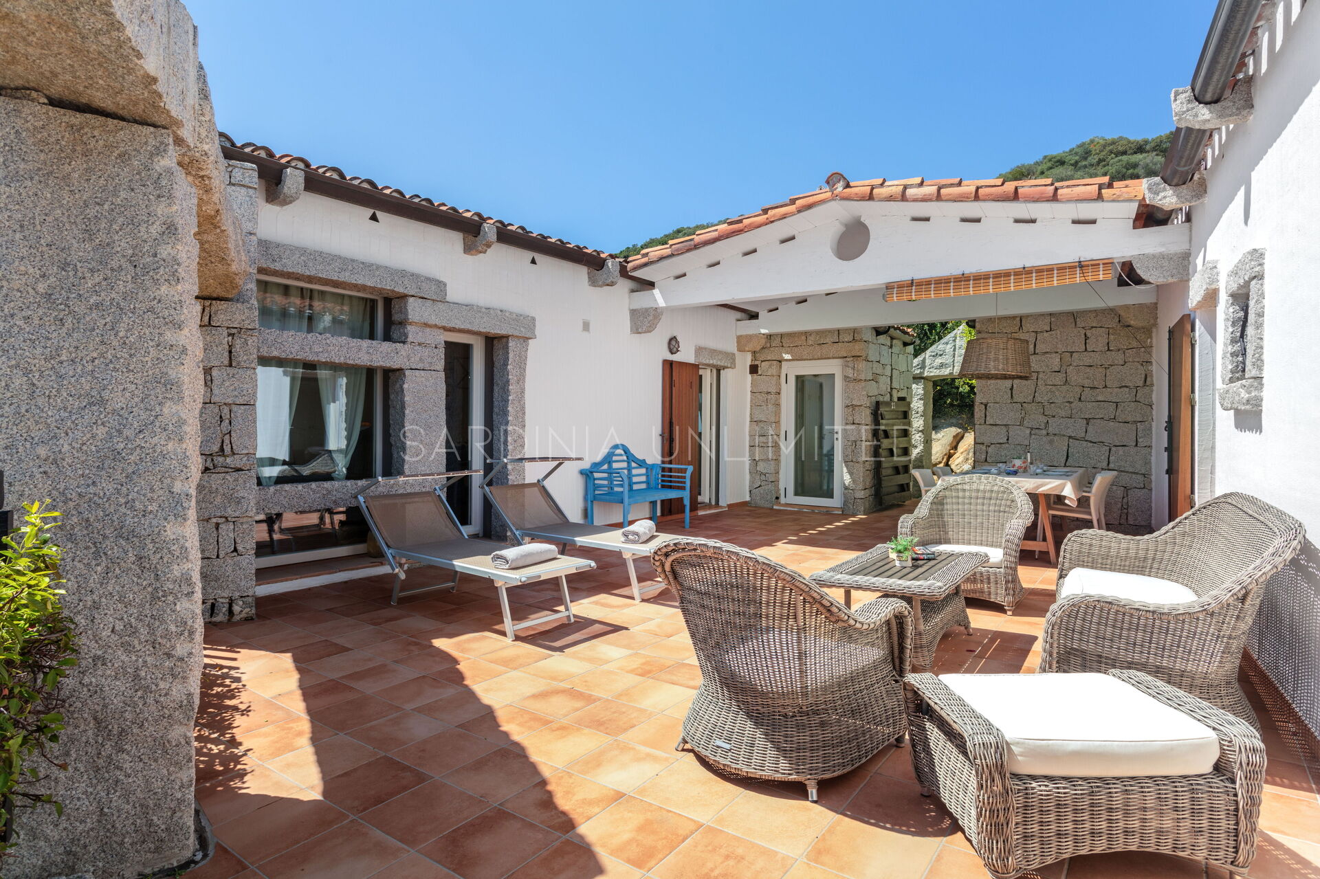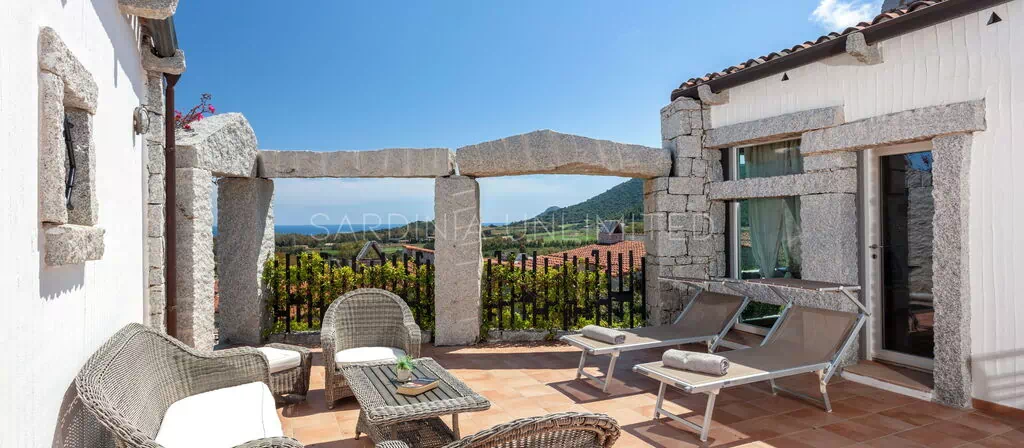 Villetta Thulian is a charming seafront villa in Sardinia, located in the natural village of Li Conchi built according to naturalistic criteria and with the aim of creating a synergy between the buildings and the surrounding landscape. This is accomplished through an impressive use of exposed stone on the outside and an abundance of wood and modern rustic style inside. The house also has a large panoramic patio with a solarium area where you can spend pleasant moments in company and enjoy the fragrances of the Mediterranean scrub that reigns supreme here.