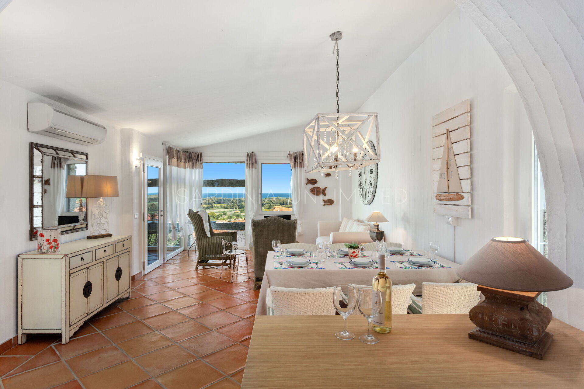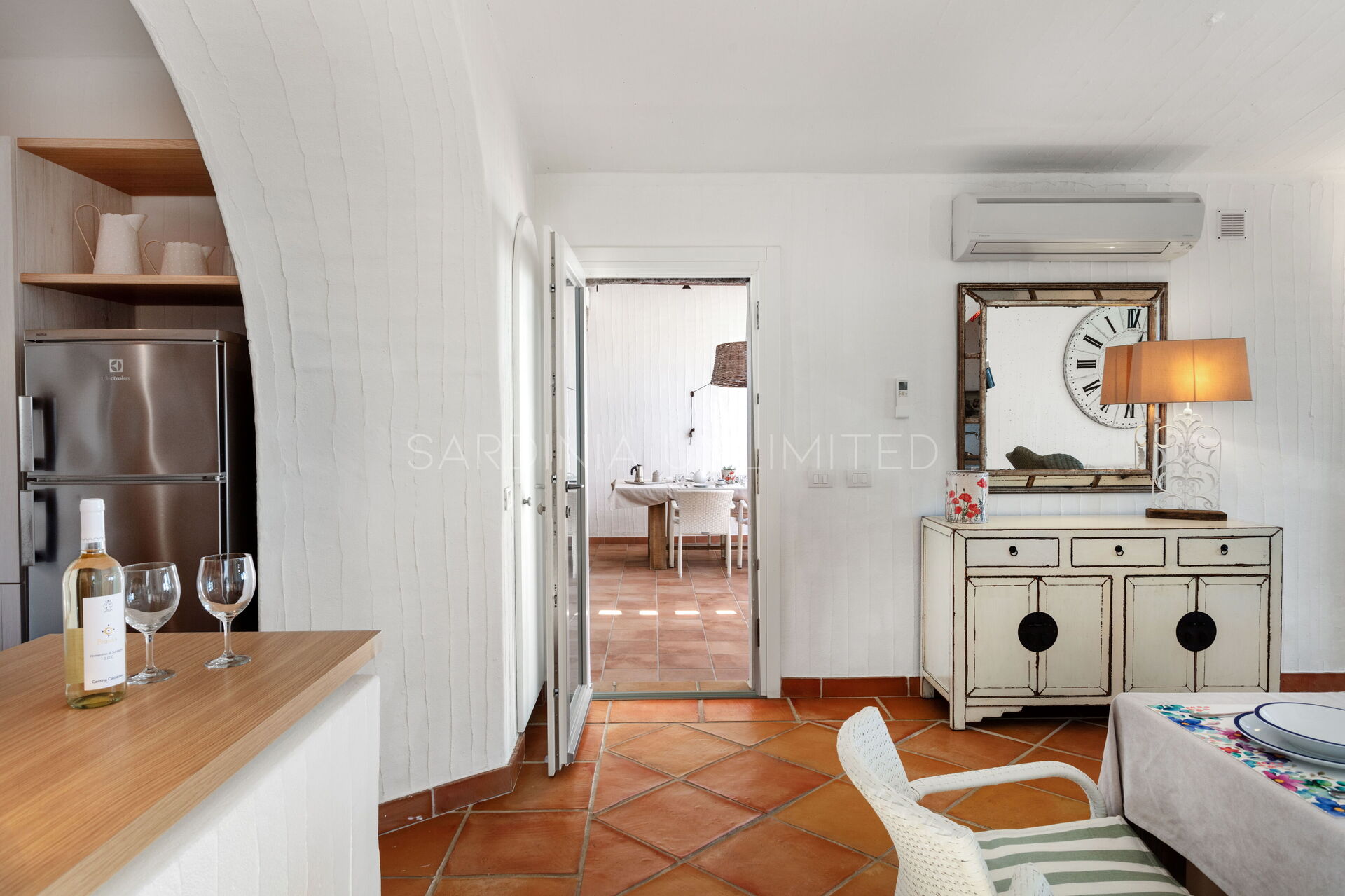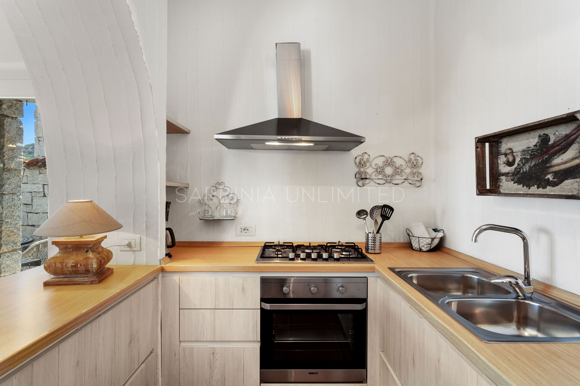 Villetta Thulian is a charming seafront villa in Sardinia, located in the natural village of Li Conchi built according to naturalistic criteria and with the aim of creating a synergy between the buildings and the surrounding landscape. This is accomplished through an impressive use of exposed stone on the outside and an abundance of wood and modern rustic style inside. The house also has a large panoramic patio with a solarium area where you can spend pleasant moments in company and enjoy the fragrances of the Mediterranean scrub that reigns supreme here.