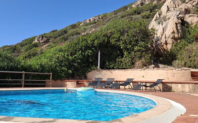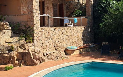 This holiday home is part of a six apartments complex, with a shared pool, built in a typical Sardinian style and located in a unique position overlooking the sea. Undoubtedly the perfect Sardinia home rental, ideal for a relaxing holiday in the island. It is located just 450 meters from the sea and 1600 meters from the splendid sandy Li Cossi beach, one of the most beautiful and fascinating on the island. Other small bays are located 800 meters from the house where you can swim, snorkel or simply sunbathe.
