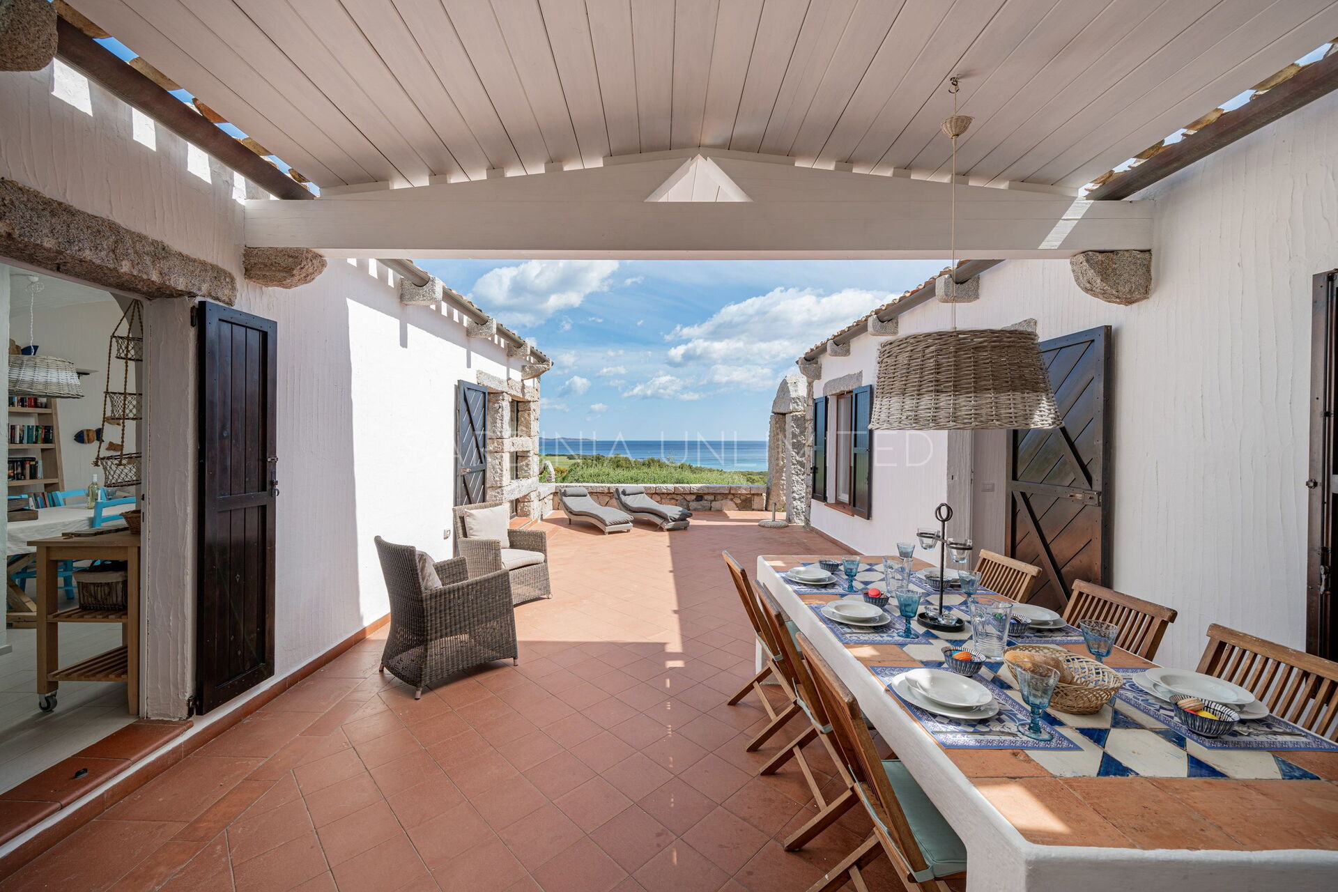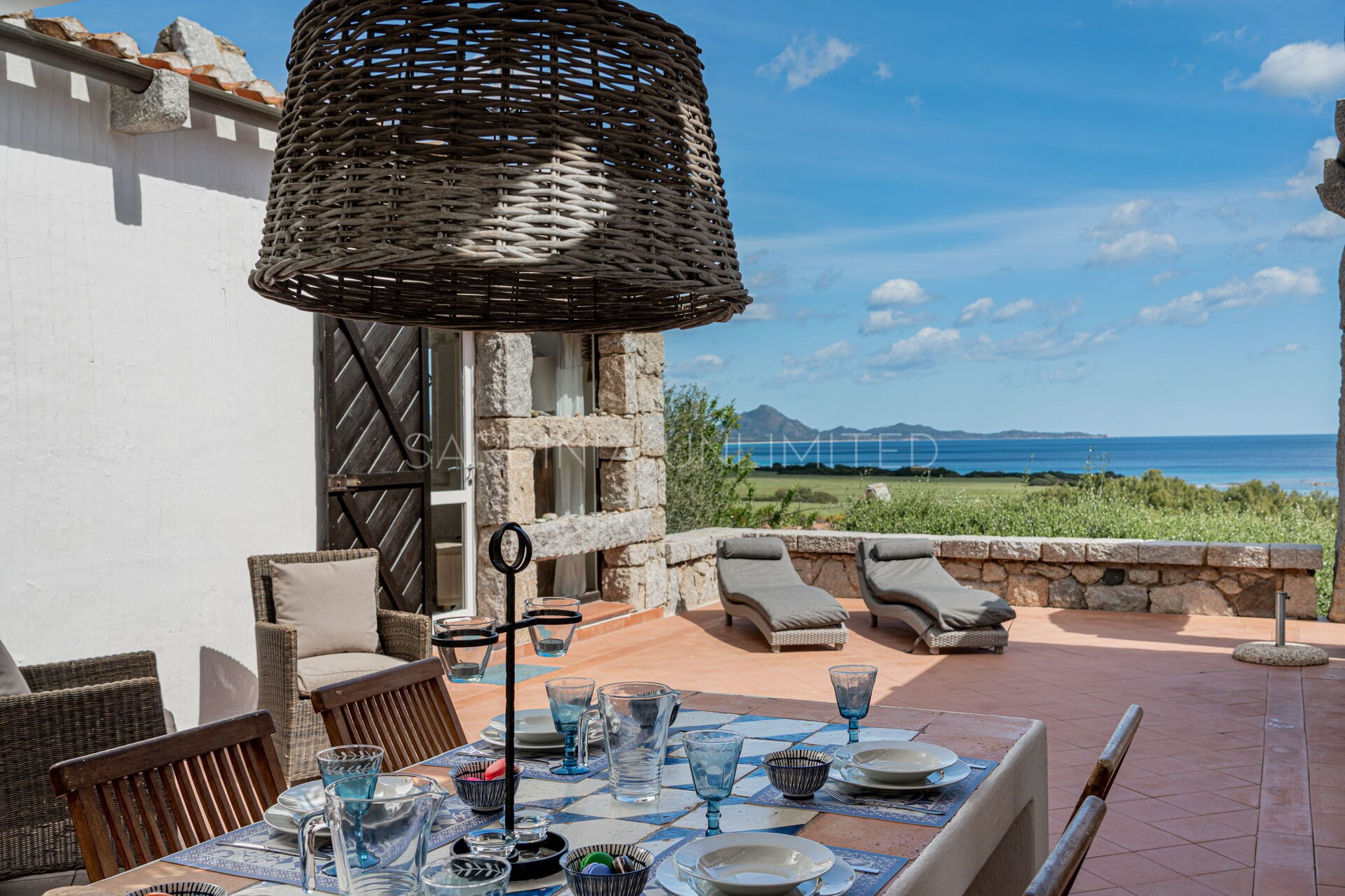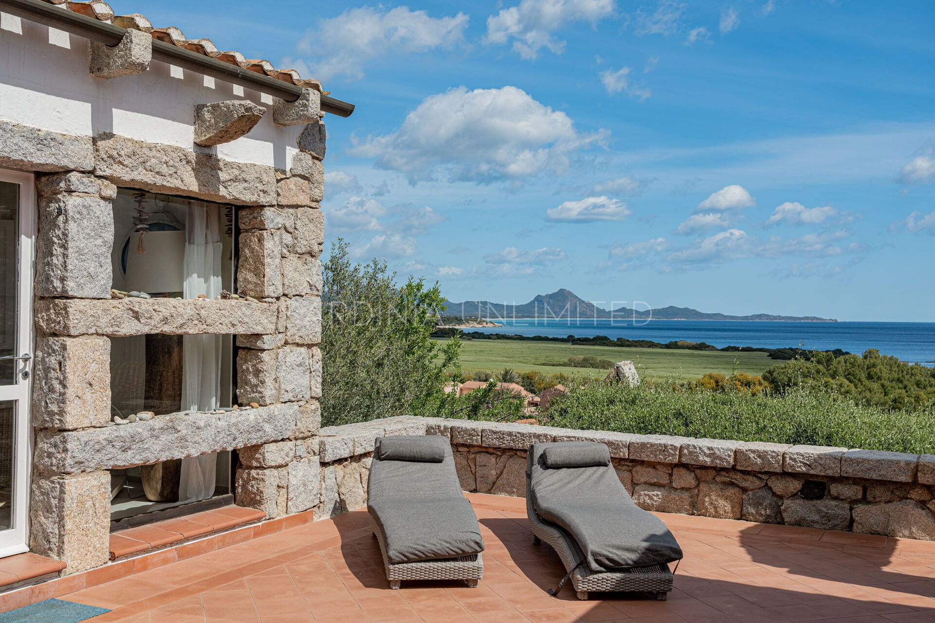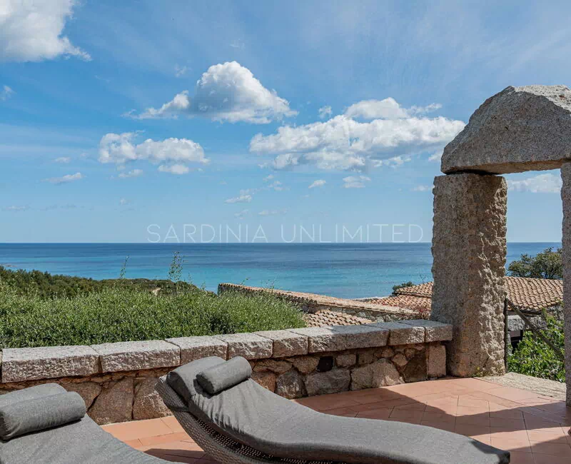 This villa rental in Sardinia has a comfortable and spacious patio that opens onto a breathtaking panorama where there is a solarium area as well as a table useful for having pleasant meals outdoors or moments in company.