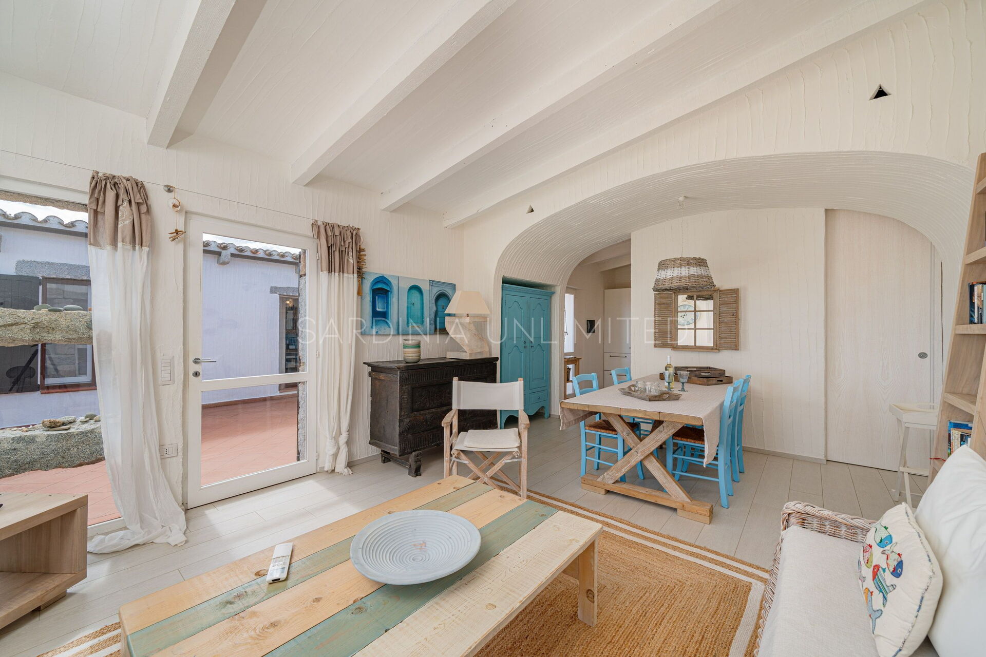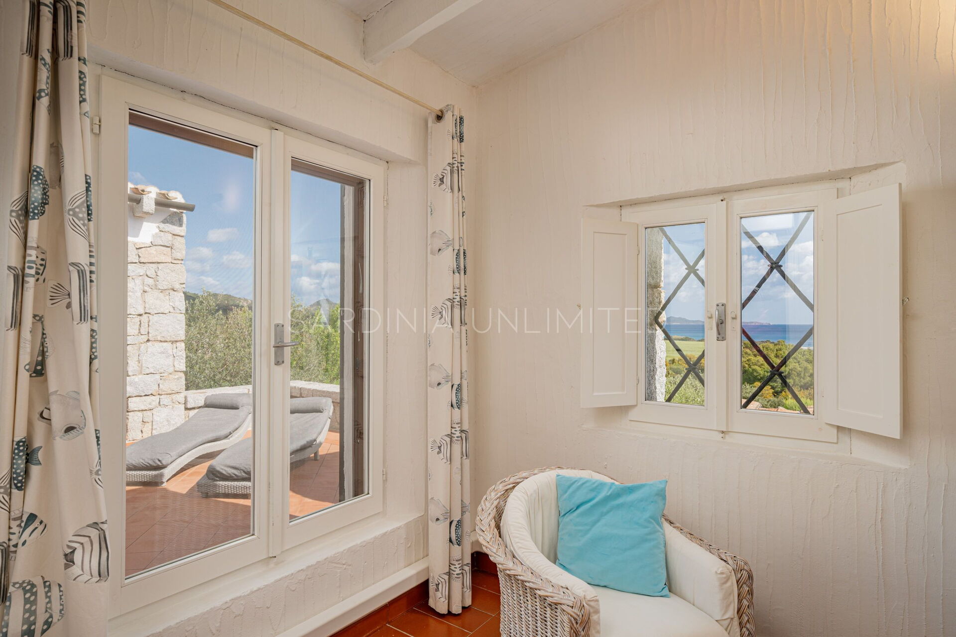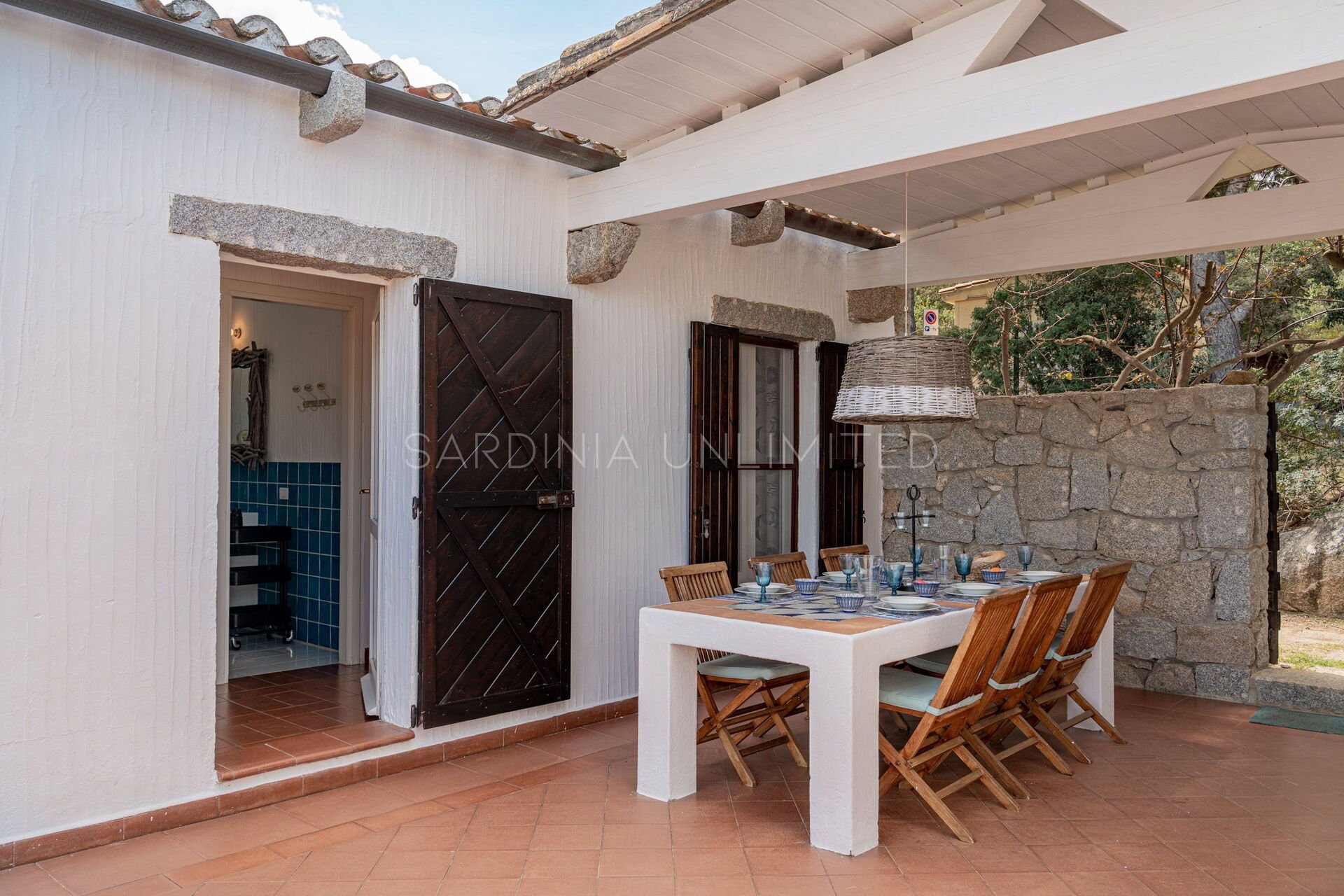 This villa rental in Sardinia has a comfortable and spacious patio that opens onto a breathtaking panorama where there is a solarium area as well as a table useful for having pleasant meals outdoors or moments in company.