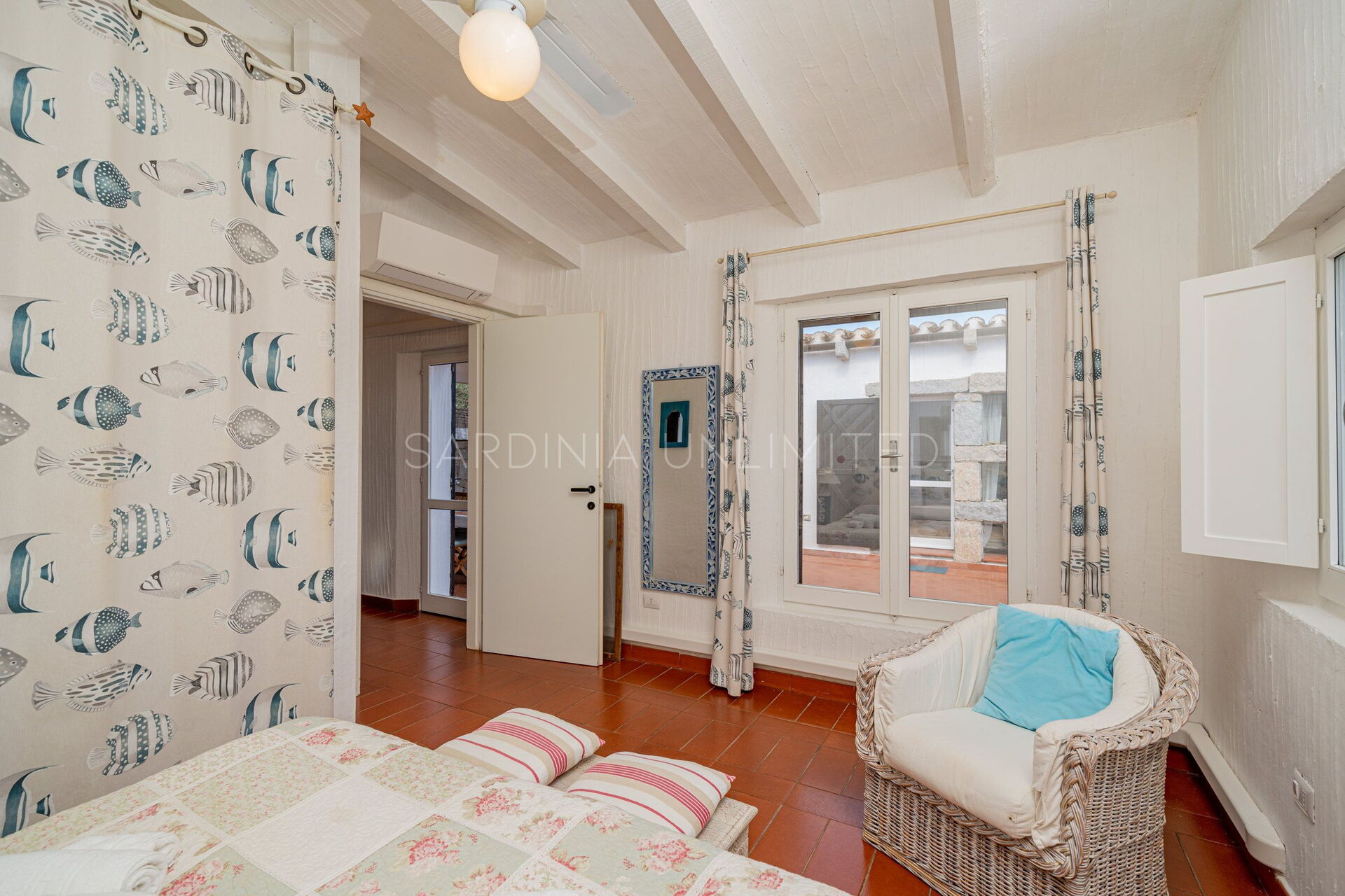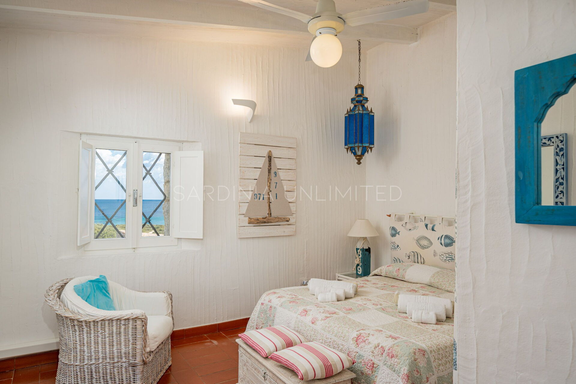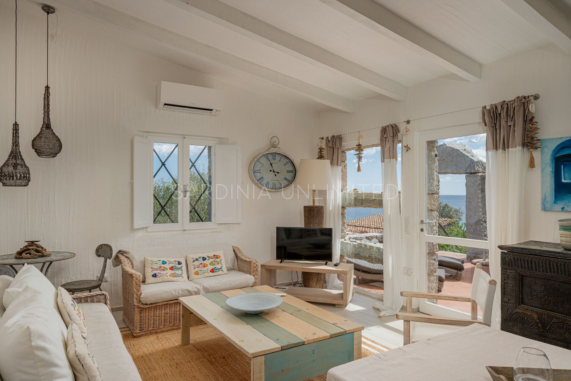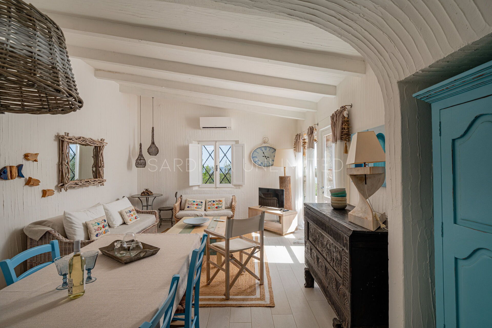 Villa Bright Spring is a welcoming Sardinia holiday villa that can accommodate up to 5 guests. In fact, the villa has a comfortable double bedroom with a panoramic view and a room with a single bed and a bunk bed. The furnishings of the villa are presented as a perfect example of simplicity and elegance. The dominance of white and marine colors skilfully combined with natural elements give the entire structure a warm welcoming feeling.