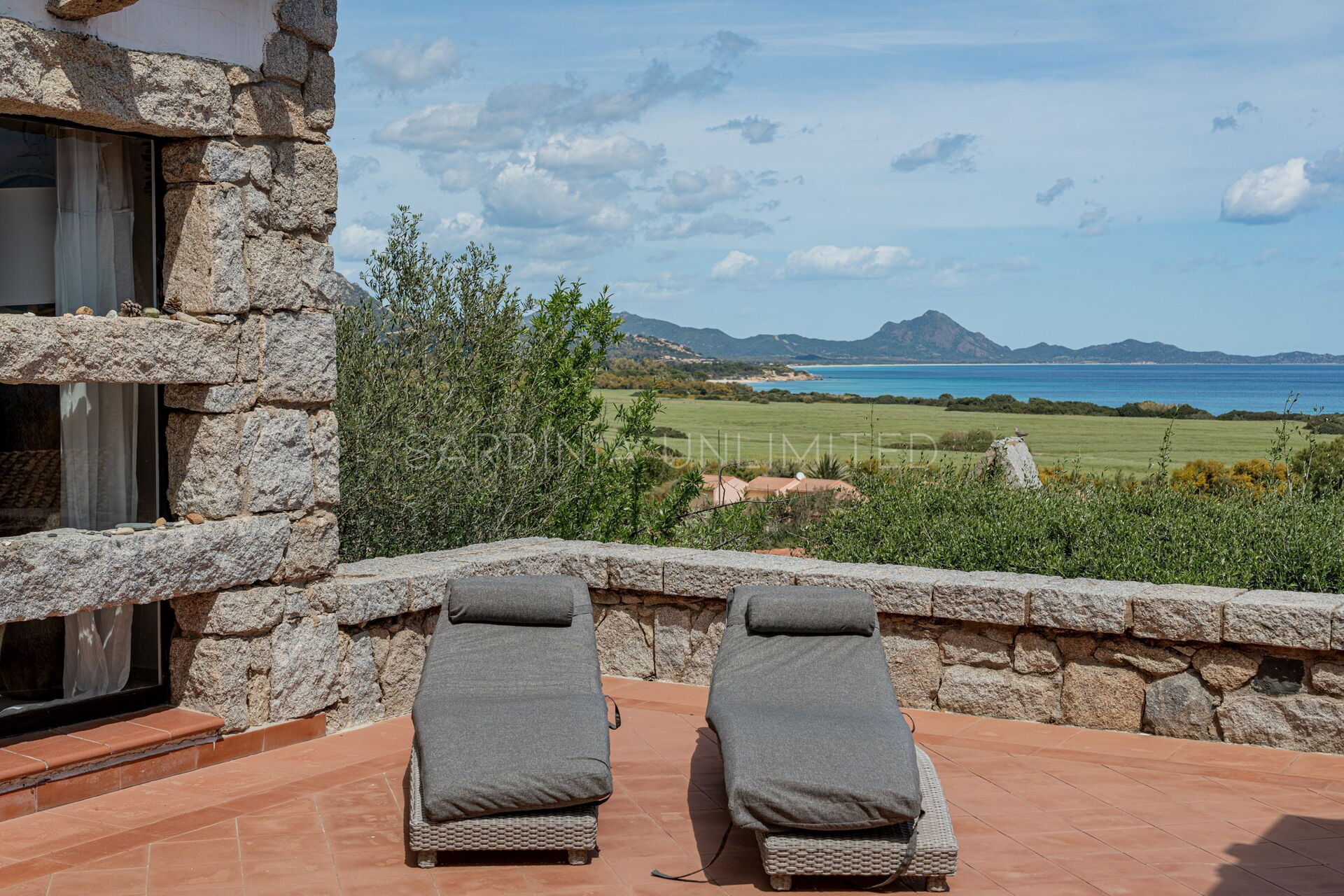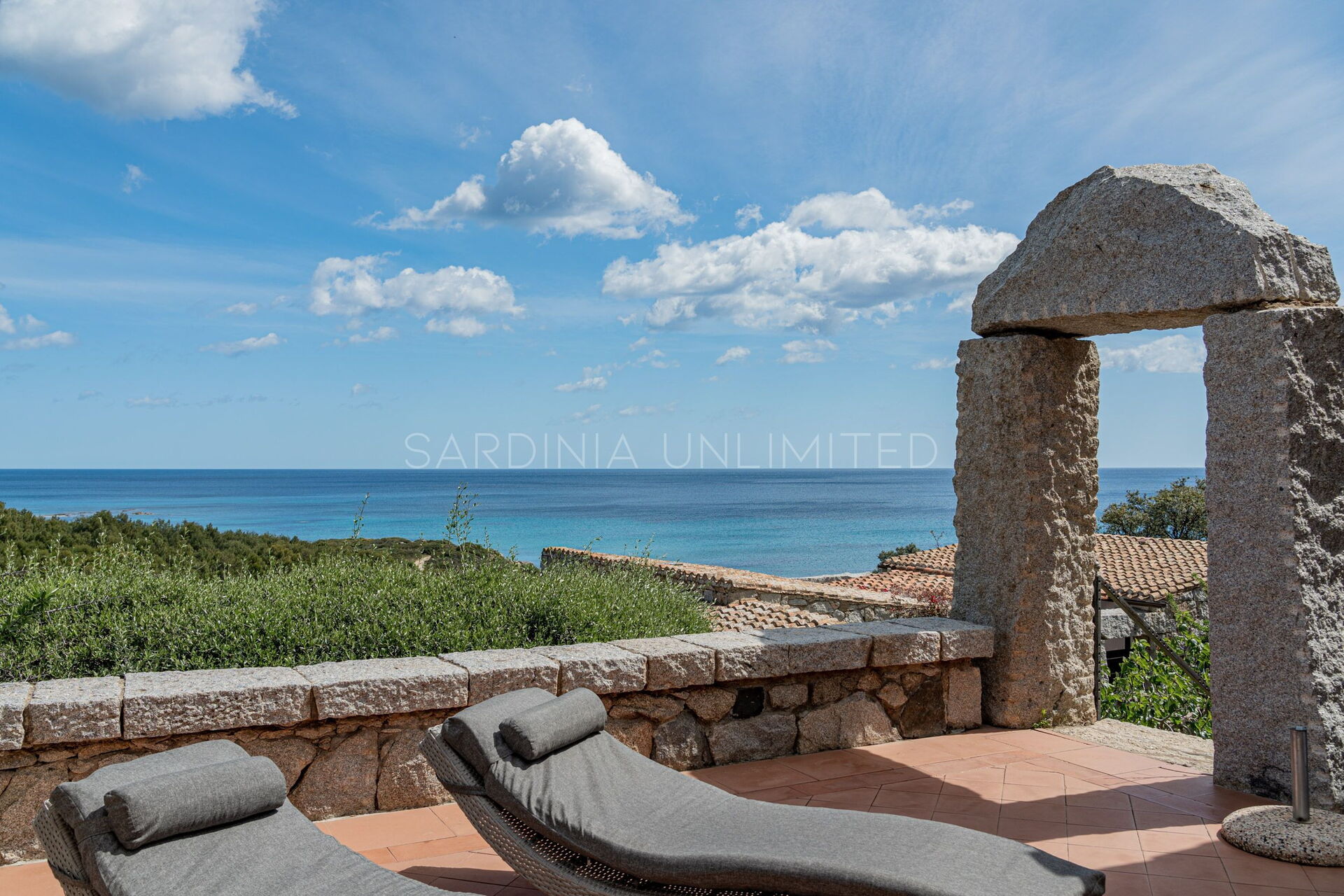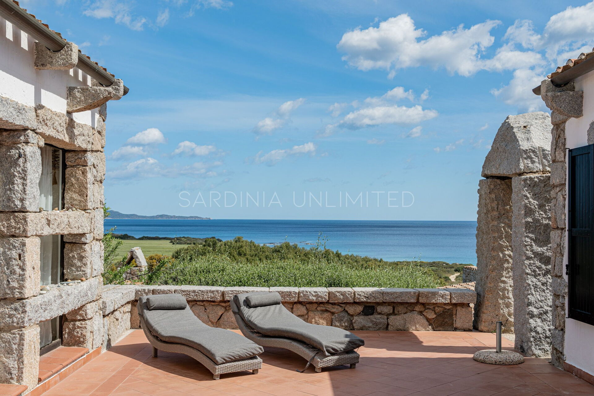 Villa Bright Spring is located in the enchanting residence Sant'Elmo near Costa Rei, which, with its linear architecture made of harmonious contrasts between the simplicity of the stone and the white of the interiors, enjoys a breathtaking view of the sea in front. The peculiarity and charm of this village are the abundance of granite and its decorative use: majestic and ancient trilithons cross it, giving it an atmosphere of ancient mystery. The splendor is also given by the search for communion between the element of nature and human activity which here merge to create a splendid oasis of peace.