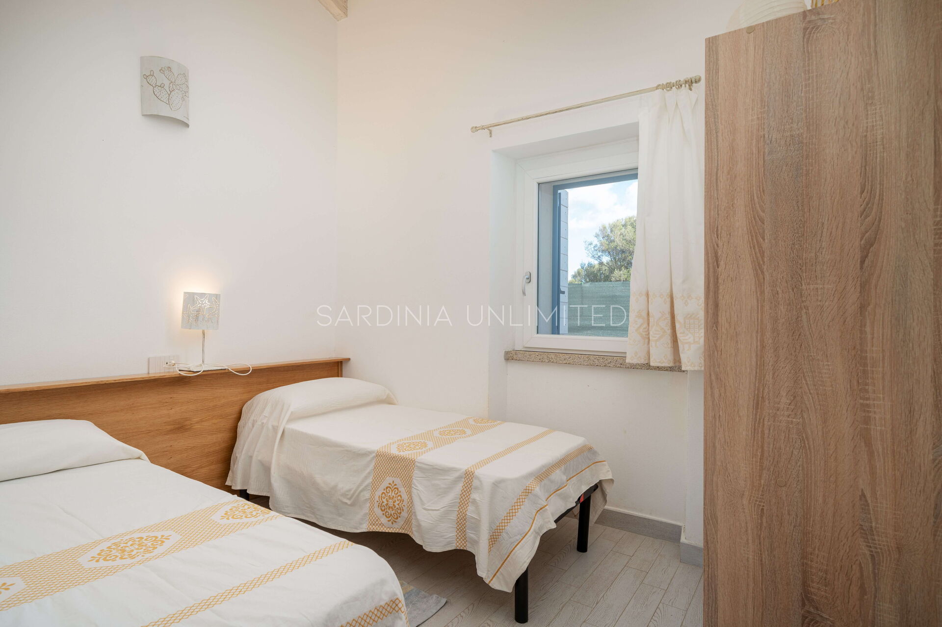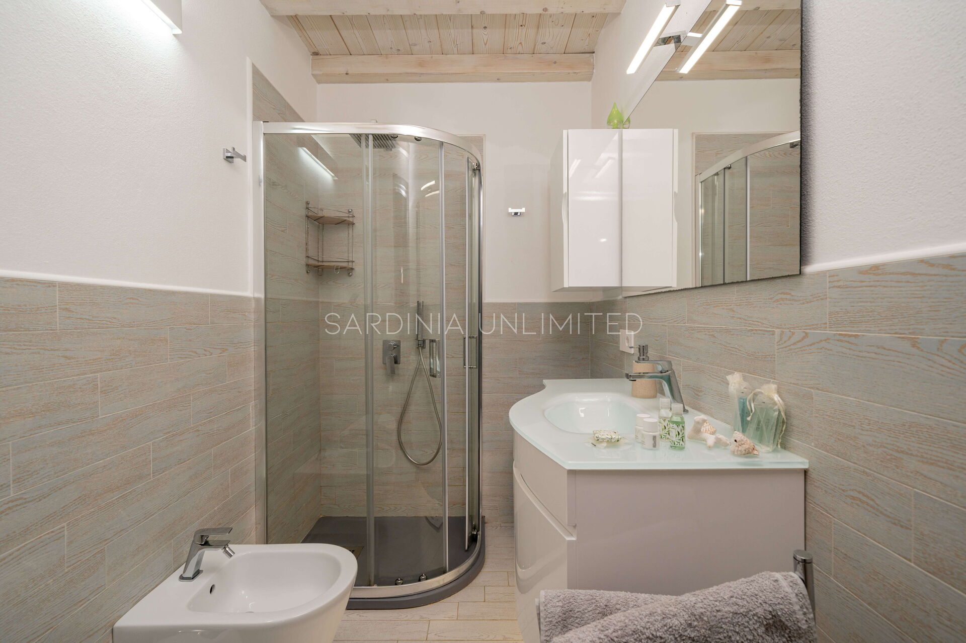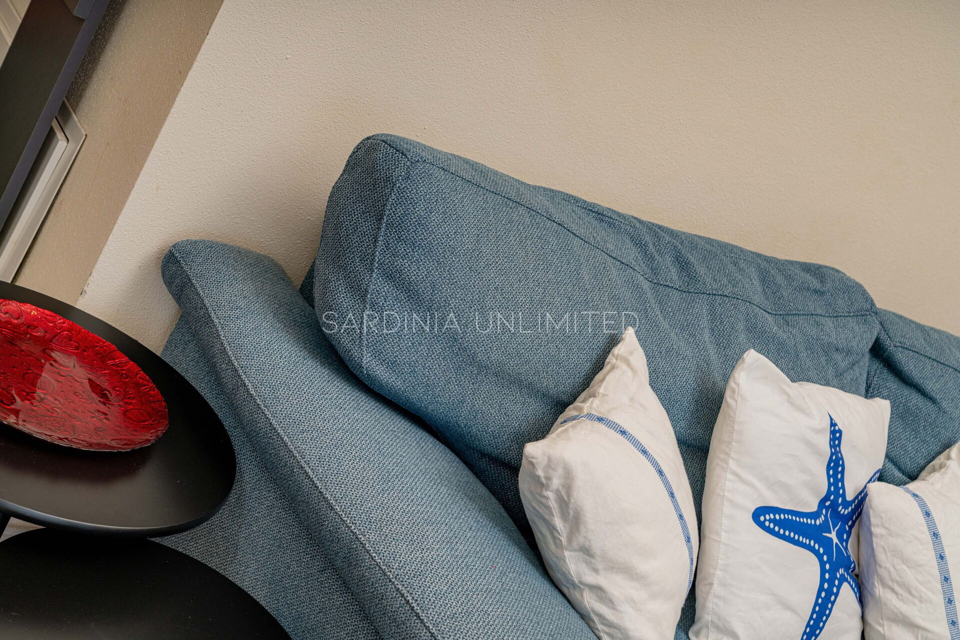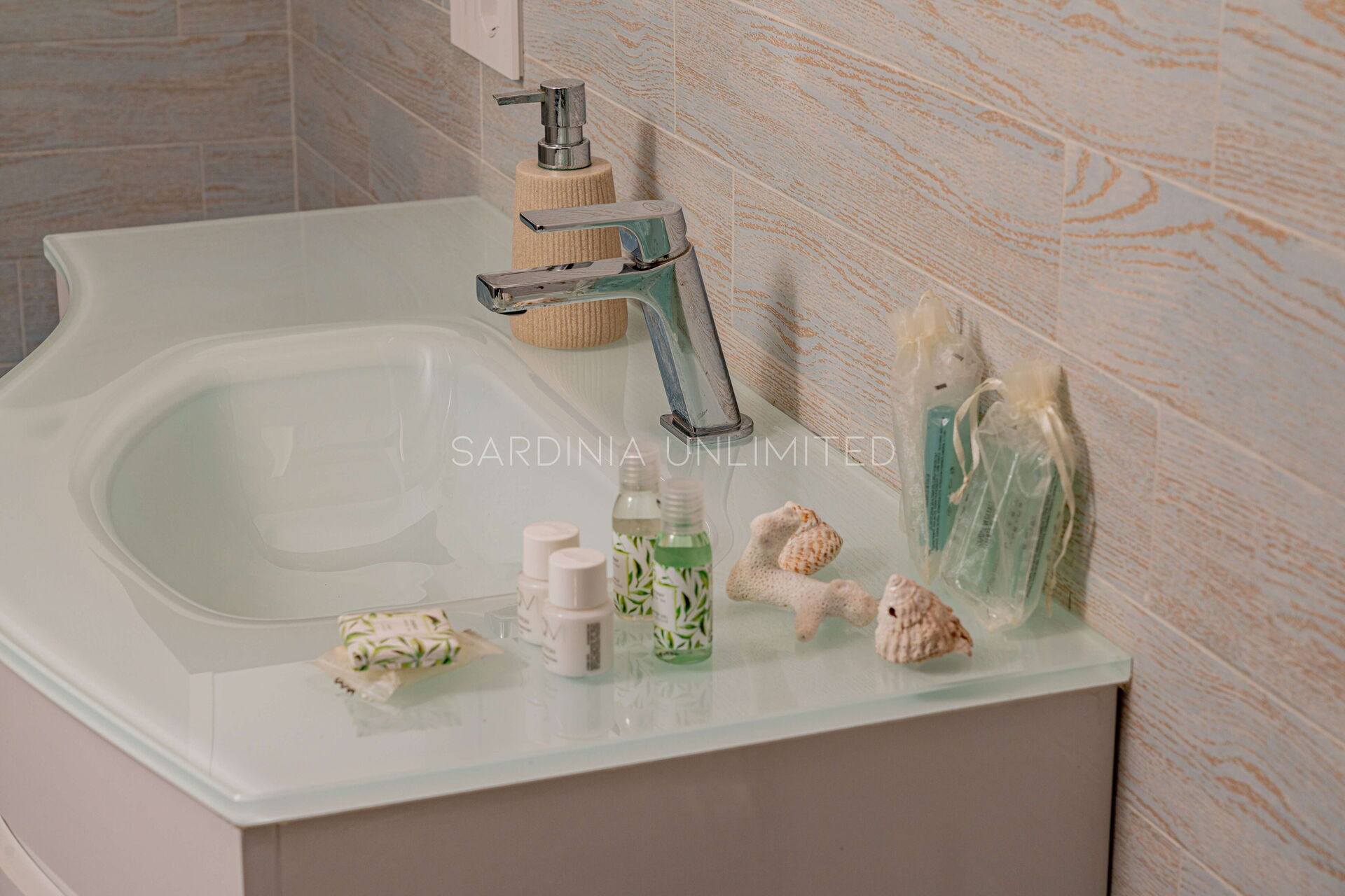 Furthermore, the house consists of two bedrooms, one double and one twin, which recall the typical and essential elements of Sardinian tradition: light wood ceilings, floors and furnishings combine with the charming, floral and polychrome designs of the embroidery, revisited in a modern and functional key.