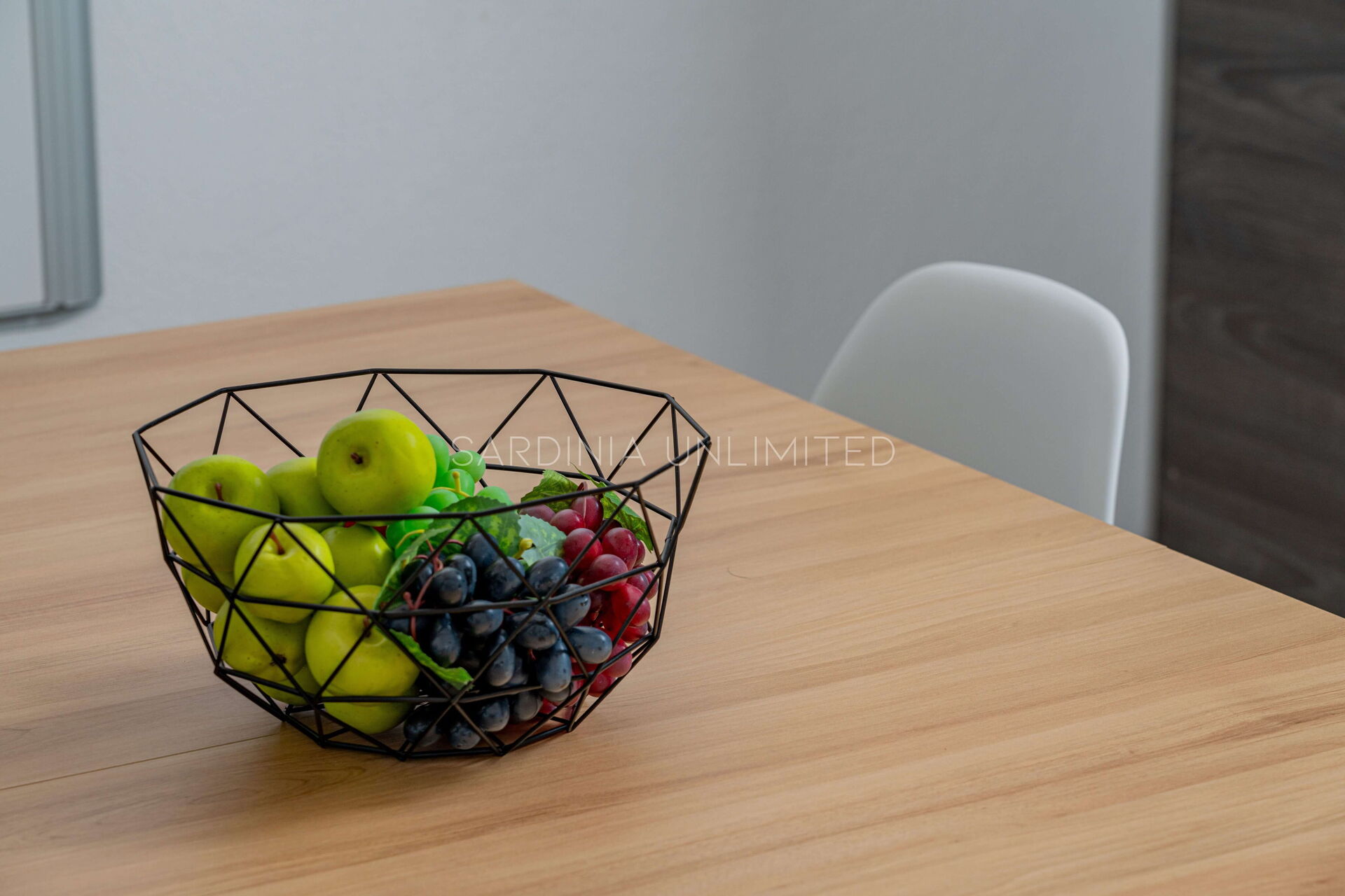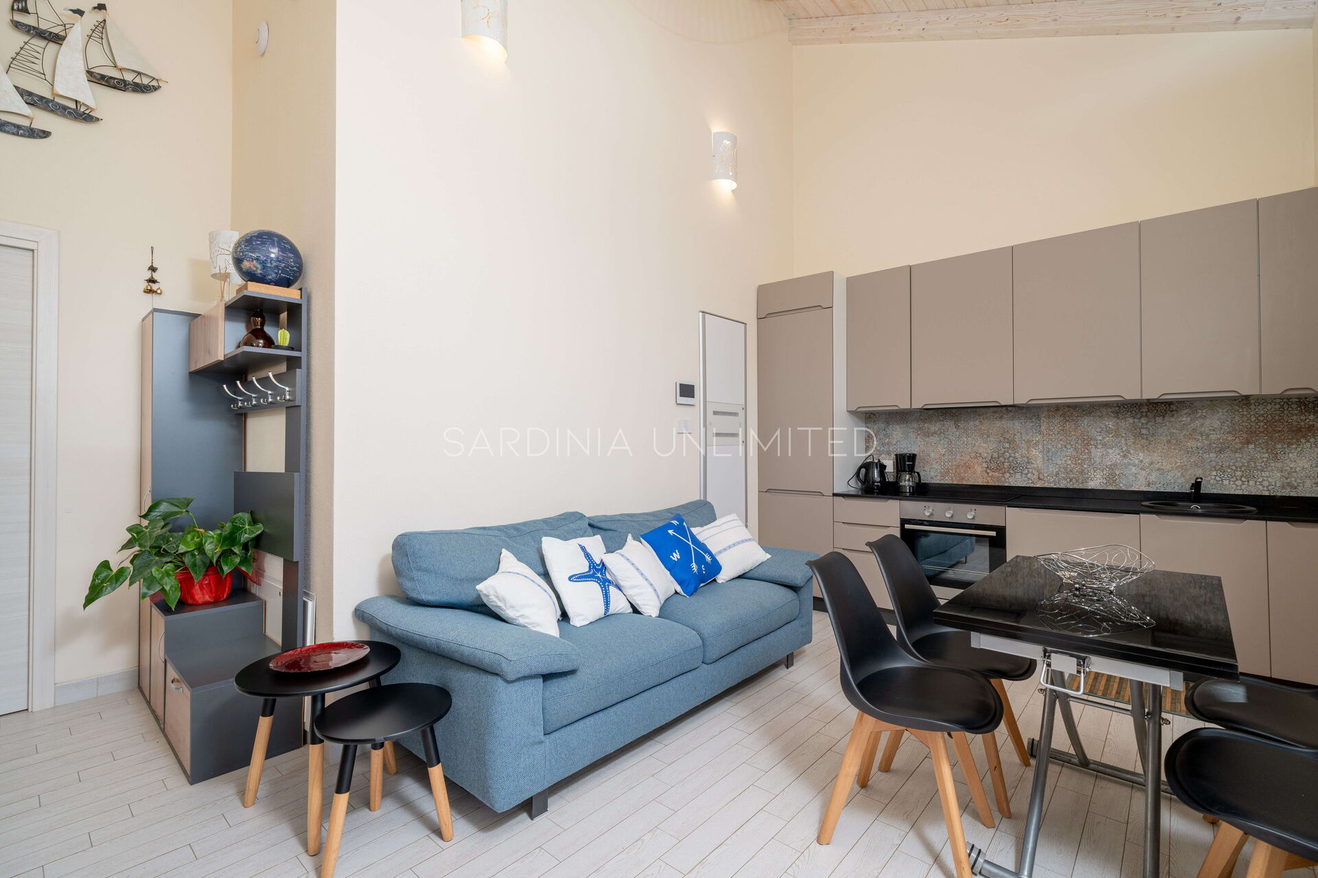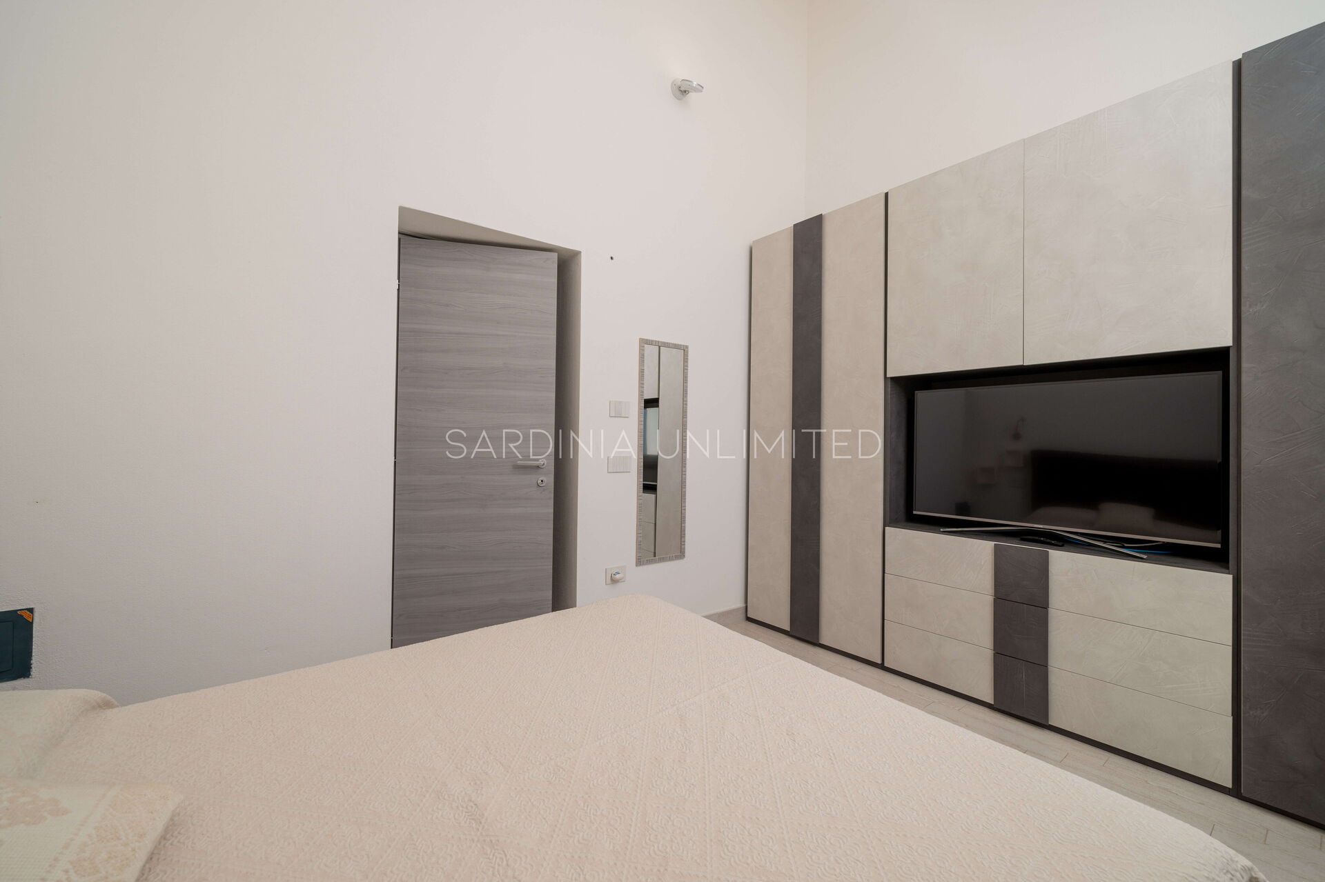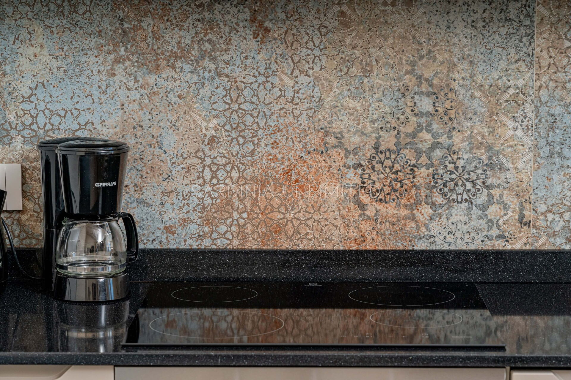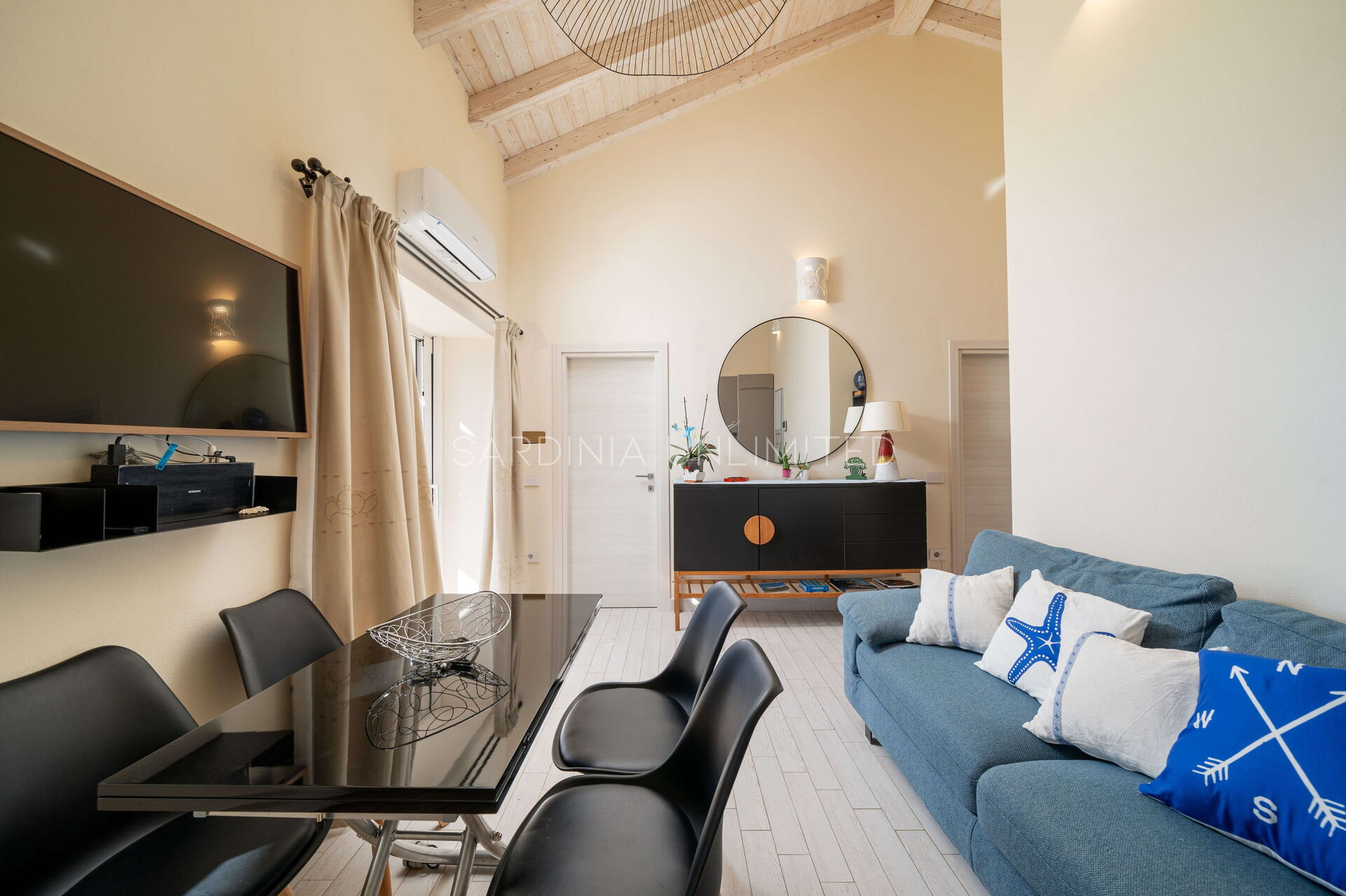 Furthermore, the house consists of two bedrooms, one double and one twin, which recall the typical and essential elements of Sardinian tradition: light wood ceilings, floors and furnishings combine with the charming, floral and polychrome designs of the embroidery, revisited in a modern and functional key.