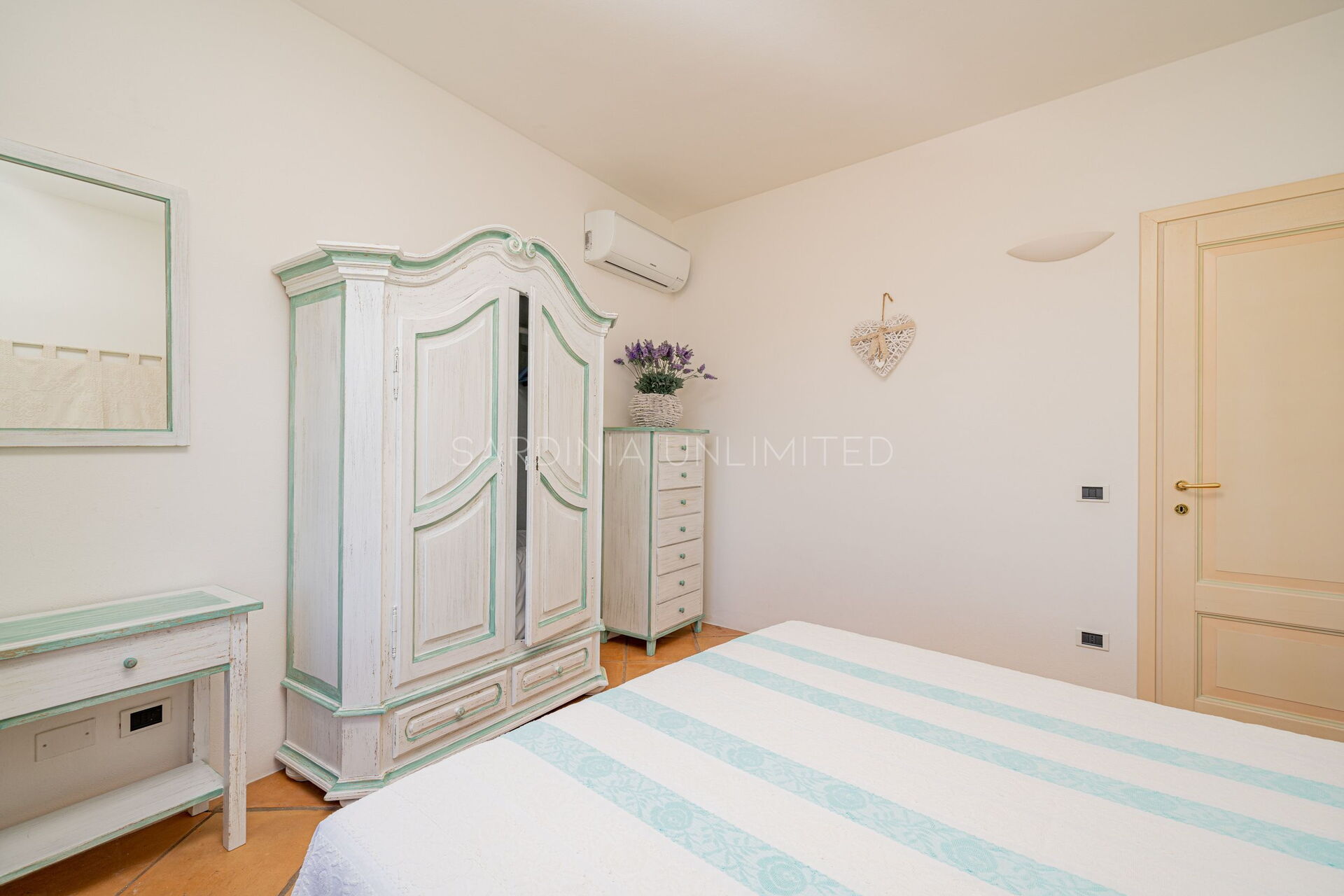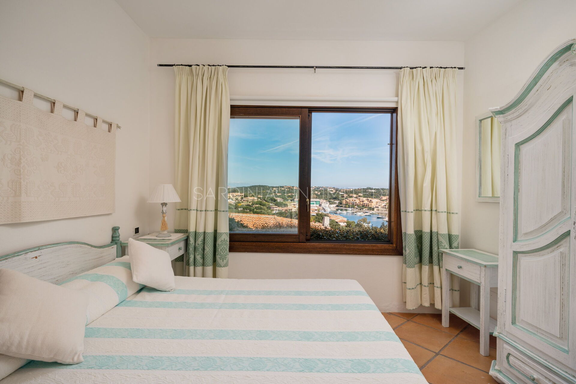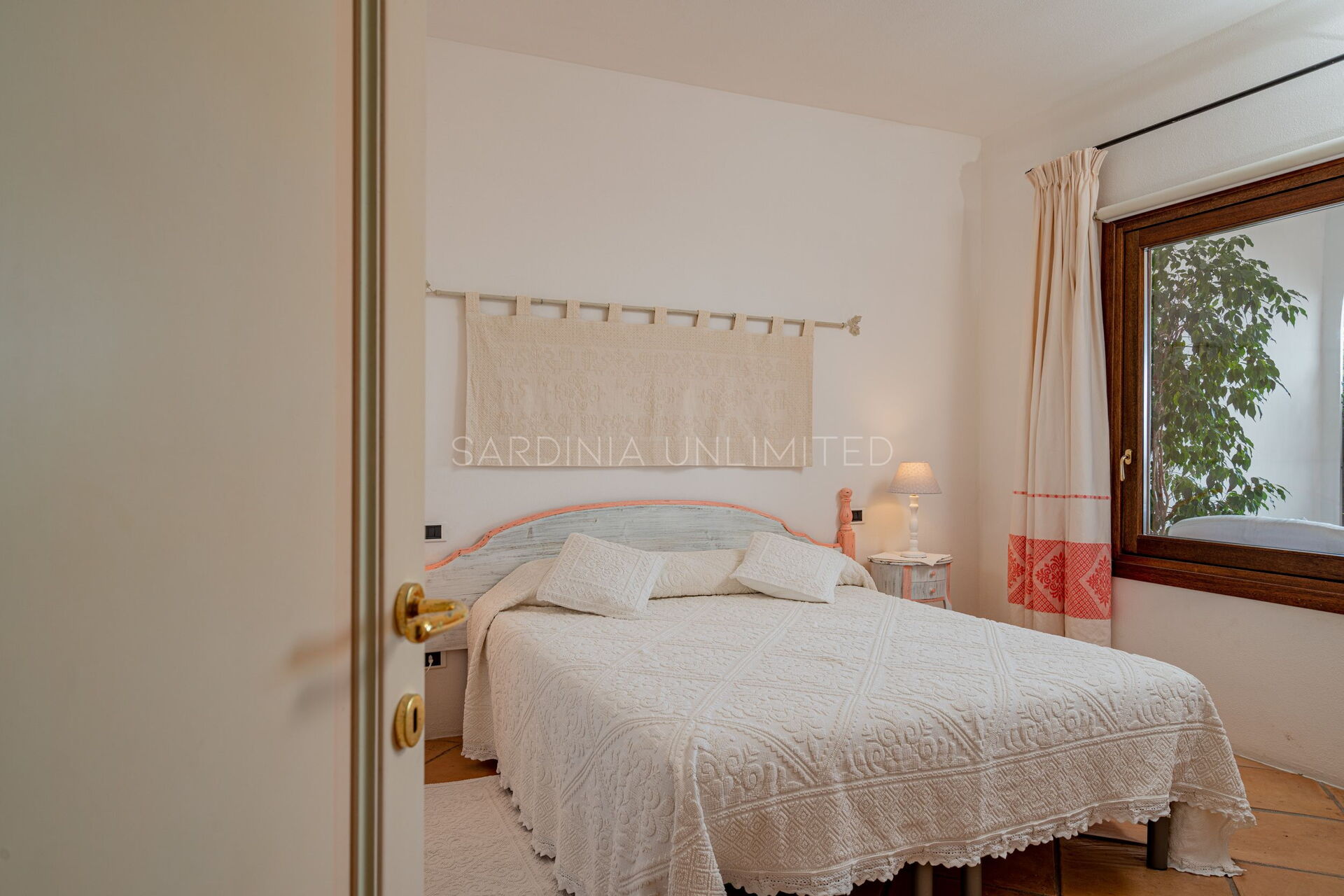 Villetta Ligea is an exquisite Sardinia holiday villa made of four room and tastefully furnished with a fully equipped kitchen, a comfortable table and a living area with a sofa. The sleeping area is characterised by three large bedrooms finely furnished with light wood furniture that blends perfectly with the iridescent color of the walls which reverberates the strong external brightness which penetrates thanks to the large panoramic window.