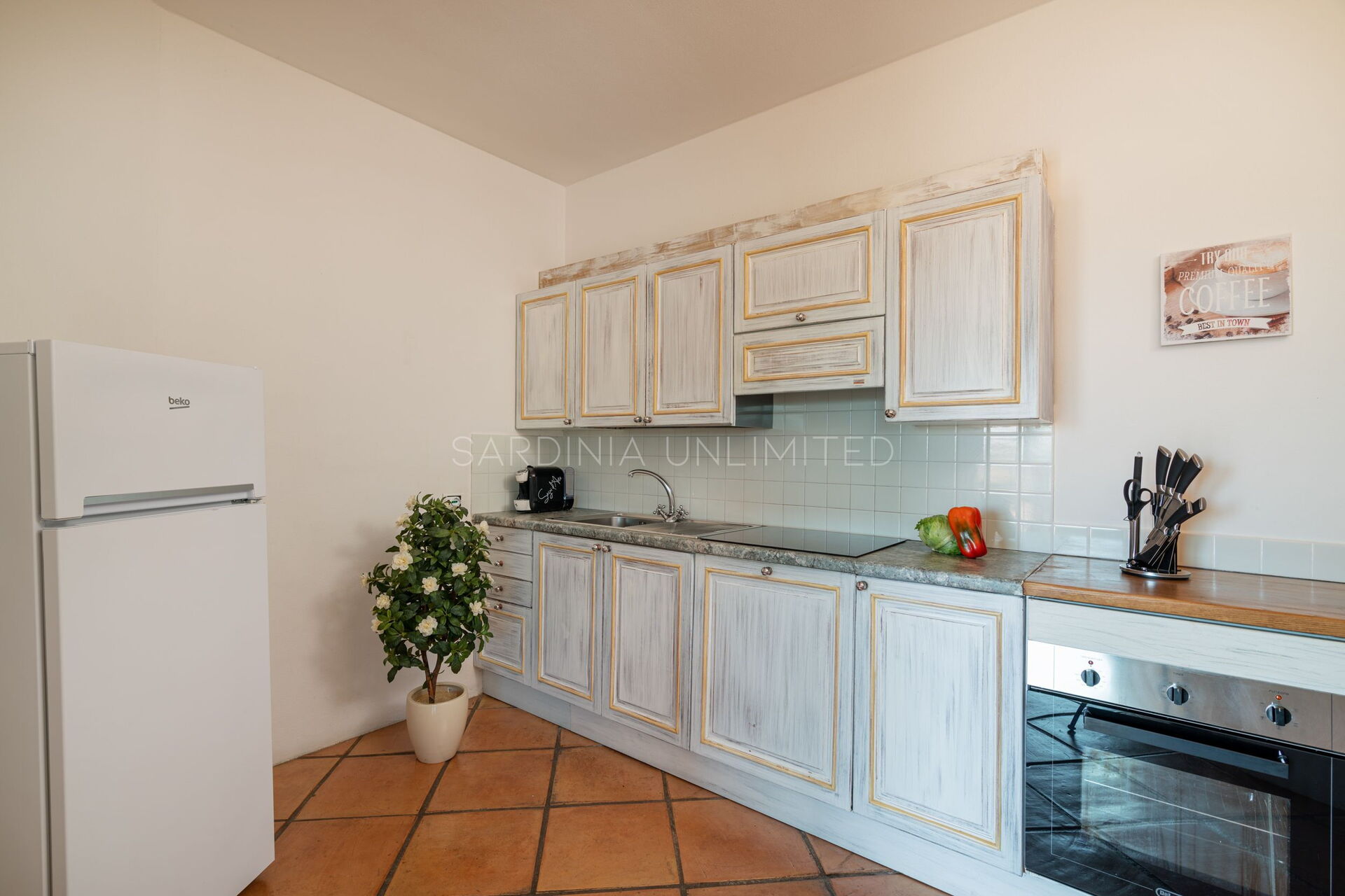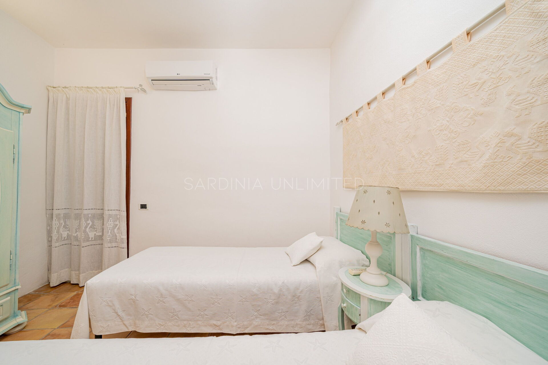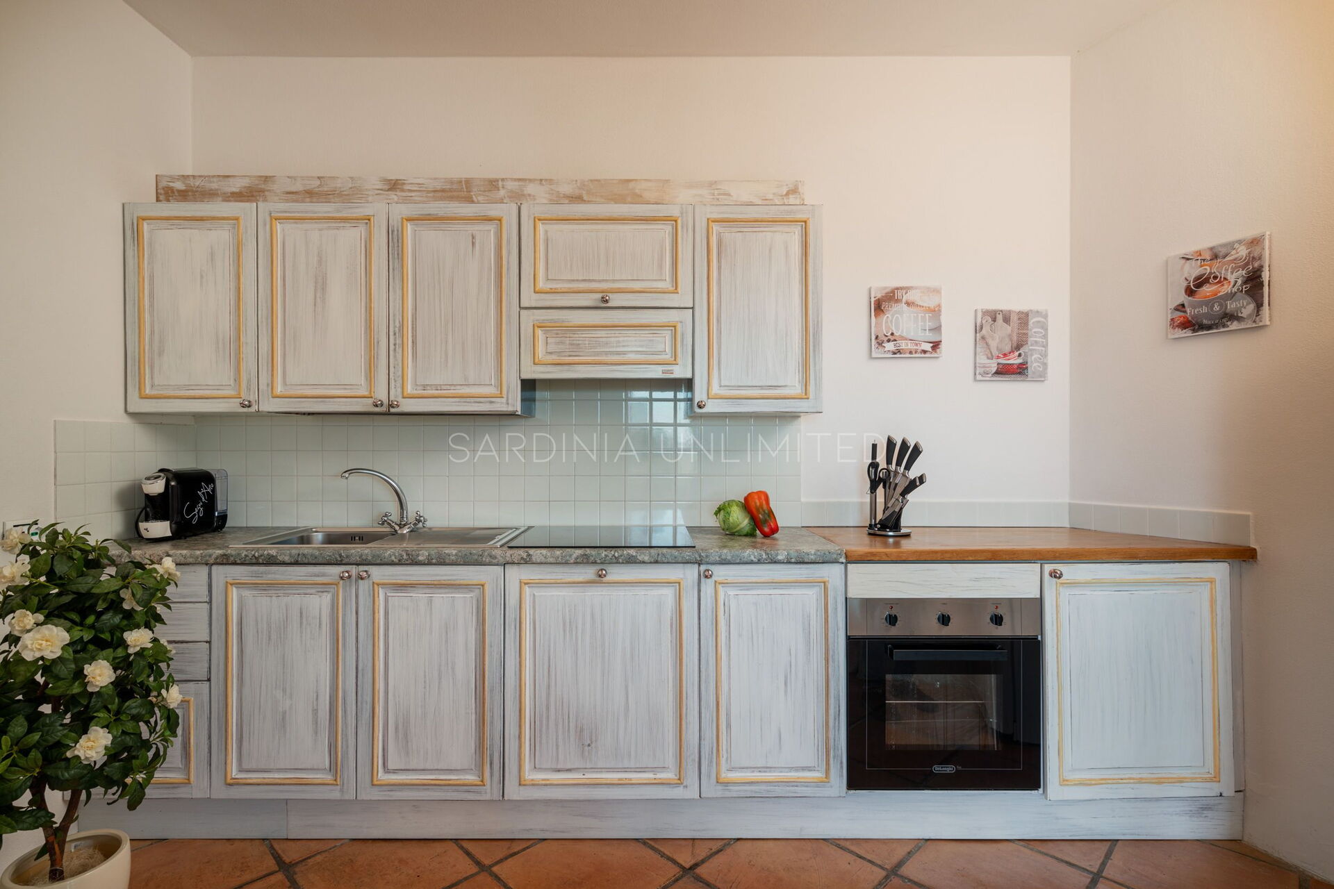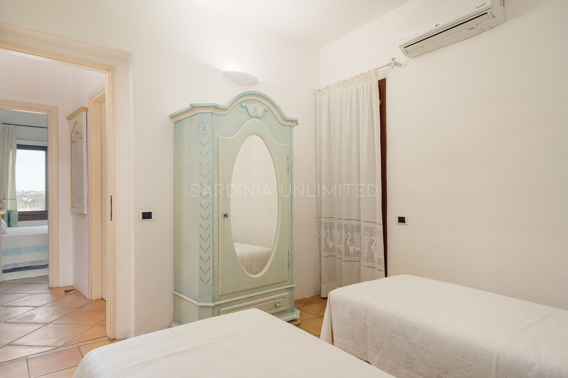 Villetta Ligea is an exquisite Sardinia holiday villa made of four room and tastefully furnished with a fully equipped kitchen, a comfortable table and a living area with a sofa. The sleeping area is characterised by three large bedrooms finely furnished with light wood furniture that blends perfectly with the iridescent color of the walls which reverberates the strong external brightness which penetrates thanks to the large panoramic window.