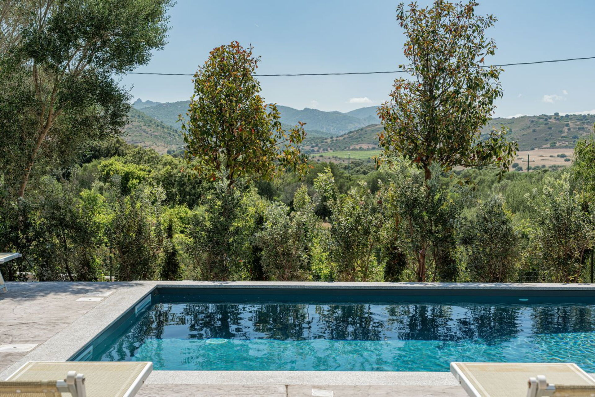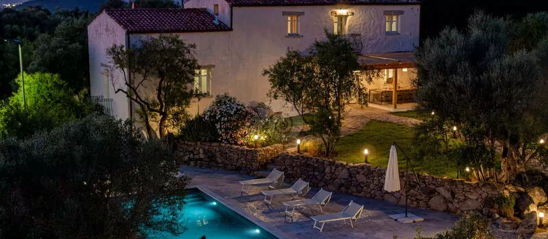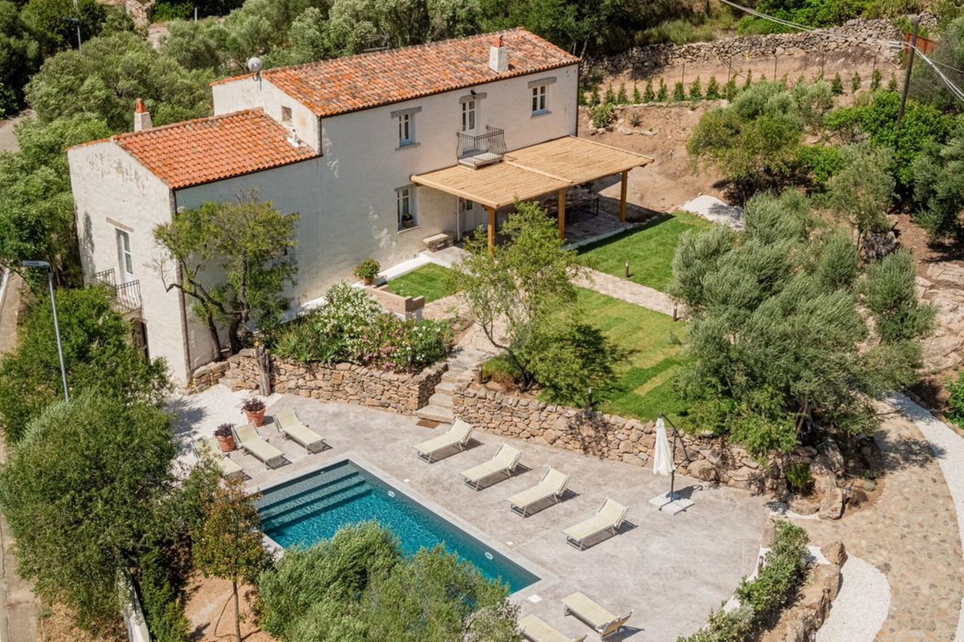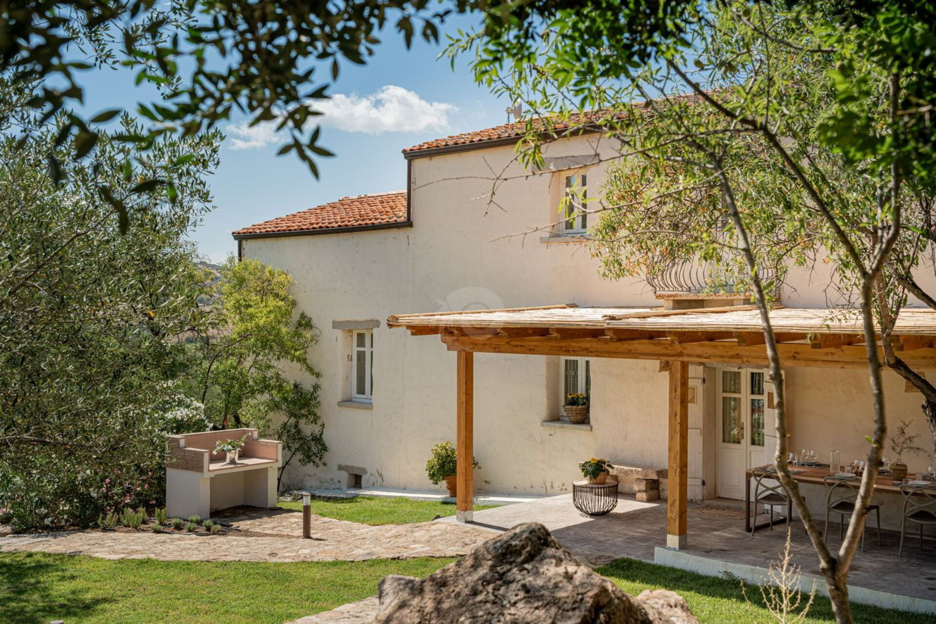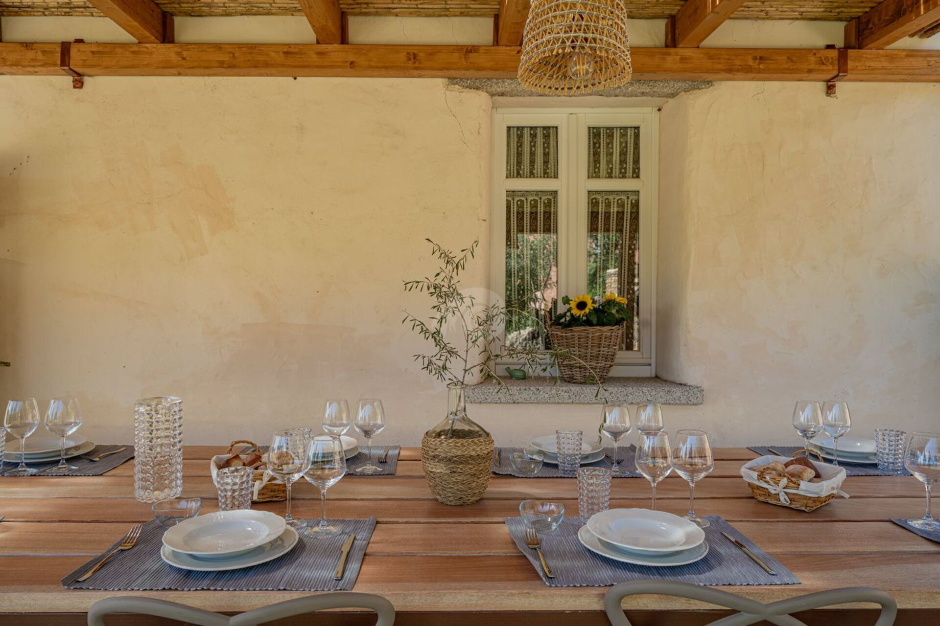 This ancient 19th-century villa for rent in Sardinia has been renovated preserving the historic charm of the foundations, combining elements of to a refined style. This charming property can be reached along a paved path that leads directly to a large and well-kept lawn overlooked by a large veranda. Here there is a large table to comfortably dine outdoors and enjoy the surrounding nature. On the left there is a large paved space which houses a fantastic and clear heated in-ground private swimming pool surrounded by a relaxing solarium area.