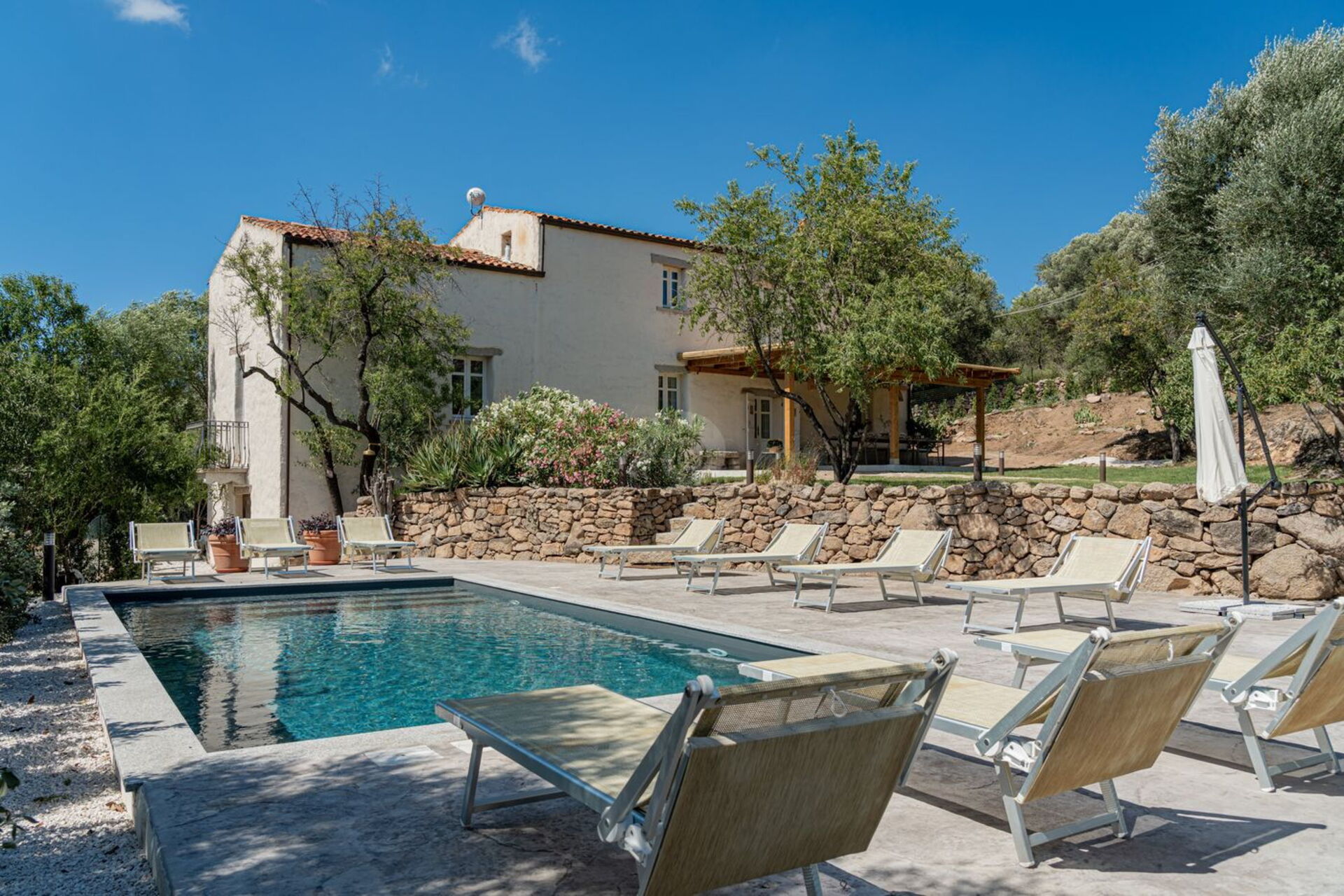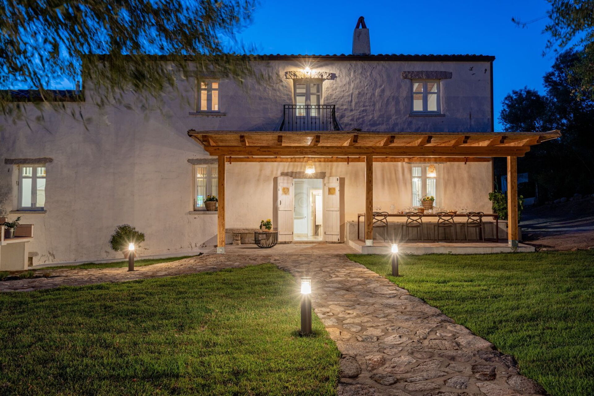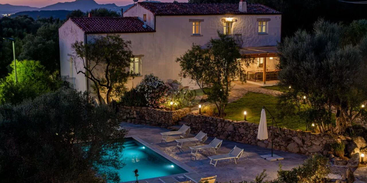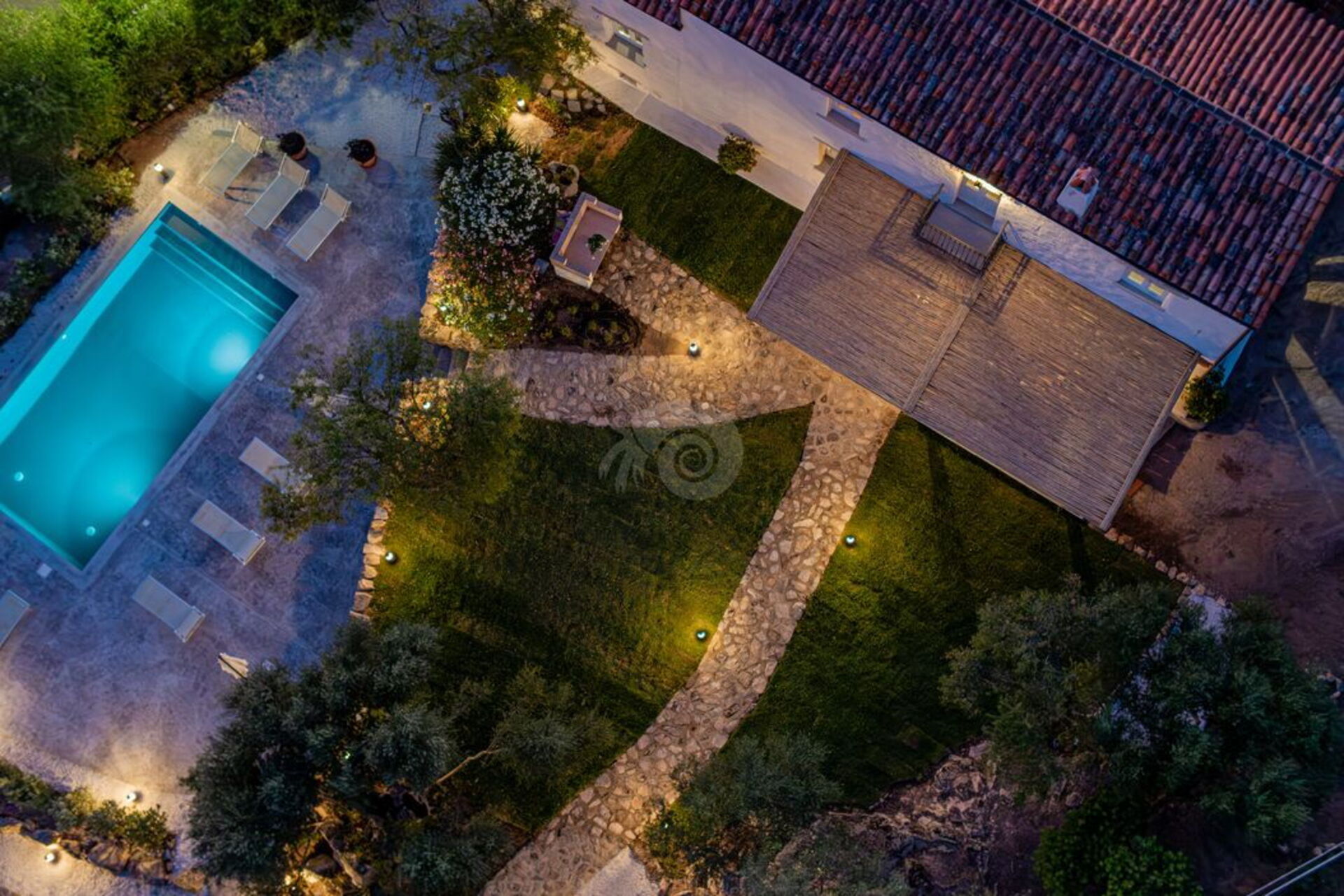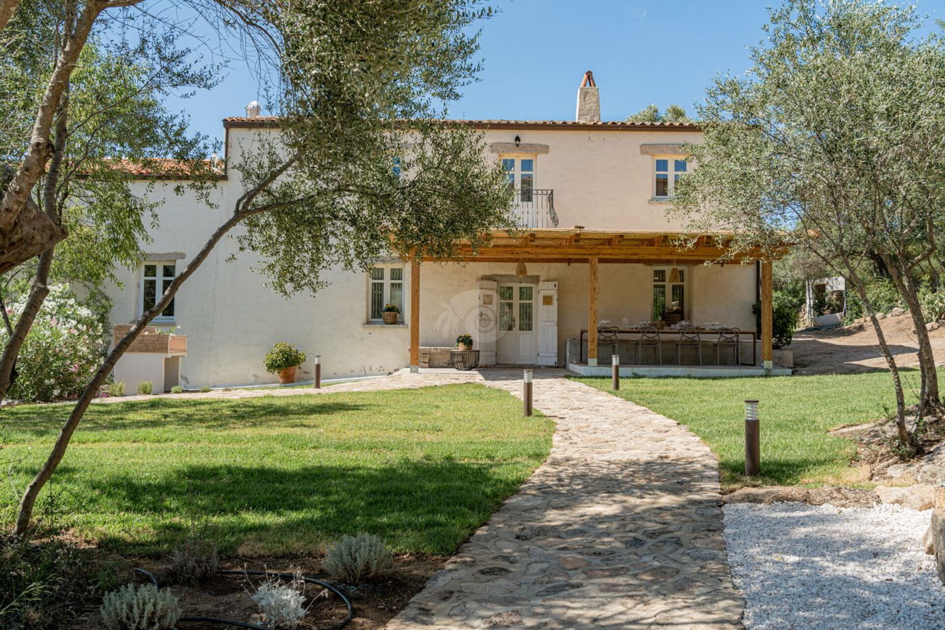 This ancient 19th-century villa for rent in Sardinia has been renovated preserving the historic charm of the foundations, combining elements of to a refined style. This charming property can be reached along a paved path that leads directly to a large and well-kept lawn overlooked by a large veranda. Here there is a large table to comfortably dine outdoors and enjoy the surrounding nature. On the left there is a large paved space which houses a fantastic and clear heated in-ground private swimming pool surrounded by a relaxing solarium area.
