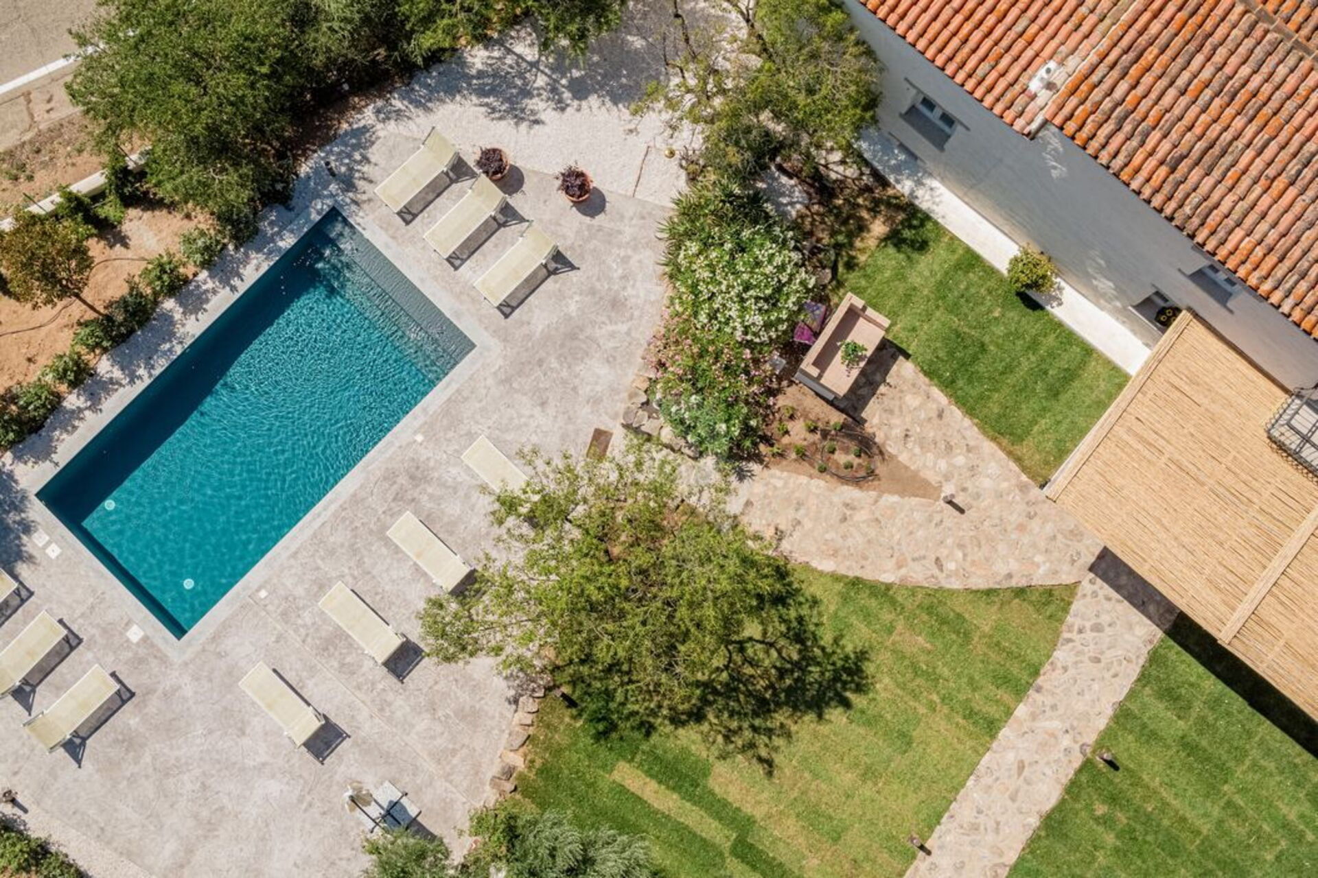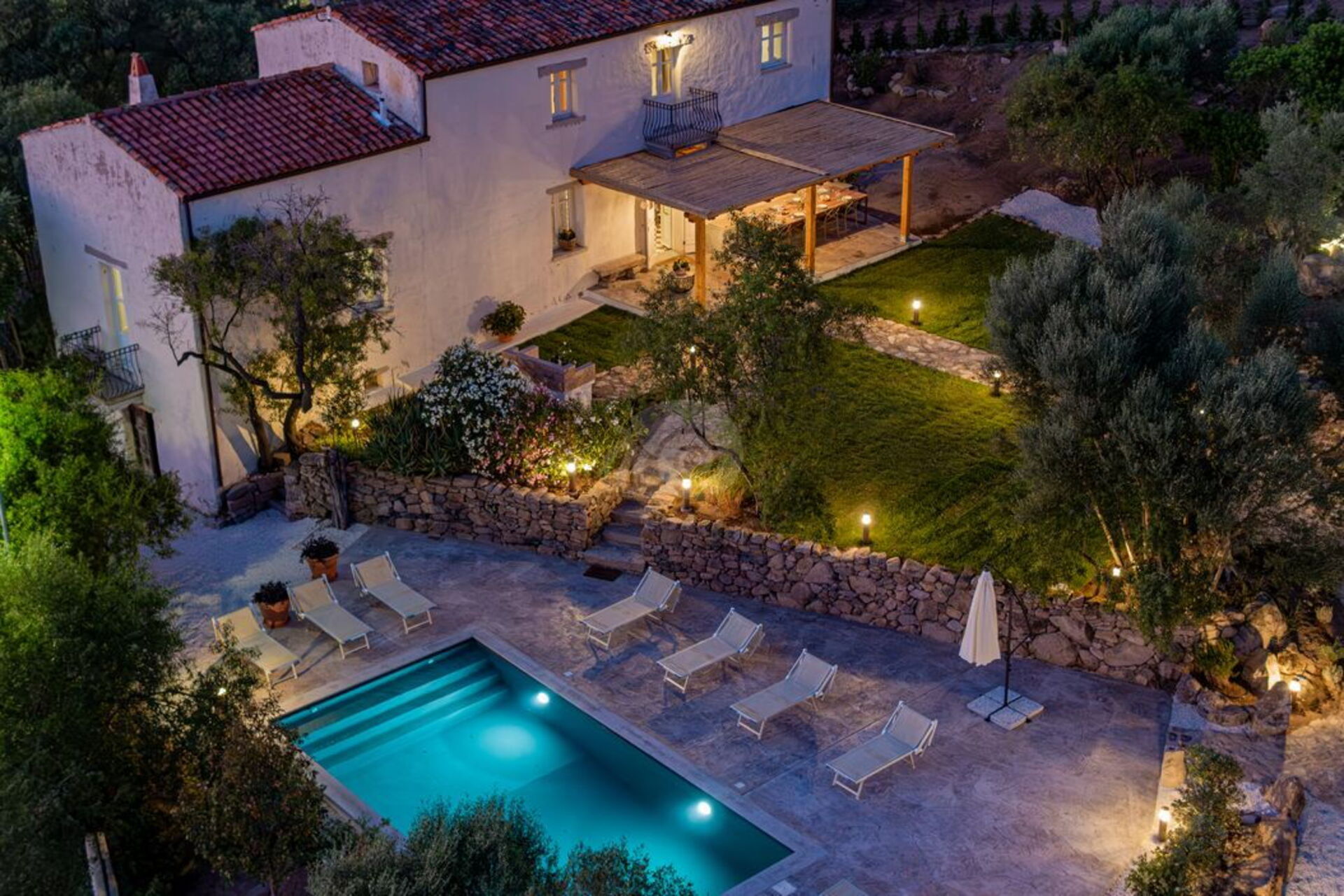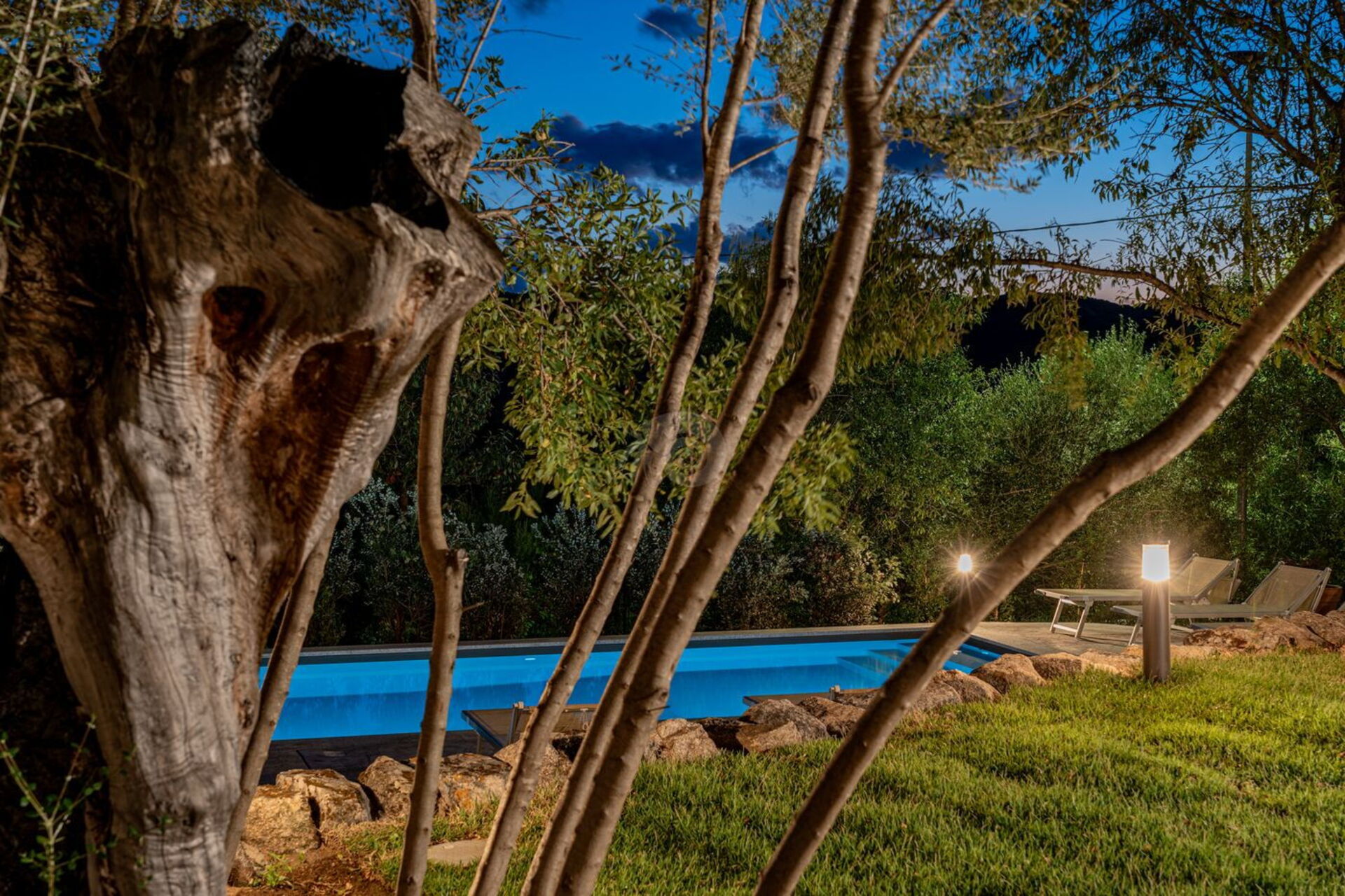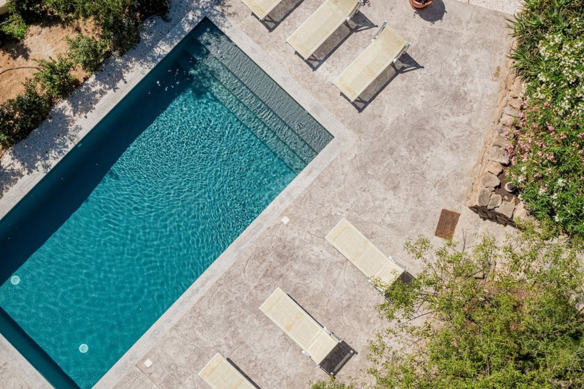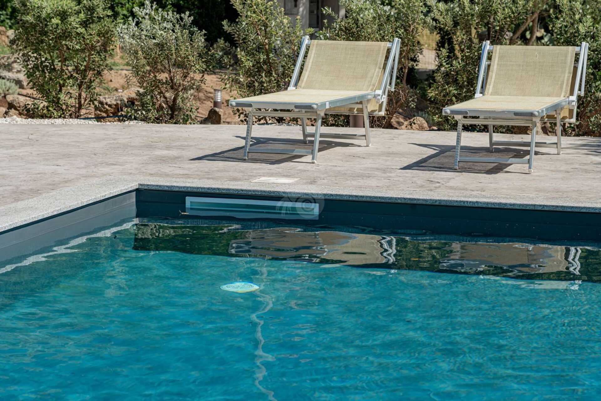 This ancient 19th-century villa for rent in Sardinia has been renovated preserving the historic charm of the foundations, combining elements of to a refined style. This charming property can be reached along a paved path that leads directly to a large and well-kept lawn overlooked by a large veranda. Here there is a large table to comfortably dine outdoors and enjoy the surrounding nature. On the left there is a large paved space which houses a fantastic and clear heated in-ground private swimming pool surrounded by a relaxing solarium area.
