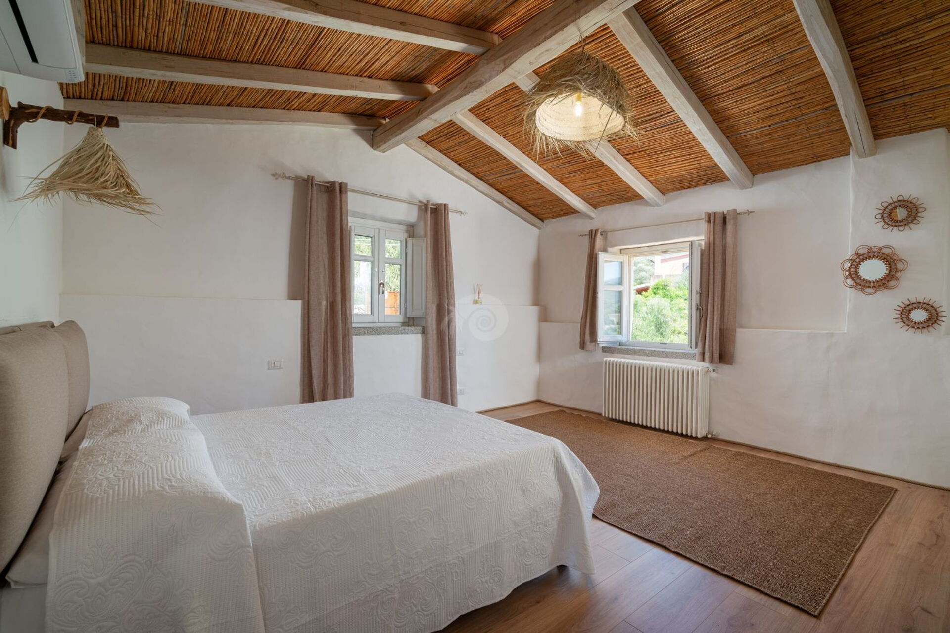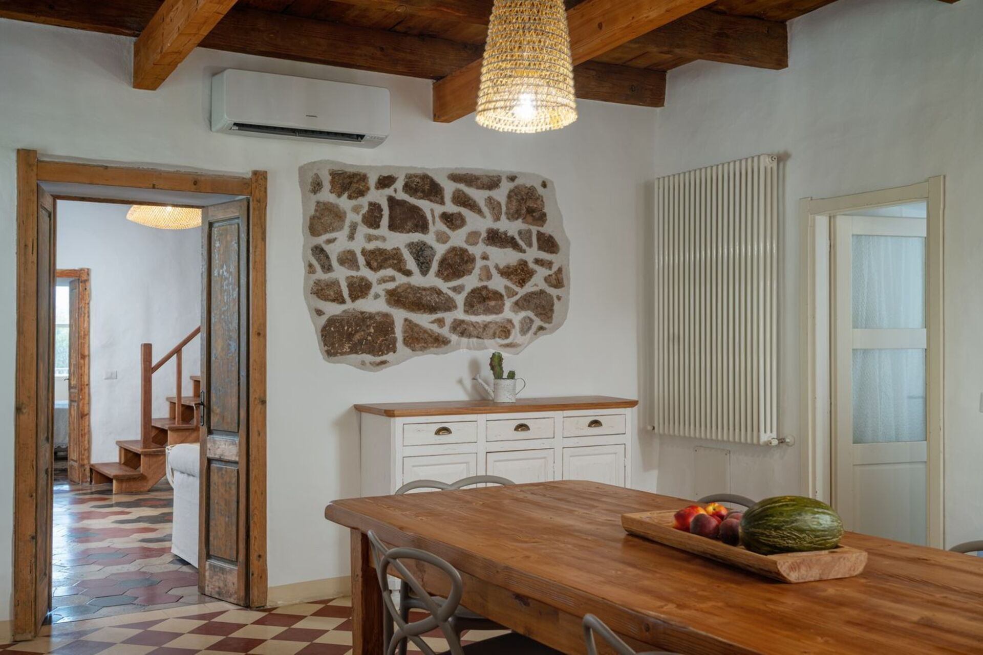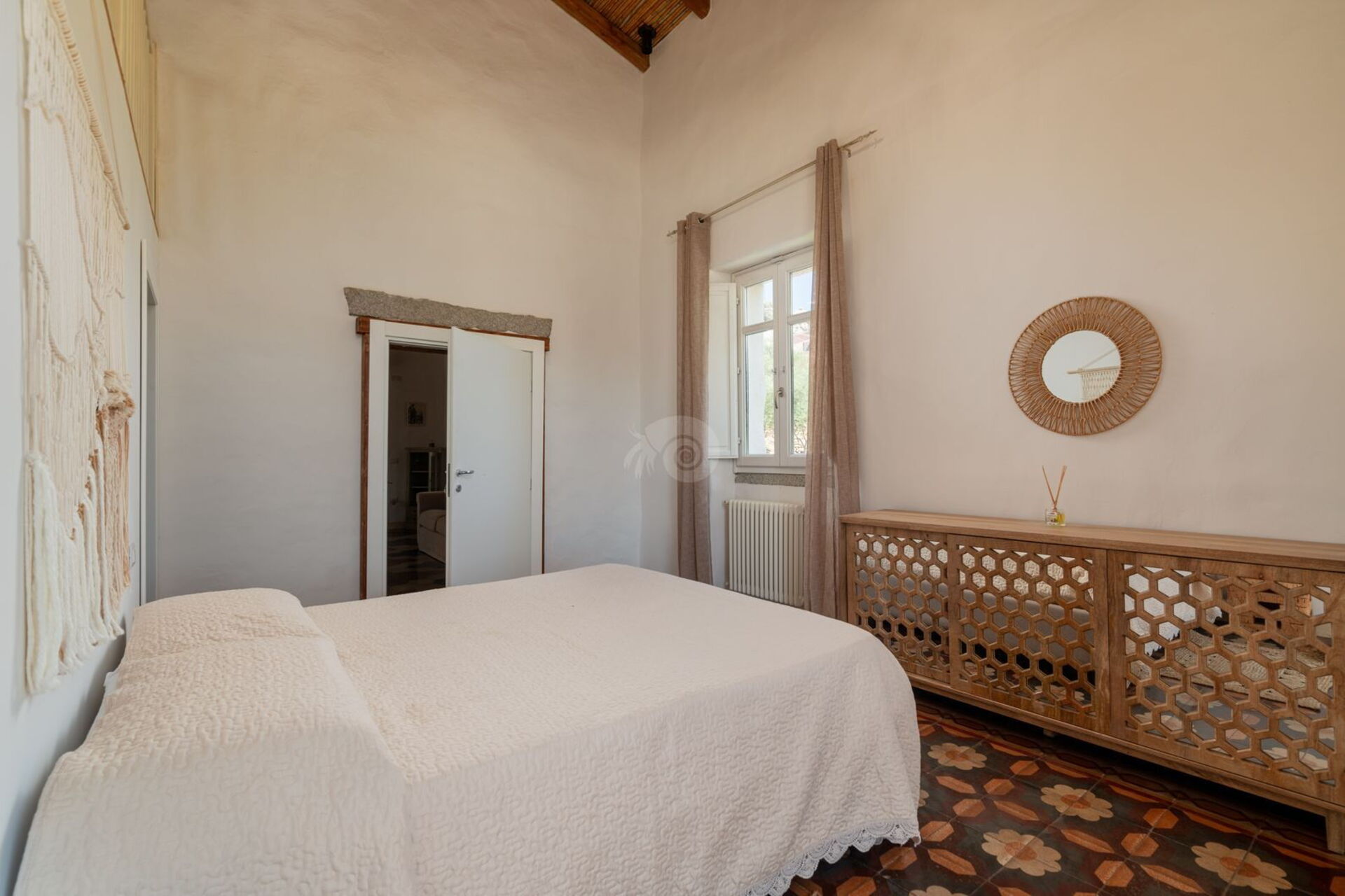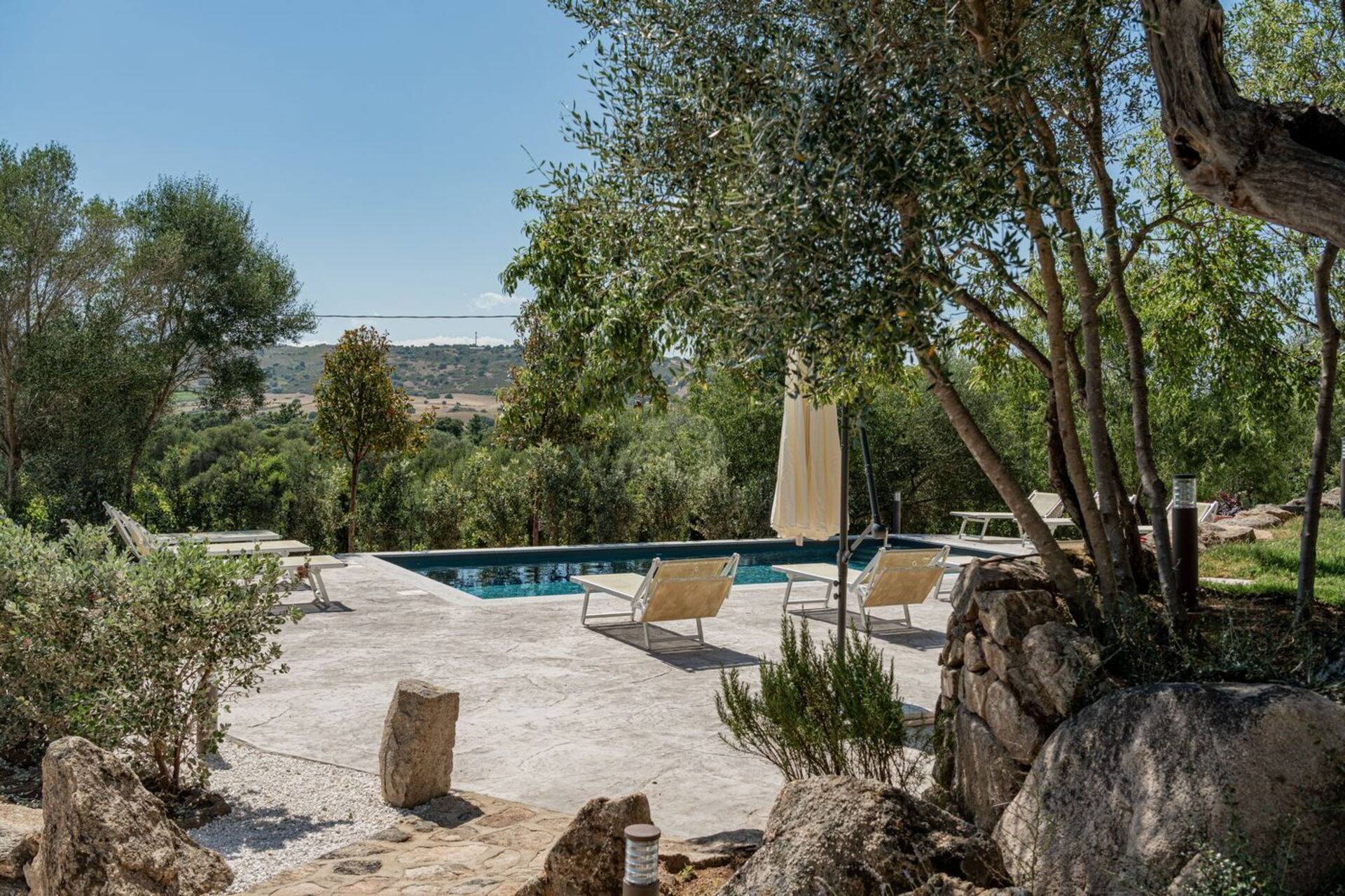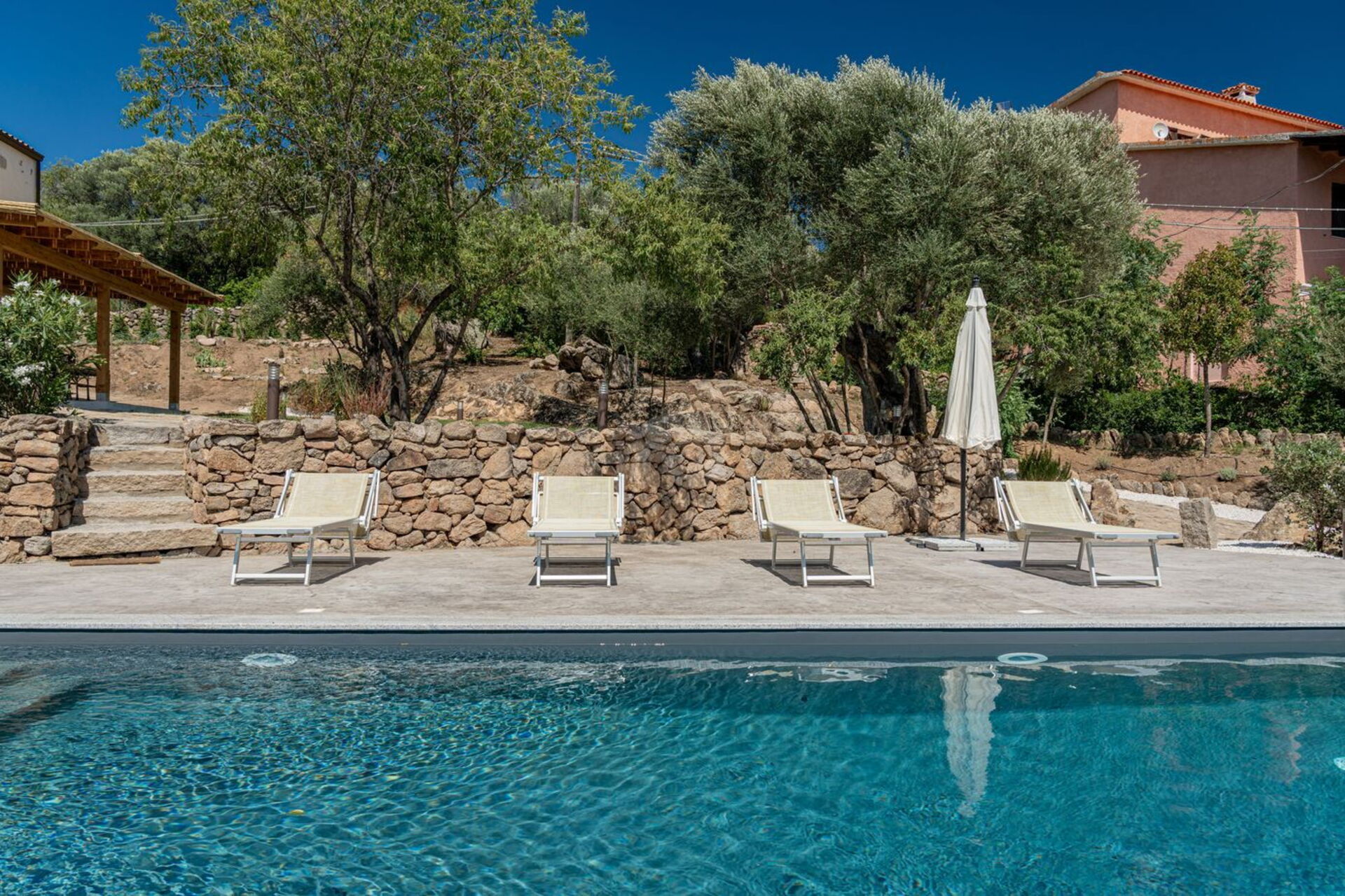 This ancient 19th-century villa for rent in Sardinia has been renovated preserving the historic charm of the foundations, combining elements of to a refined style. This charming property can be reached along a paved path that leads directly to a large and well-kept lawn overlooked by a large veranda. Here there is a large table to comfortably dine outdoors and enjoy the surrounding nature. On the left there is a large paved space which houses a fantastic and clear heated in-ground private swimming pool surrounded by a relaxing solarium area.