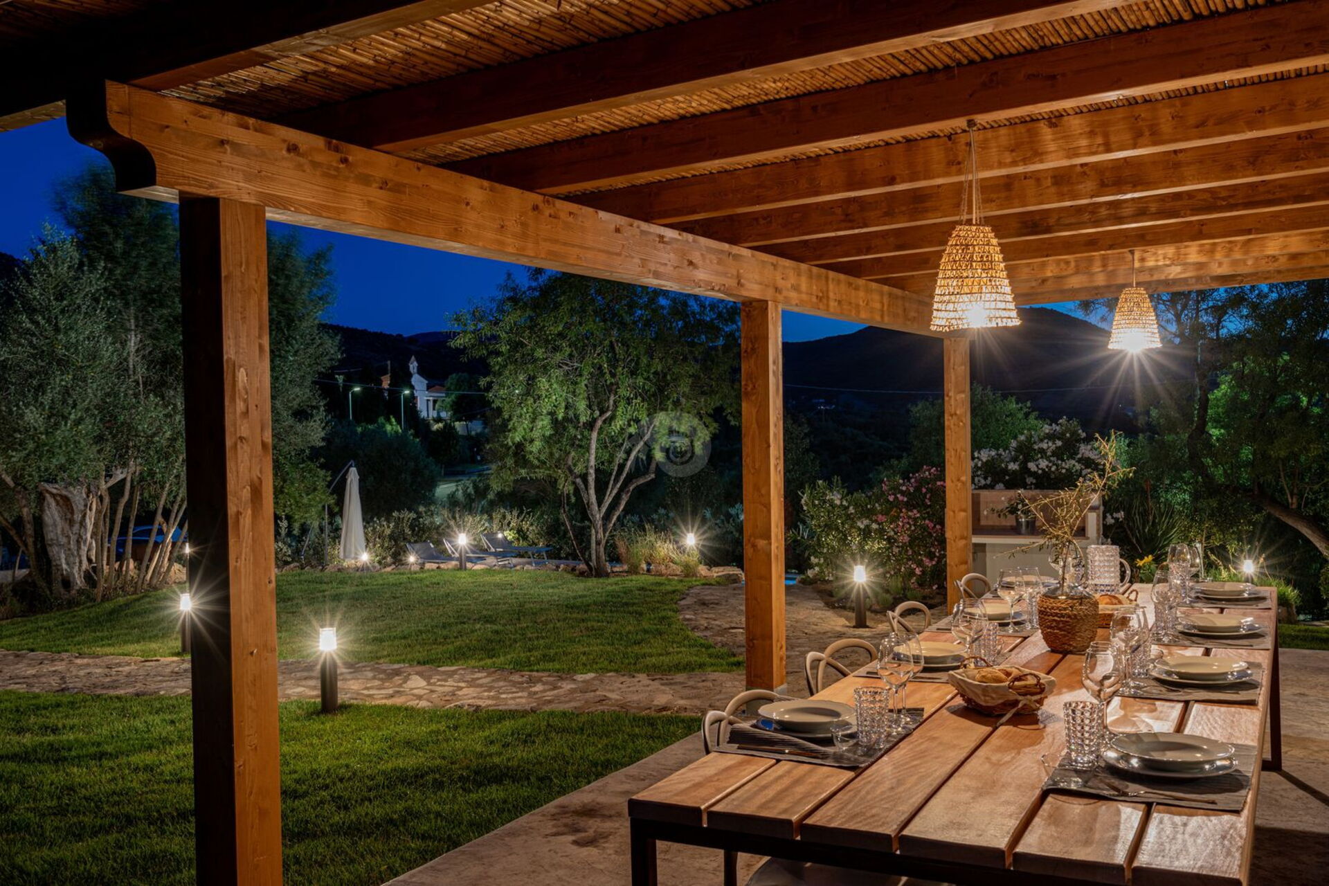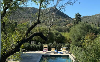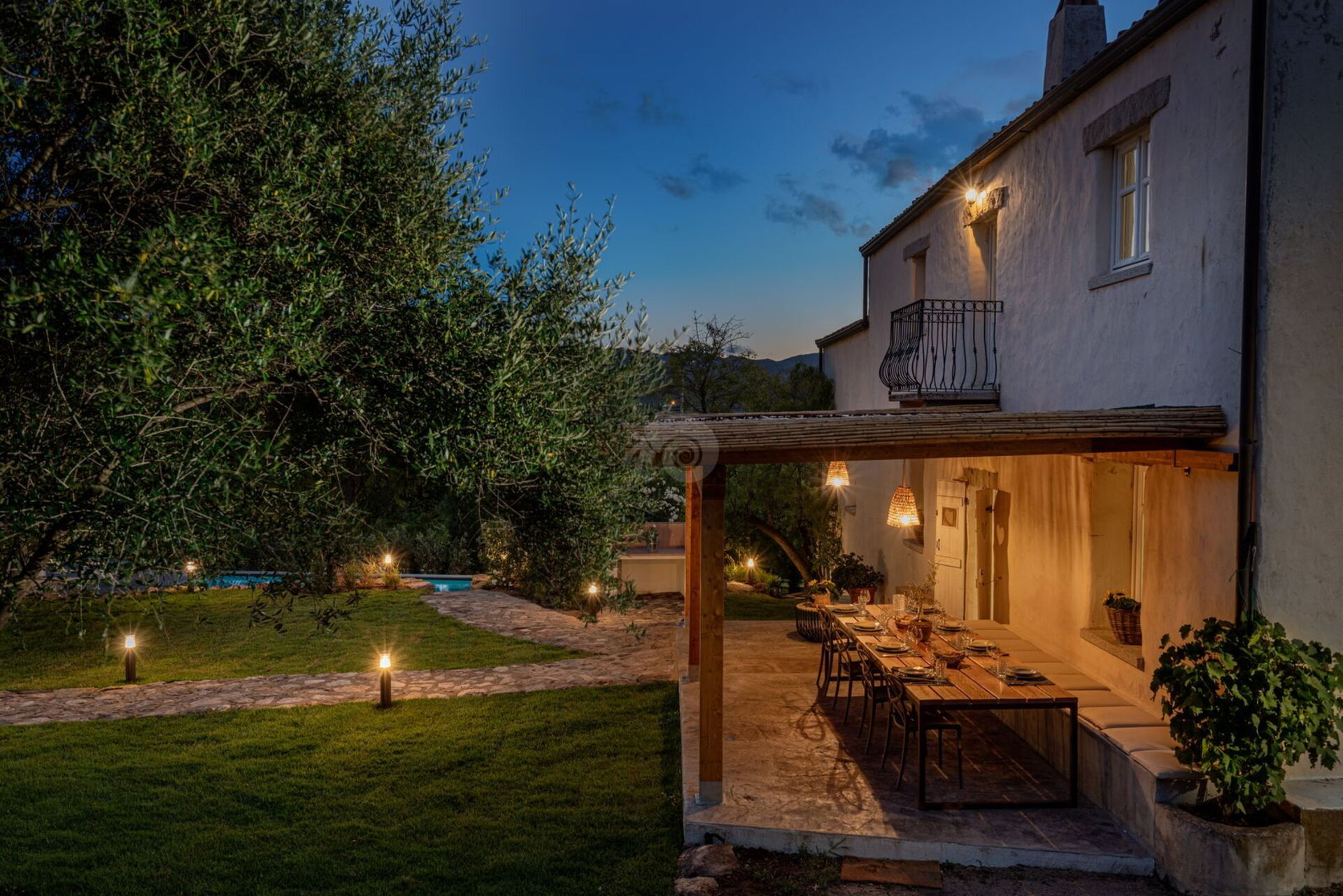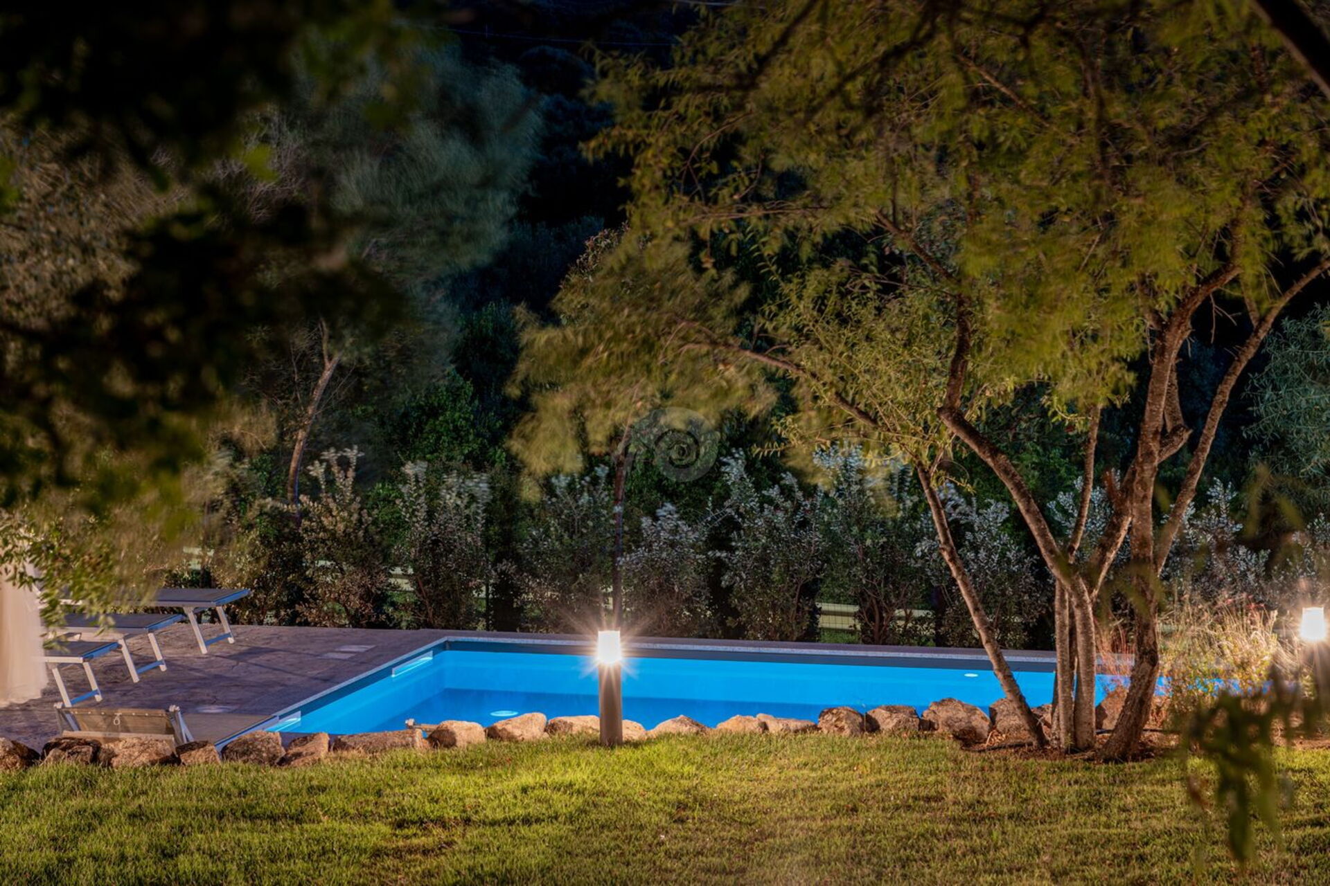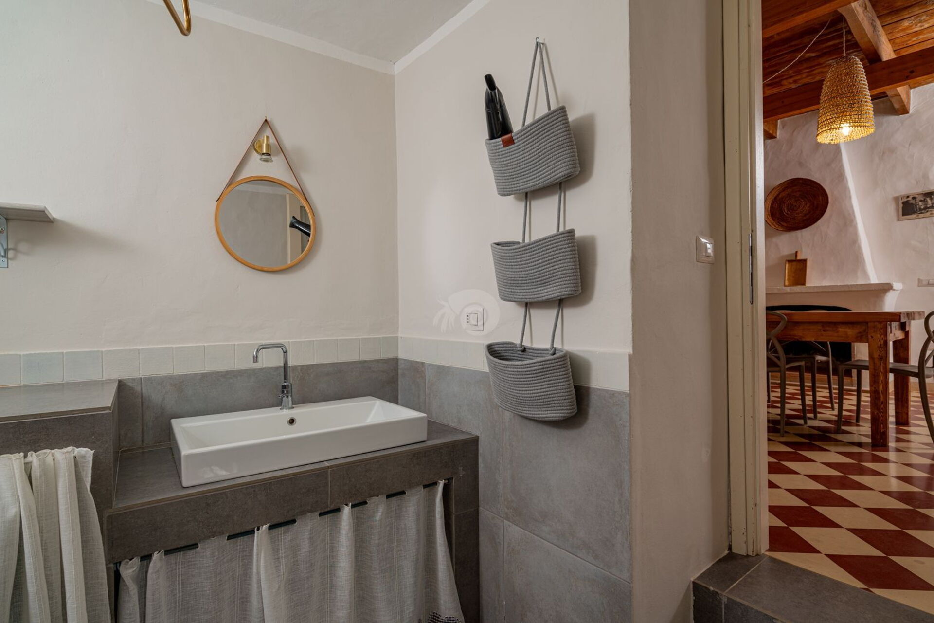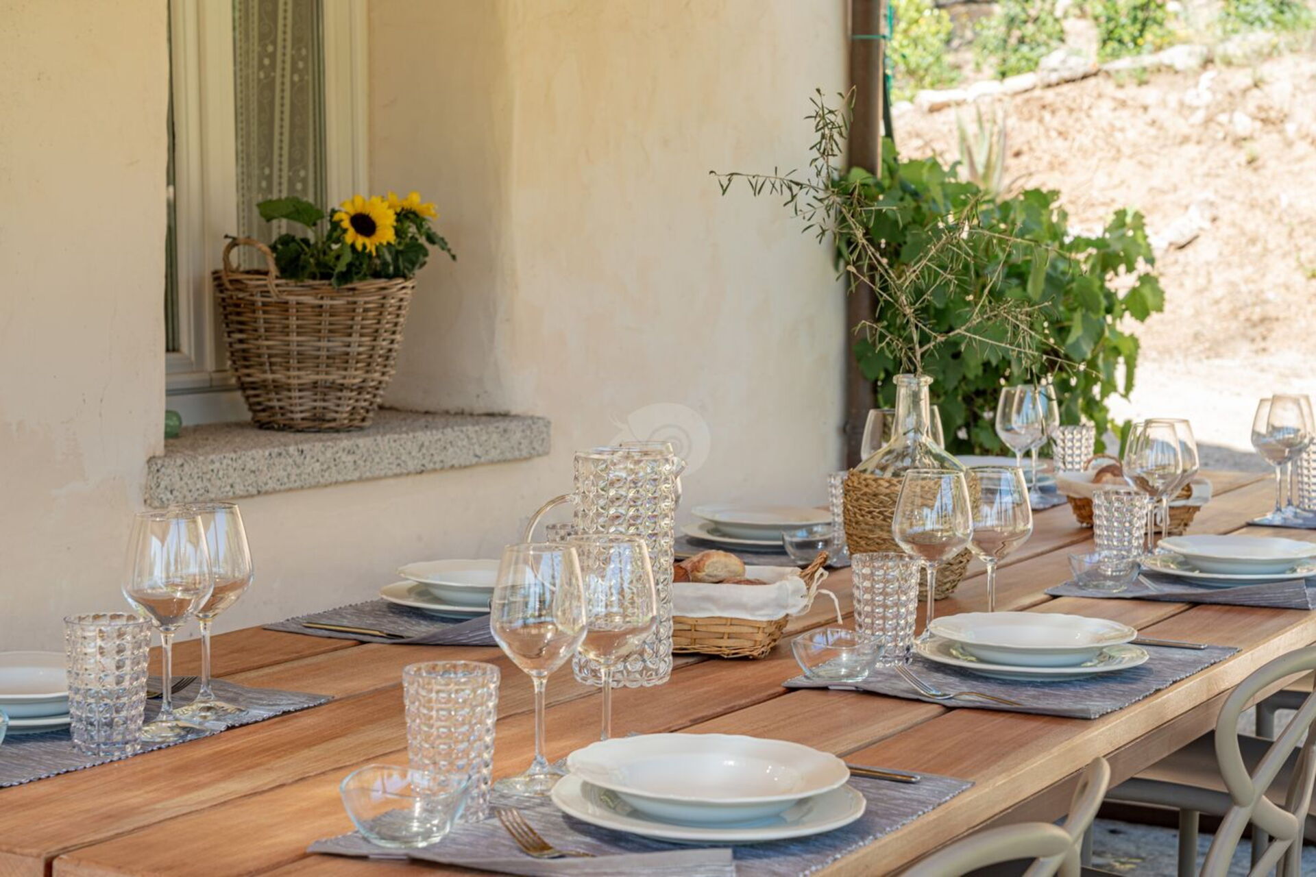This ancient 19th-century villa for rent in Sardinia has been renovated preserving the historic charm of the foundations, combining elements of to a refined style. This charming property can be reached along a paved path that leads directly to a large and well-kept lawn overlooked by a large veranda. Here there is a large table to comfortably dine outdoors and enjoy the surrounding nature. On the left there is a large paved space which houses a fantastic and clear heated in-ground private swimming pool surrounded by a relaxing solarium area.