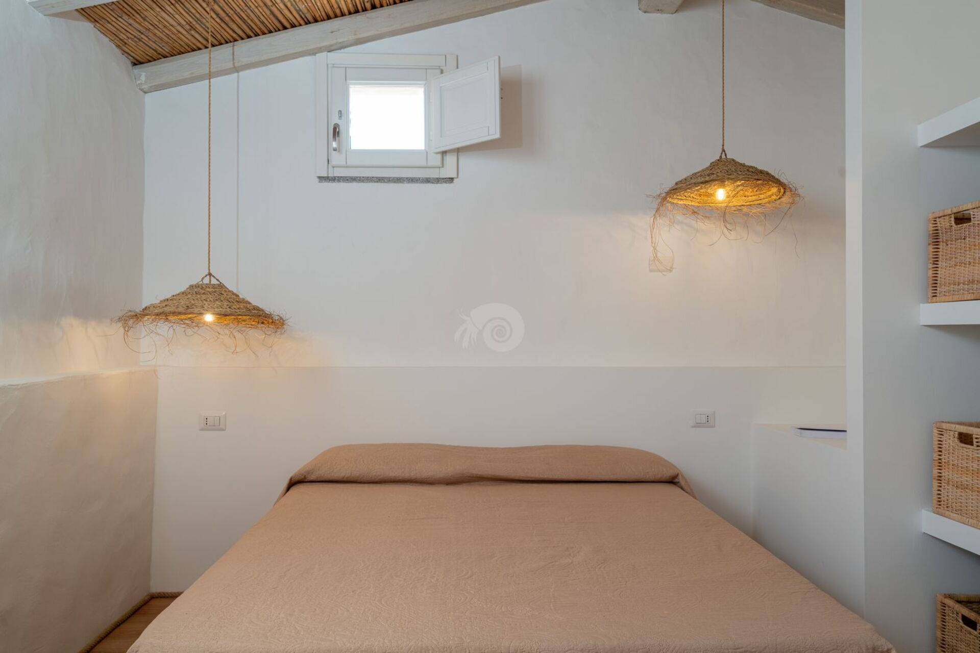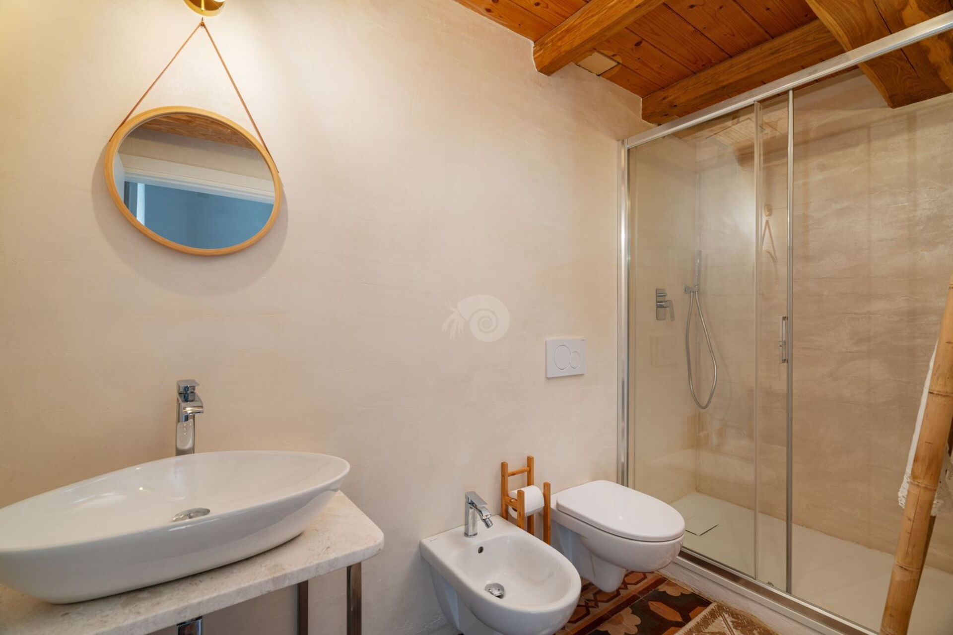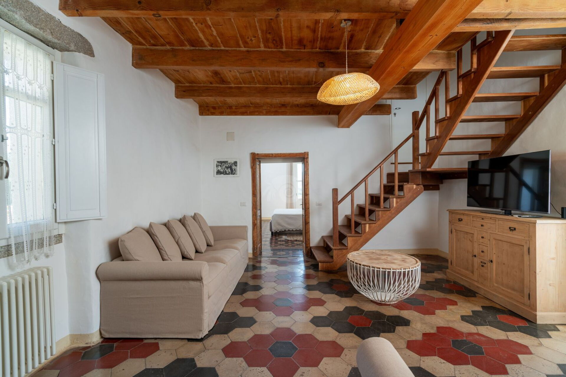 At the entrance there is a delightful and spacious kitchen complete with everything with an elegantly rustic flavor in which simplicity reigns supreme. Here we find a long table with an intense color and a fireplace that helps to spread a familiar and homely atmosphere. Further on there is a comfortable living room with warm colors that spread an enveloping sensation where there is a double sofa bed. On the same floor there is also a comfortable double bedroom with a delicate-looking en suite bathroom that directly overlooks the fantastic garden.