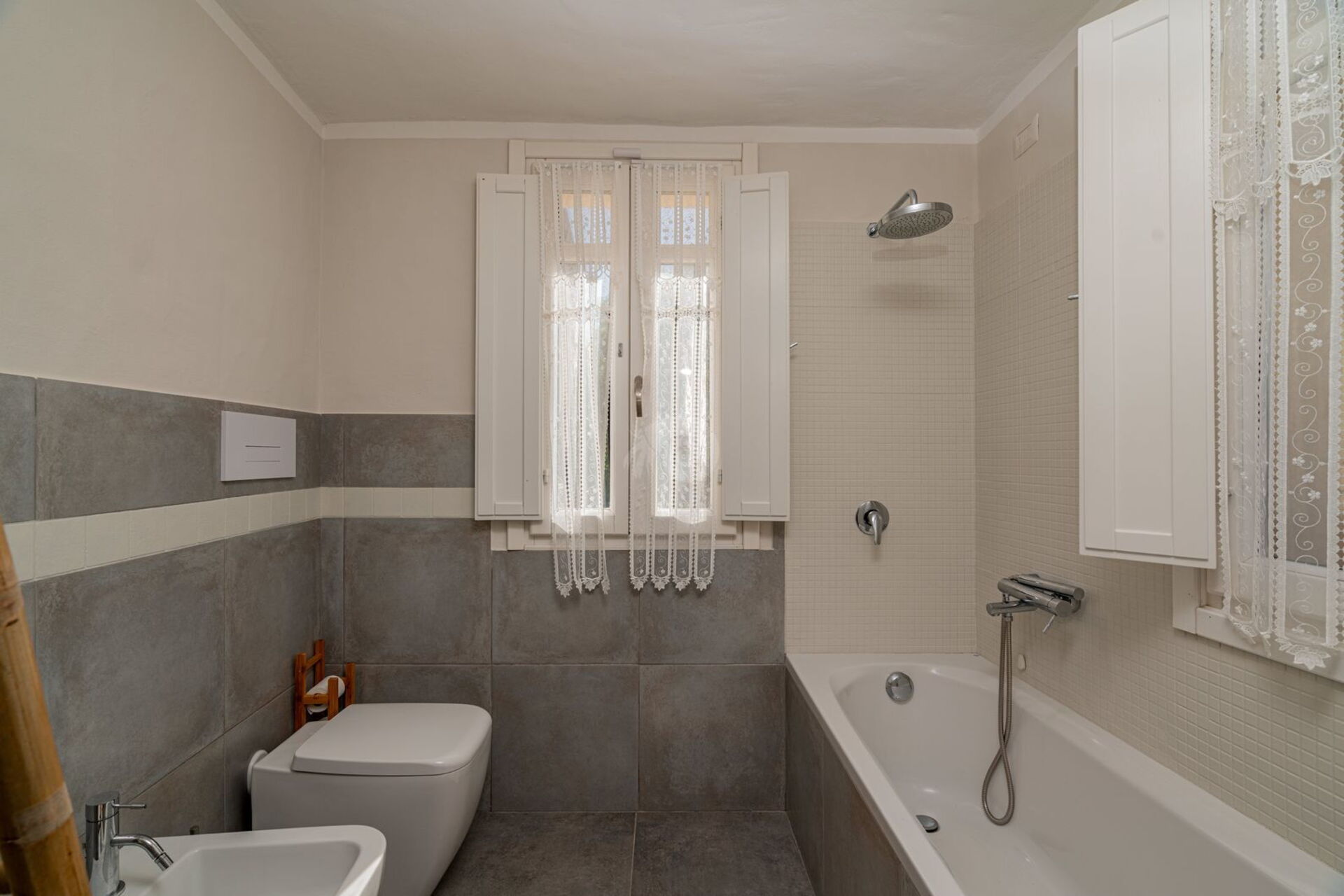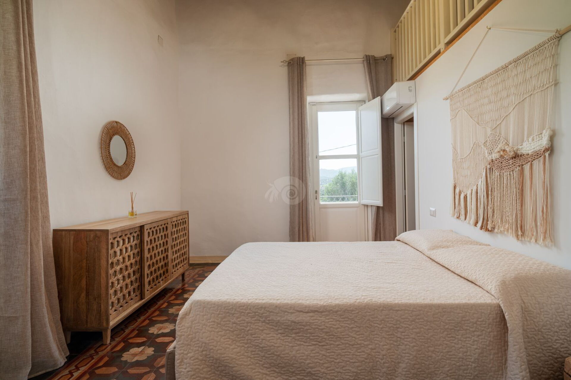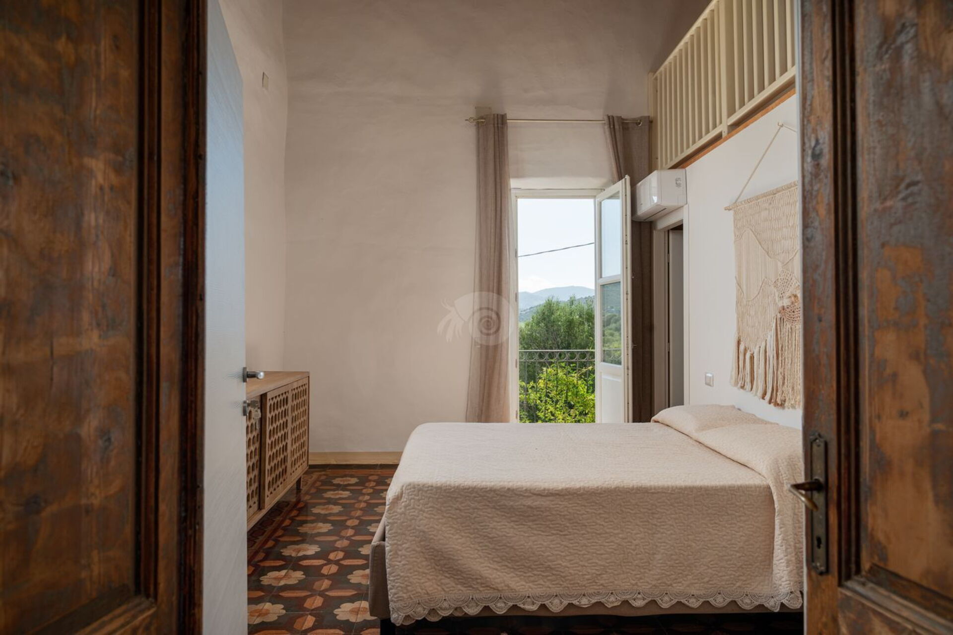 At the entrance there is a delightful and spacious kitchen complete with everything with an elegantly rustic flavor in which simplicity reigns supreme. Here we find a long table with an intense color and a fireplace that helps to spread a familiar and homely atmosphere. Further on there is a comfortable living room with warm colors that spread an enveloping sensation where there is a double sofa bed. On the same floor there is also a comfortable double bedroom with a delicate-looking en suite bathroom that directly overlooks the fantastic garden.
