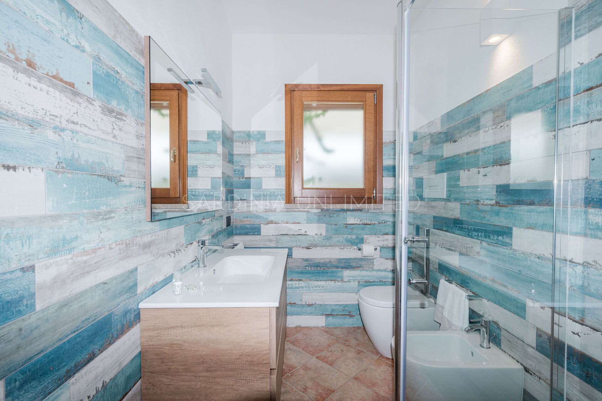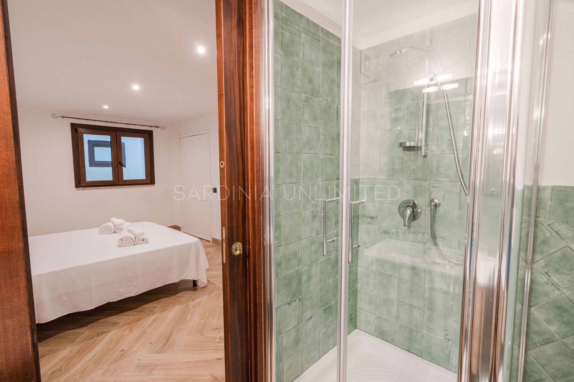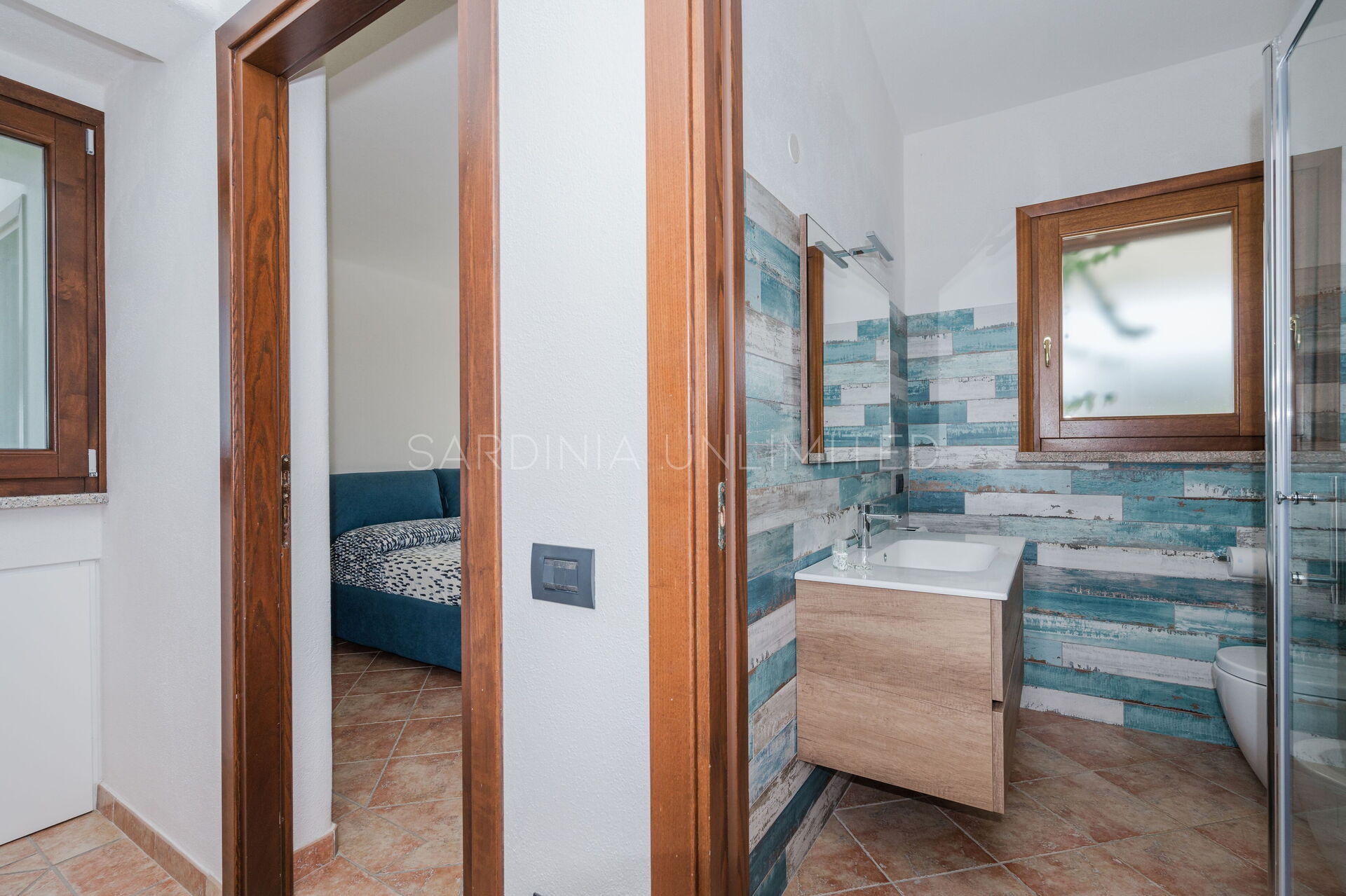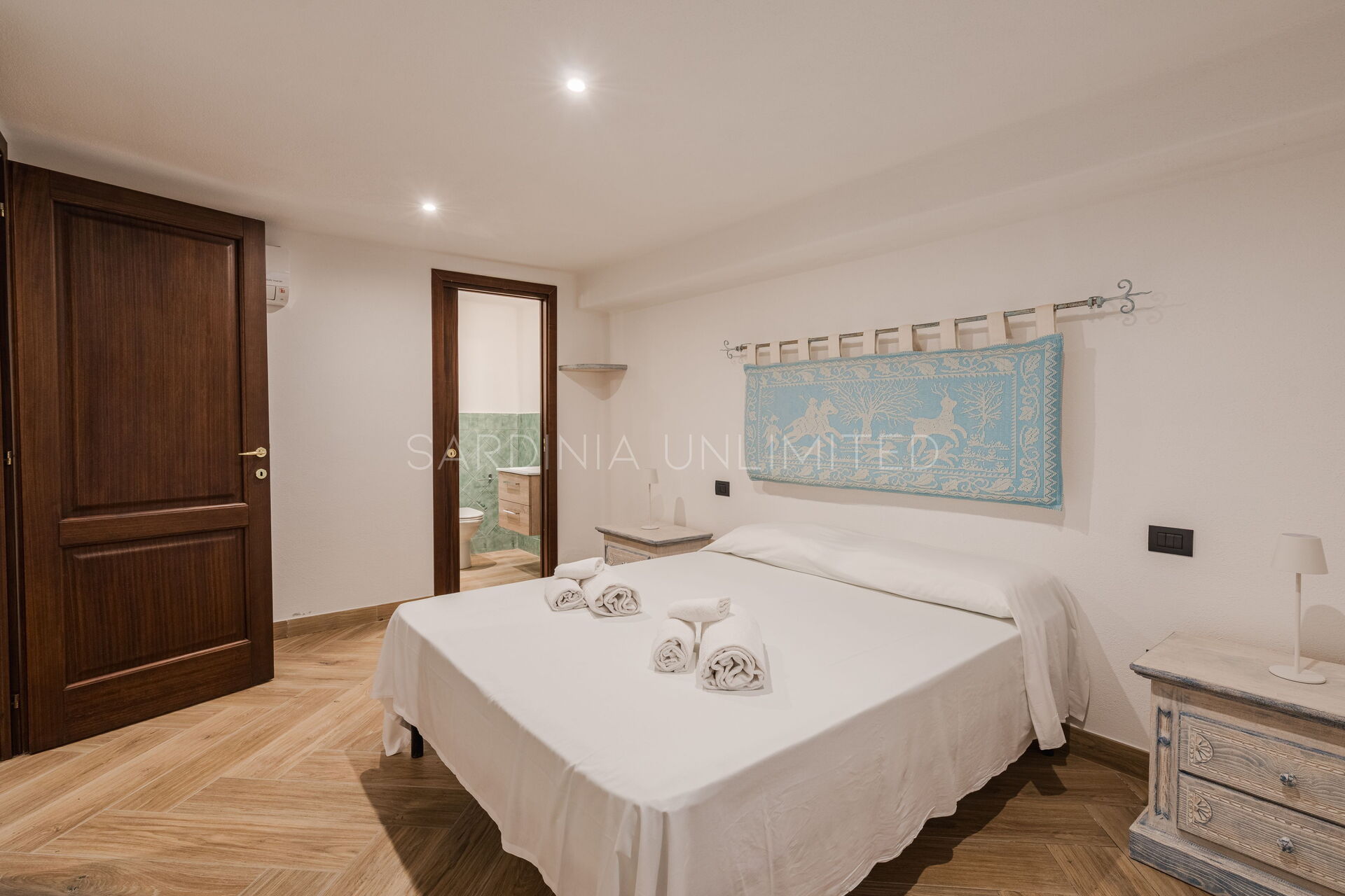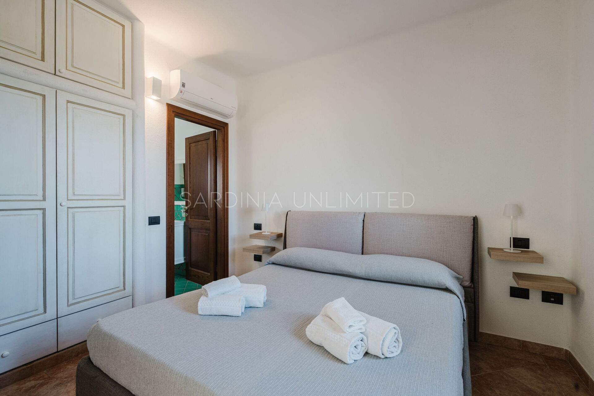 We also find two additional double bedrooms with en-suite bathrooms, both air-conditioned, like the rest of the villa's rooms. This area of the property can also be reached via an additional and independent external access.