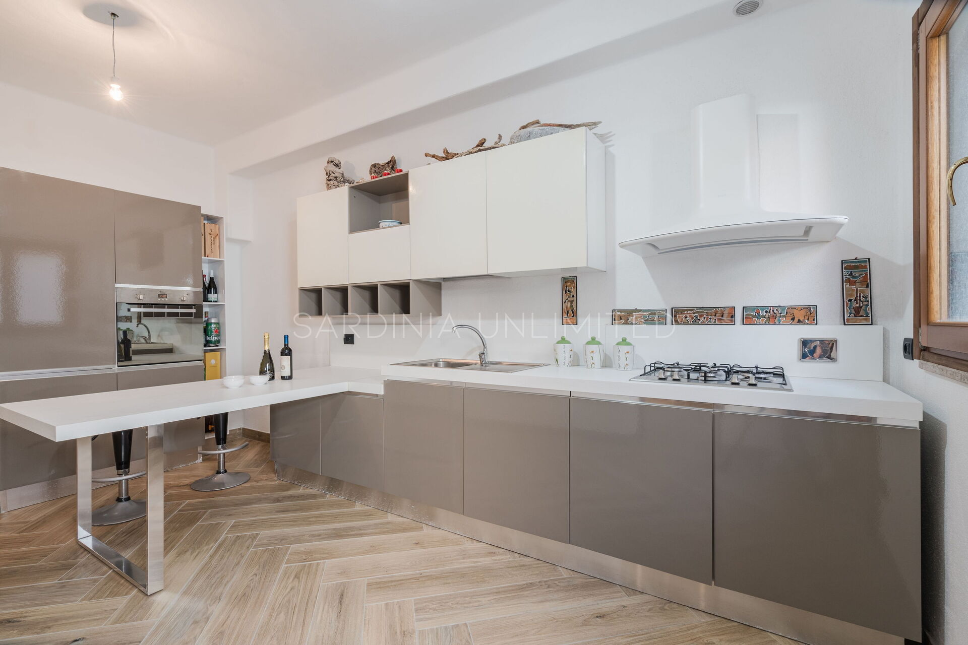 The kitchen is functionally designed to ensure practicality, thanks to the presence of state-of-the-art appliances.