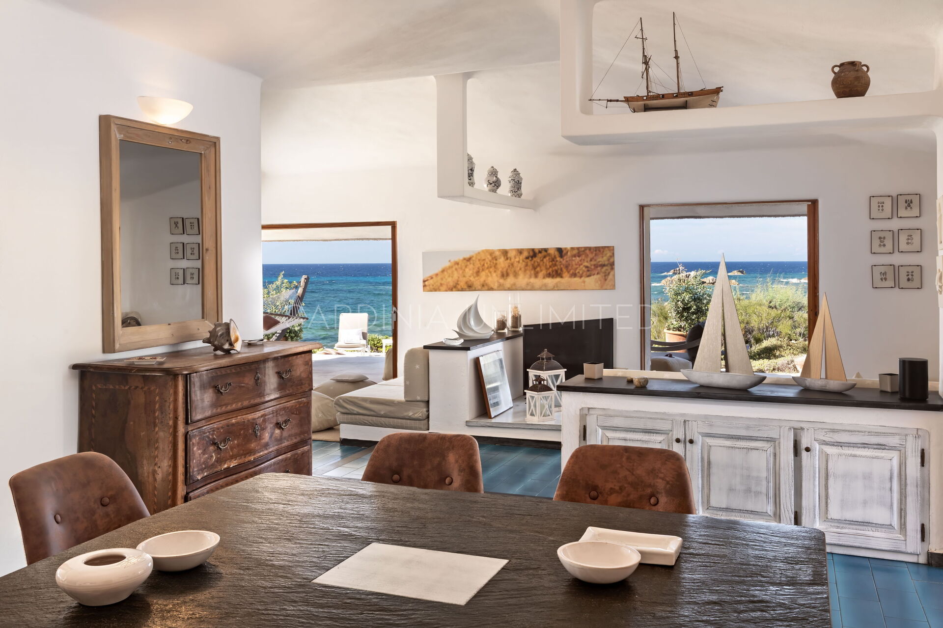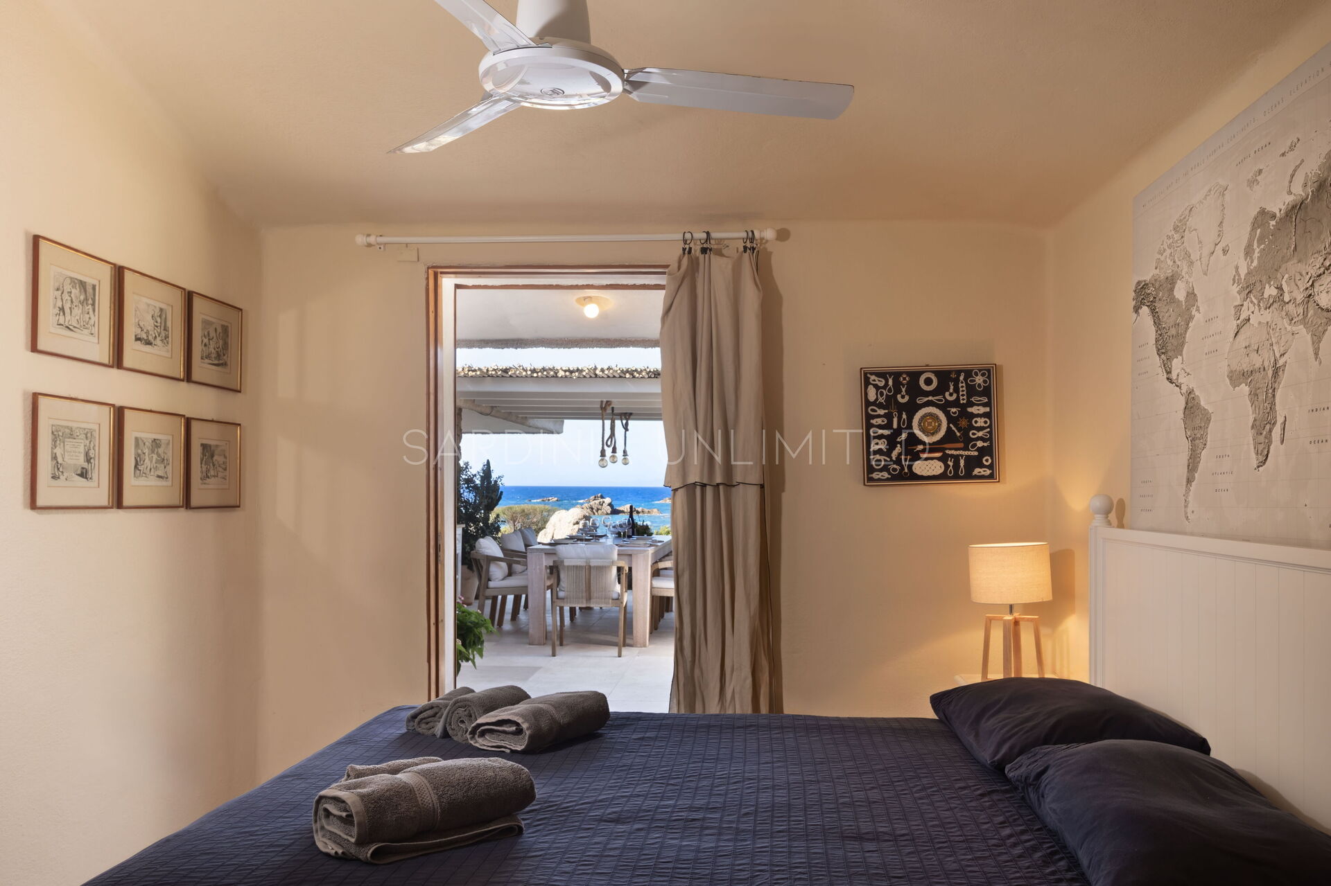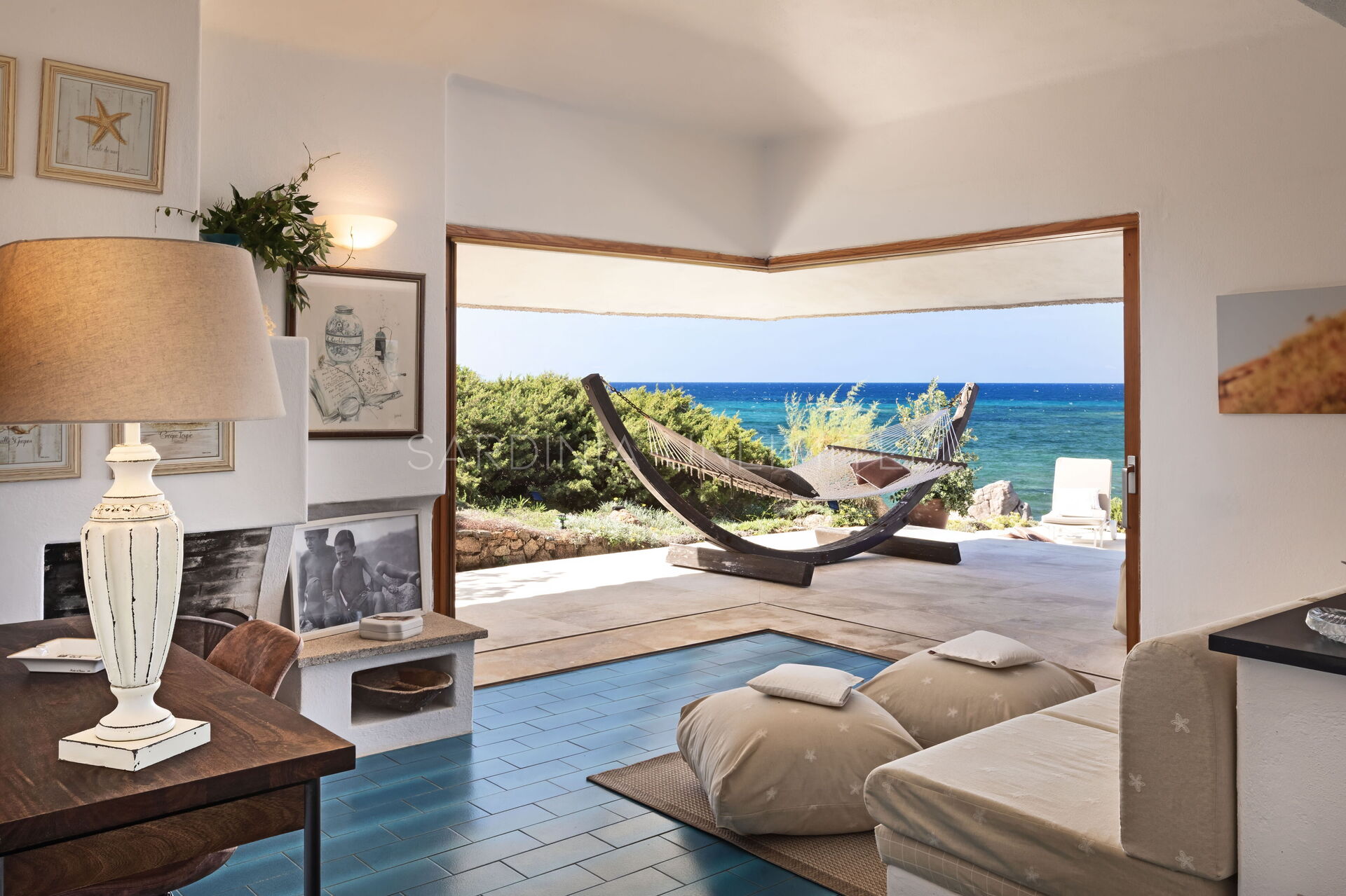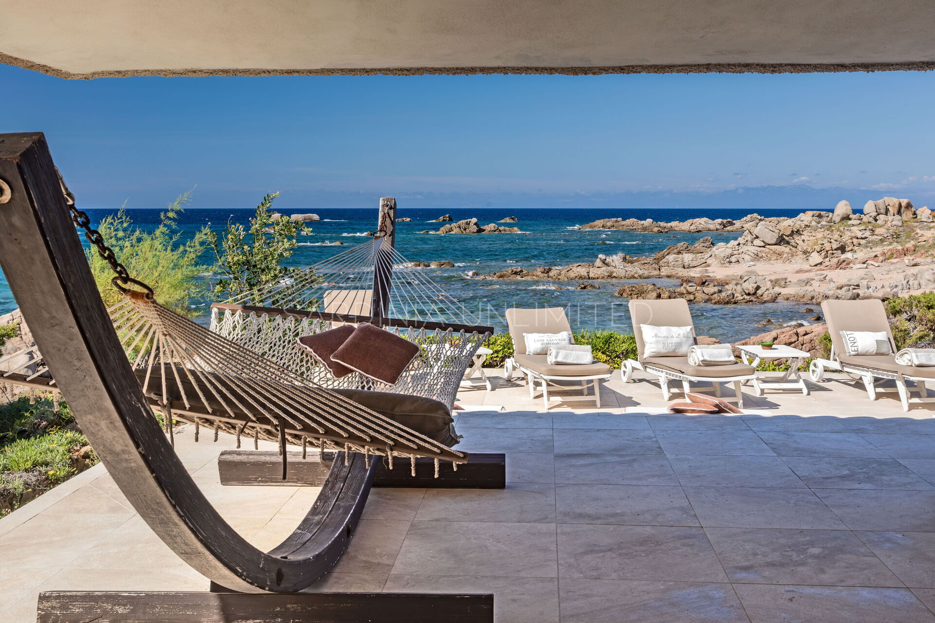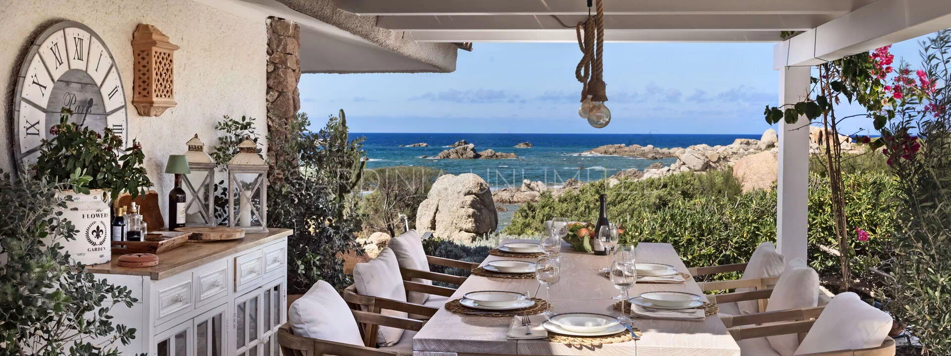 The covered and fully equipped veranda is ideal for social gatherings and al fresco dining, perfect for enjoying the Sardinian climate in complete relaxation. In addition, several dedicated lounge areas have been designed to offer maximum tranquility, allowing you to unwind, accompanied only by the soothing sound of the waves. An extra rear area, also furnished with a table and chairs, creates intimate corners for quiet breakfasts or aperitifs in an atmosphere of total serenity.