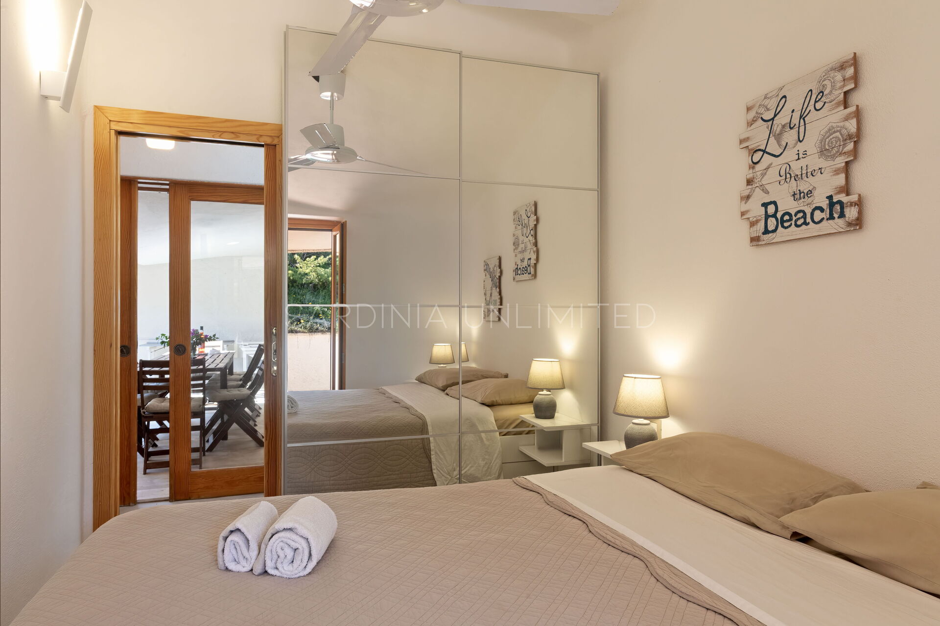 Inside, you will be welcomed by spacious, bright rooms furnished with neutral and sophisticated tones, expertly balanced by intense blue flooring. This striking contrast, along with carefully selected decorative details, elegantly evokes the essence of the sea and its elements, guaranteeing you an elegant and deeply relaxing atmosphere.