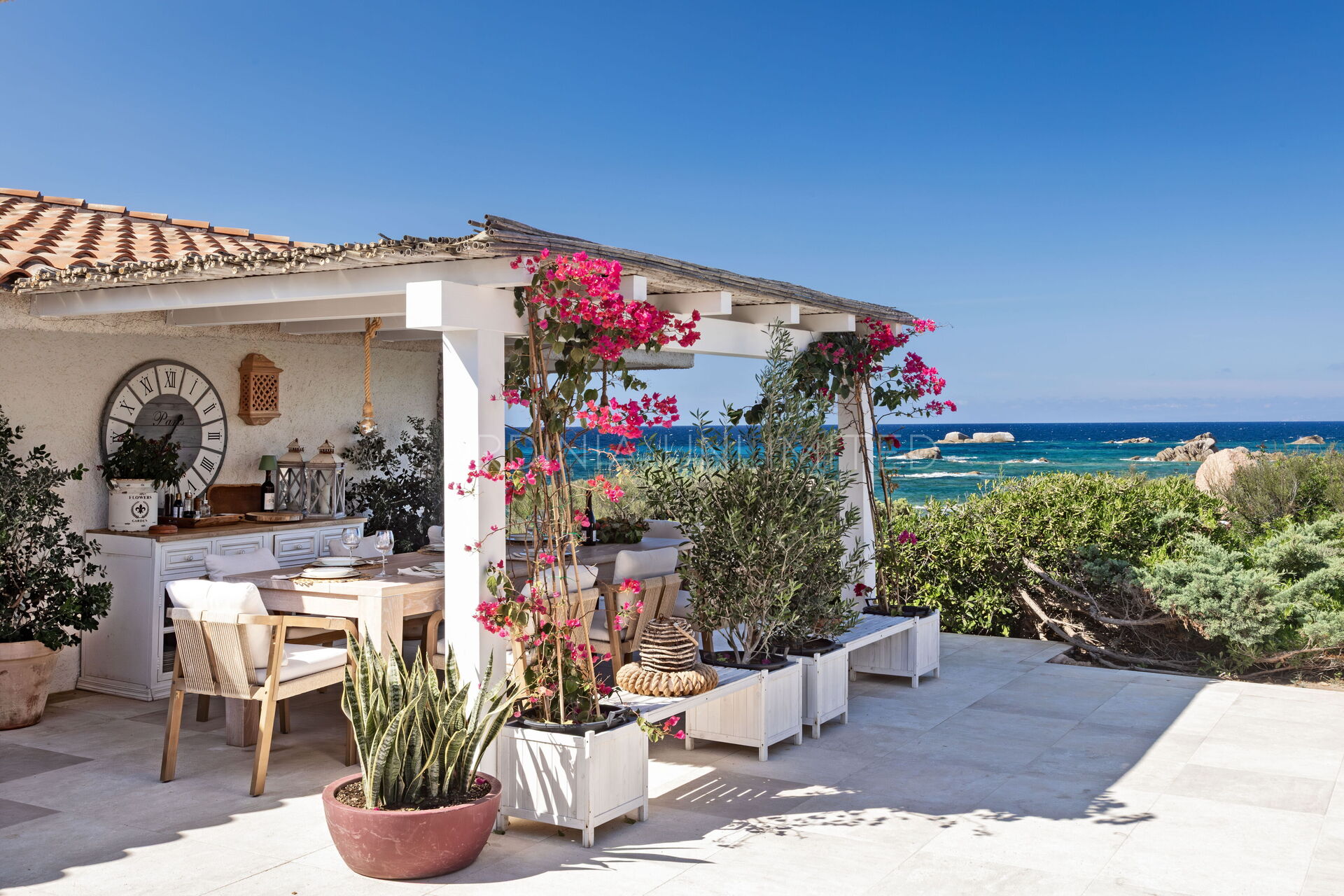 The outdoor spaces are the focal point of the villa—a true sanctuary in direct contact with the intoxicating scents of the Mediterranean scrub and surrounded by the intense blue of the sea.