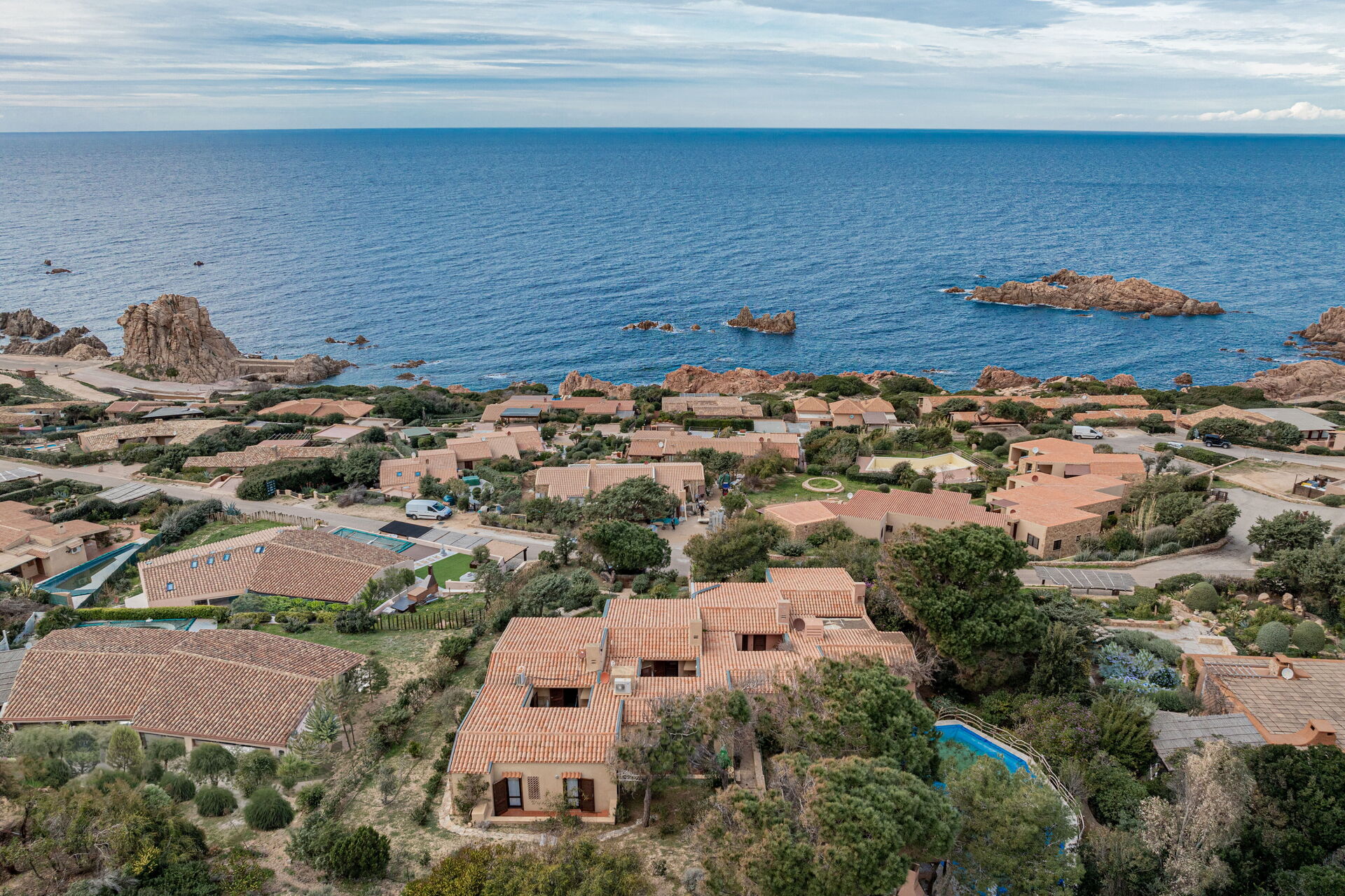 De prachtige Villa Baia di Myrtama is een woning gelegen in Costa Paradiso, ondergedompeld in de geur van pijnbomen en gestreeld door de frisse bries afkomstig van de zee.