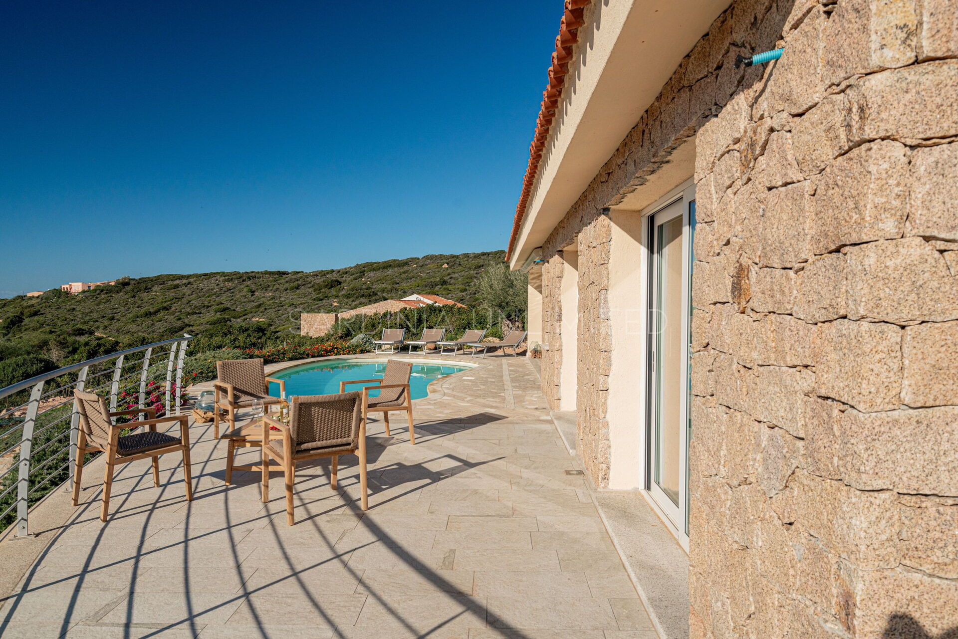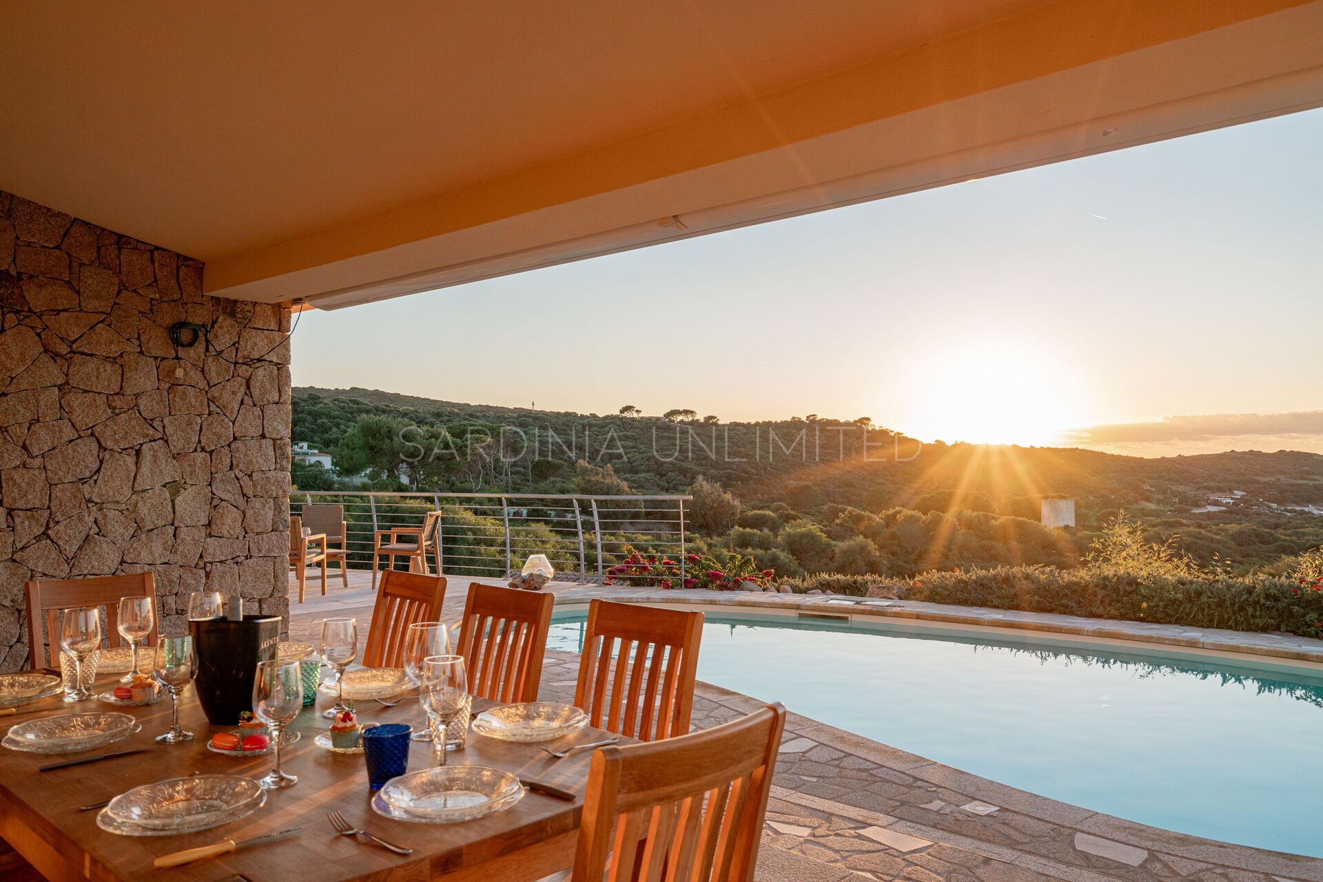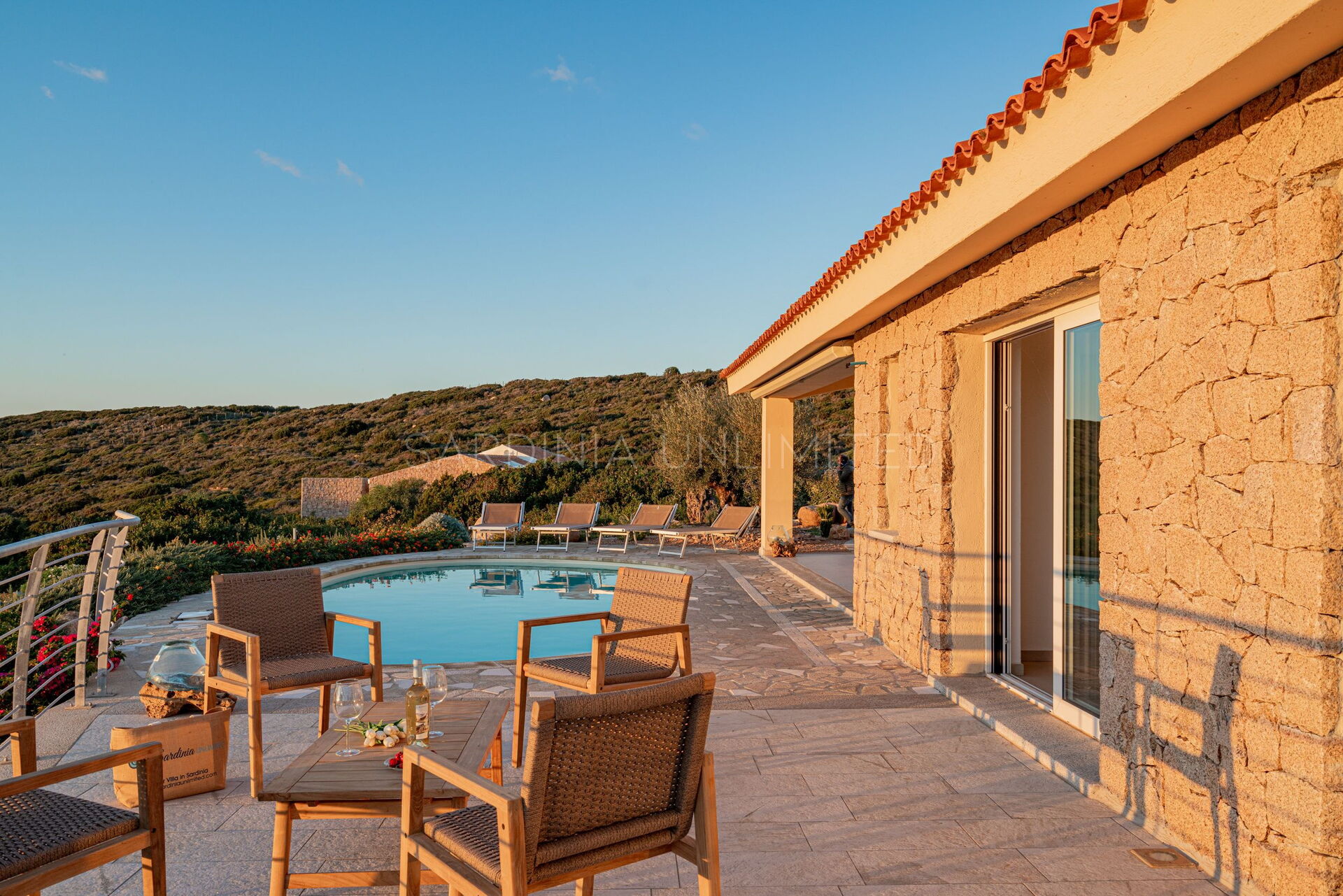 De unieke ligging van de villa, iets hoger dan het strand, biedt een schitterend uitzicht op de zee en de hele baai van Marinedda. Omringd door de karakteristieke rode porfierrotsen en de intense kleuren en geuren van de mediterrane natuur, zorgt de villa voor betoverende avonden met adembenemende en onvergetelijke zonsondergangen.