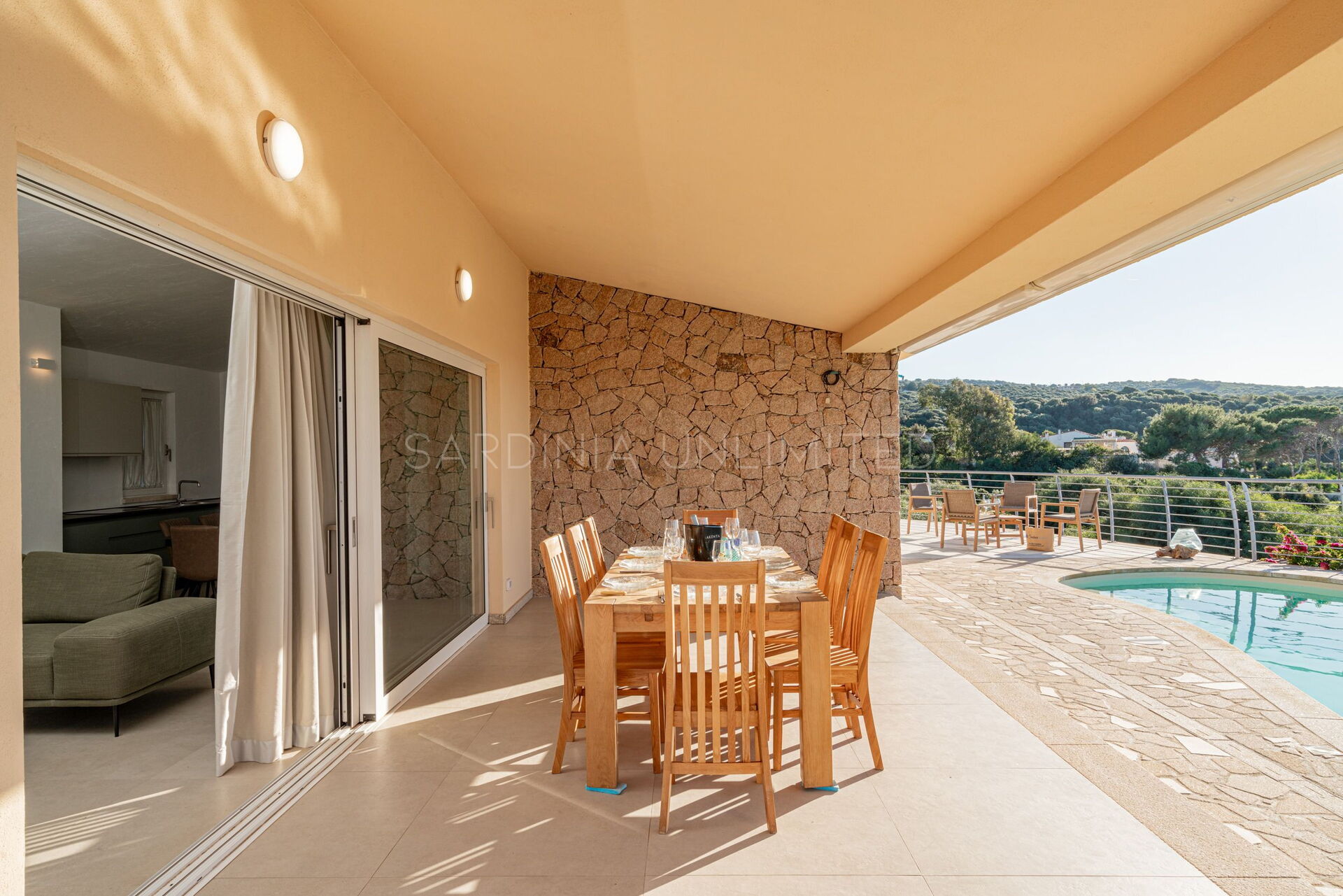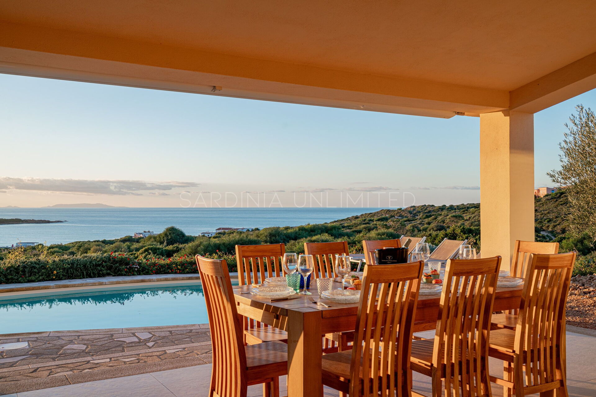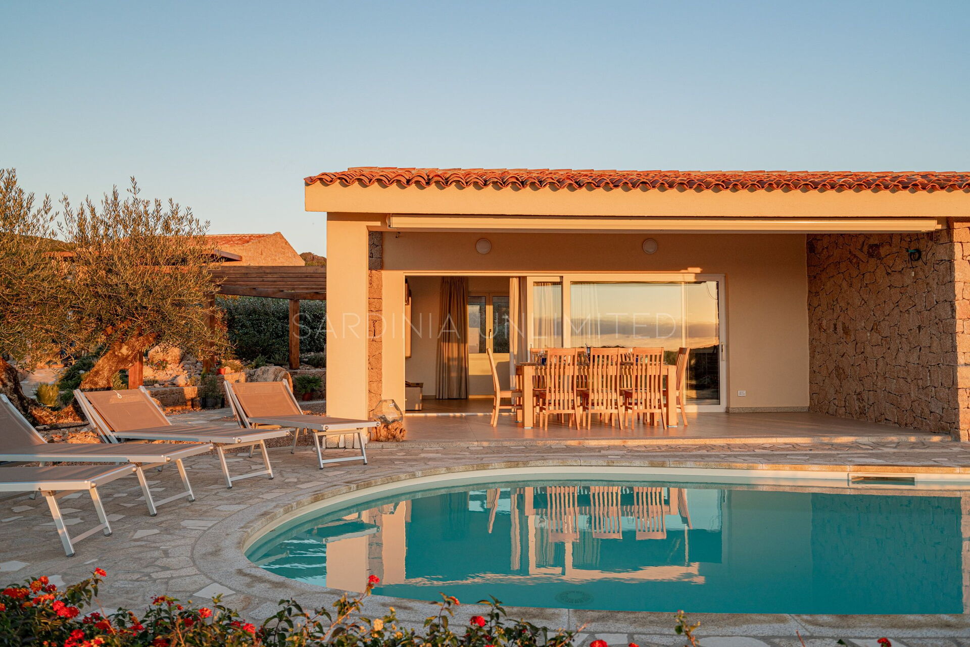 De unieke ligging van de villa, iets hoger dan het strand, biedt een schitterend uitzicht op de zee en de hele baai van Marinedda. Omringd door de karakteristieke rode porfierrotsen en de intense kleuren en geuren van de mediterrane natuur, zorgt de villa voor betoverende avonden met adembenemende en onvergetelijke zonsondergangen.