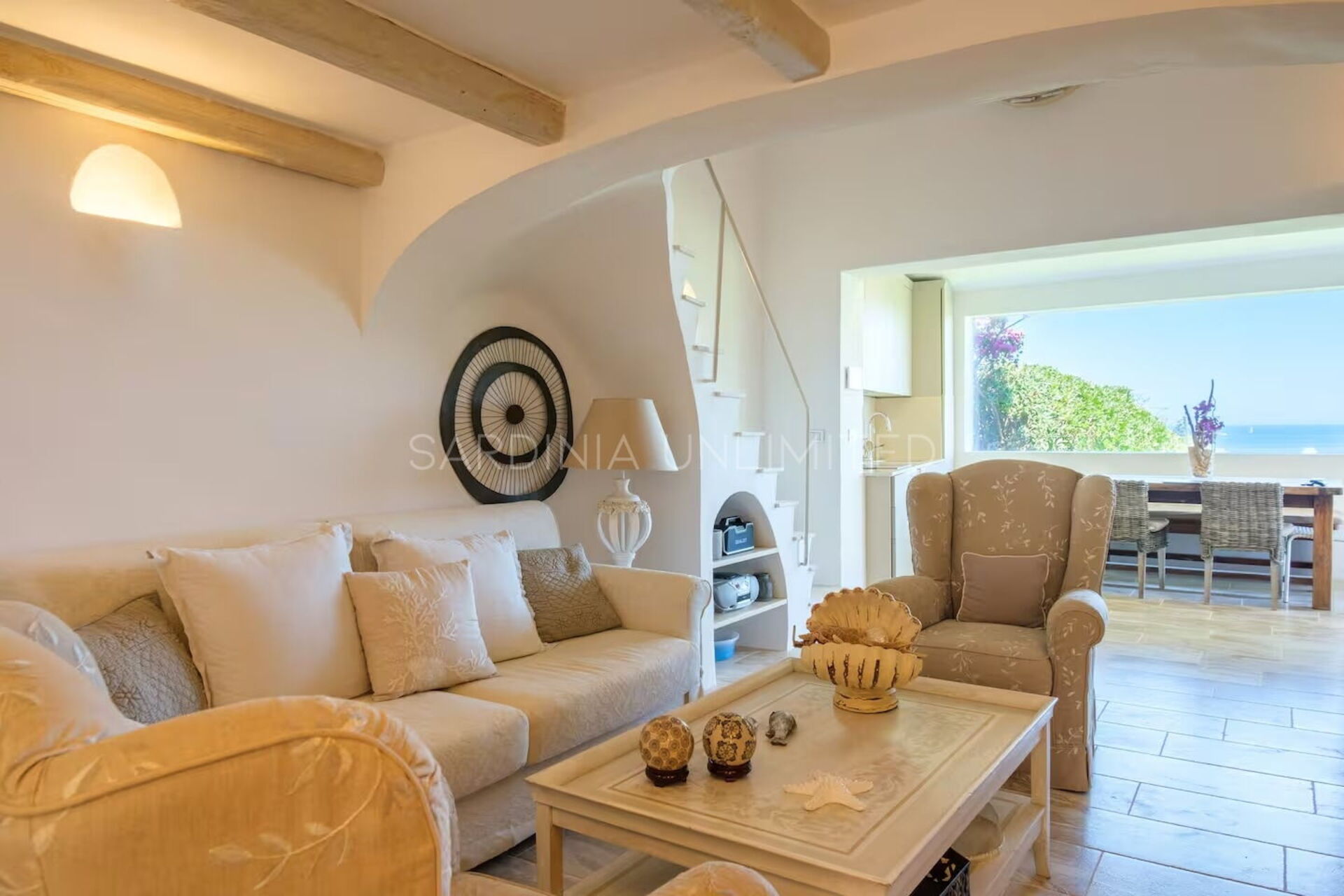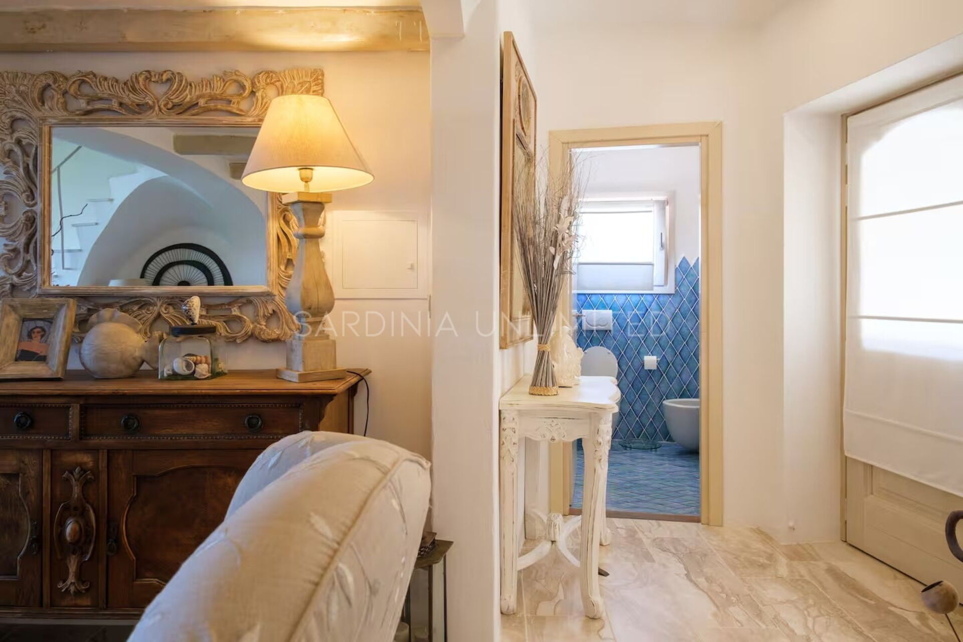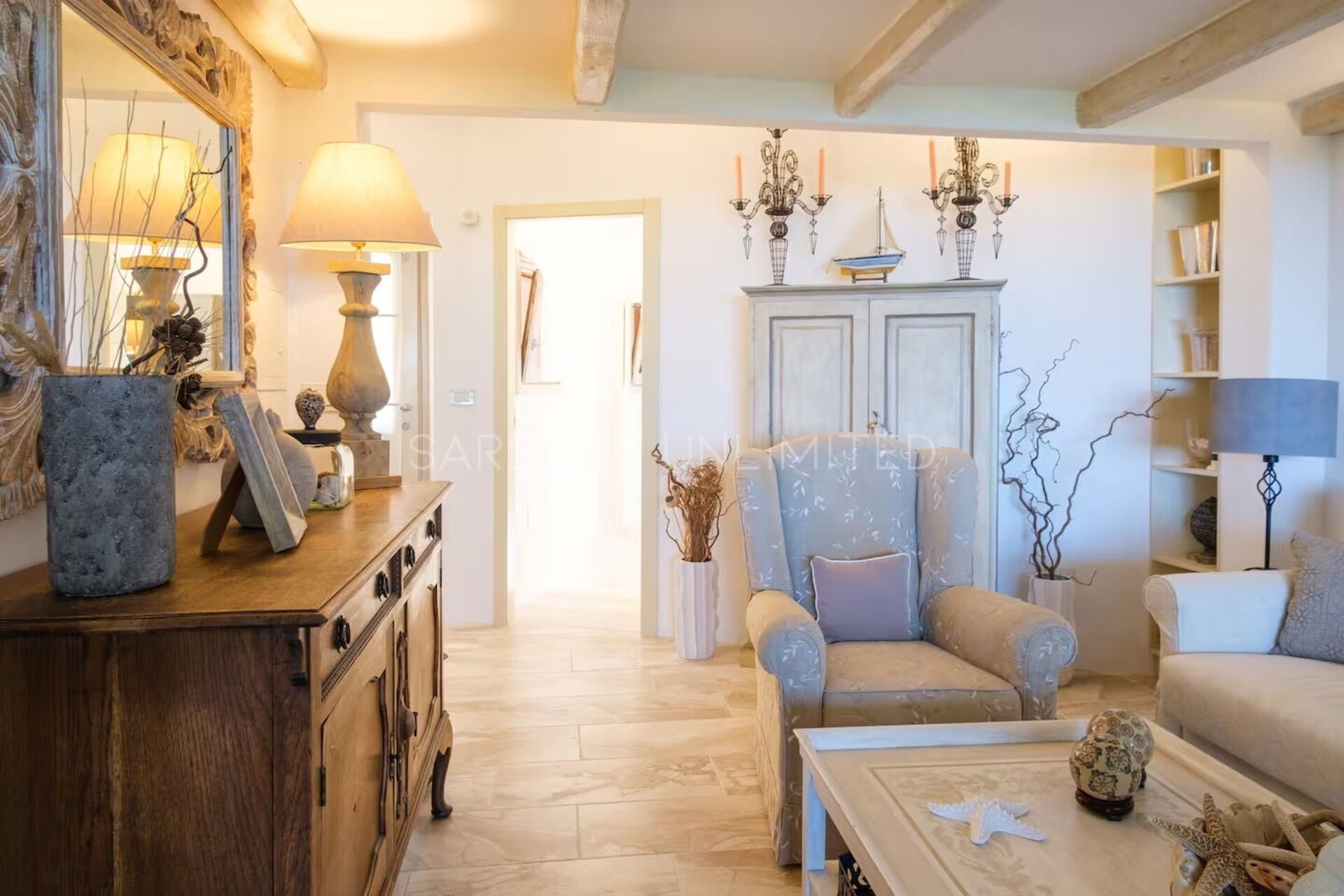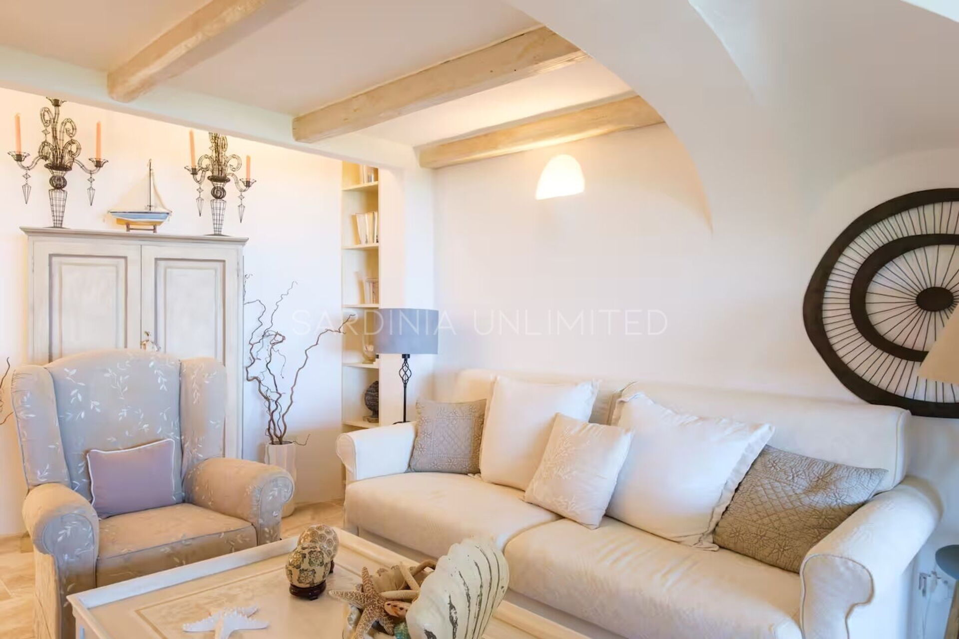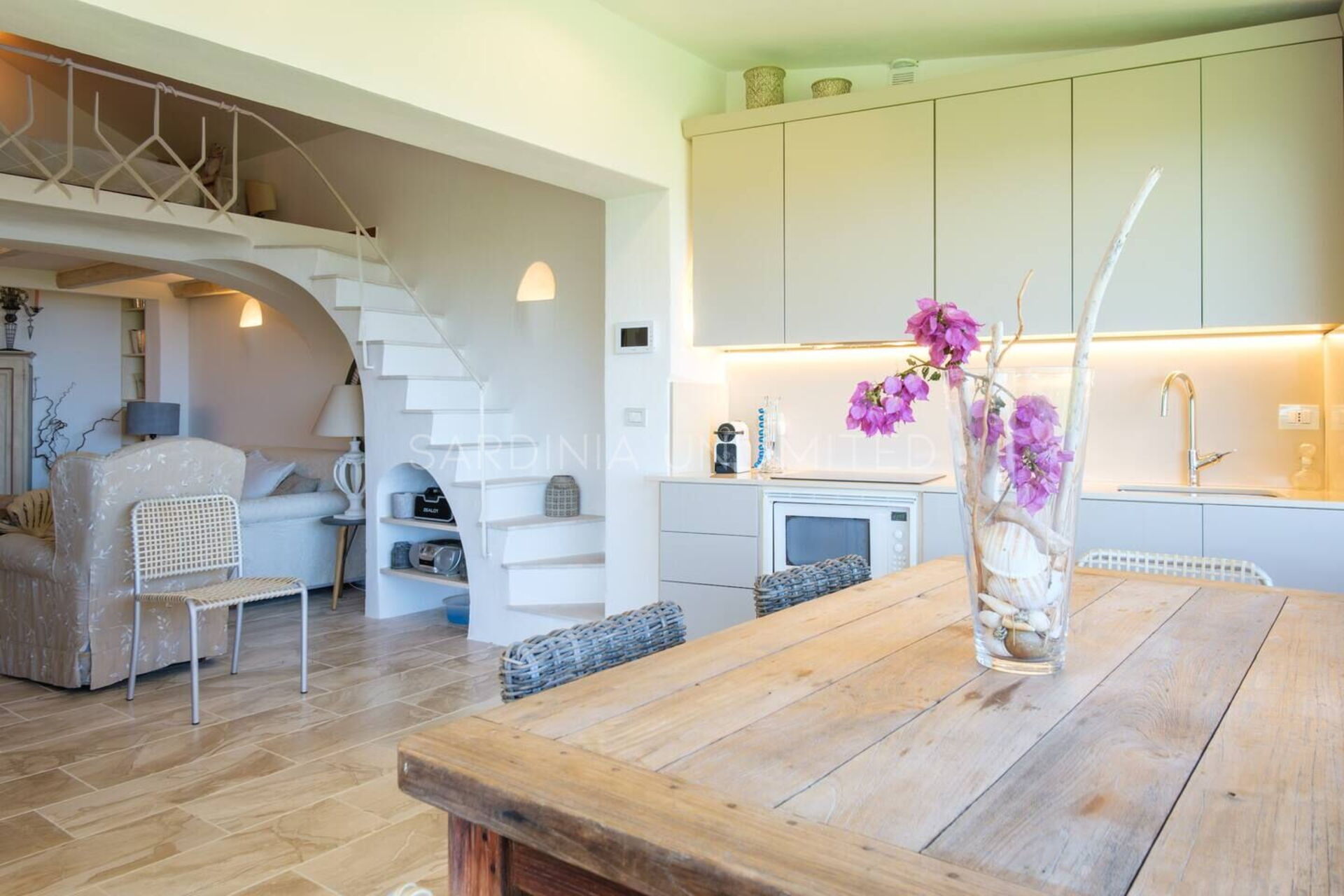 Binnen combineert Villa Cala Granu elegantie en functionaliteit in een lichte en verfijnde omgeving, in perfecte shabby chic-stijl, zonder in te boeten aan modern comfort.