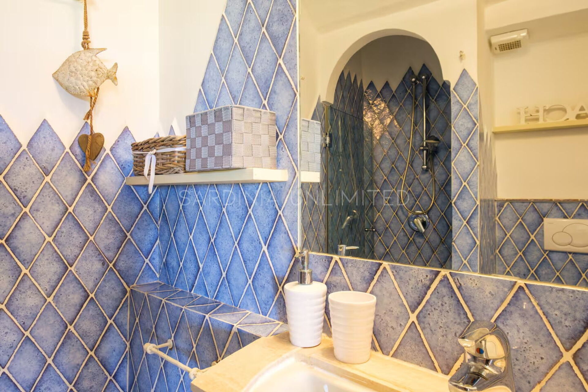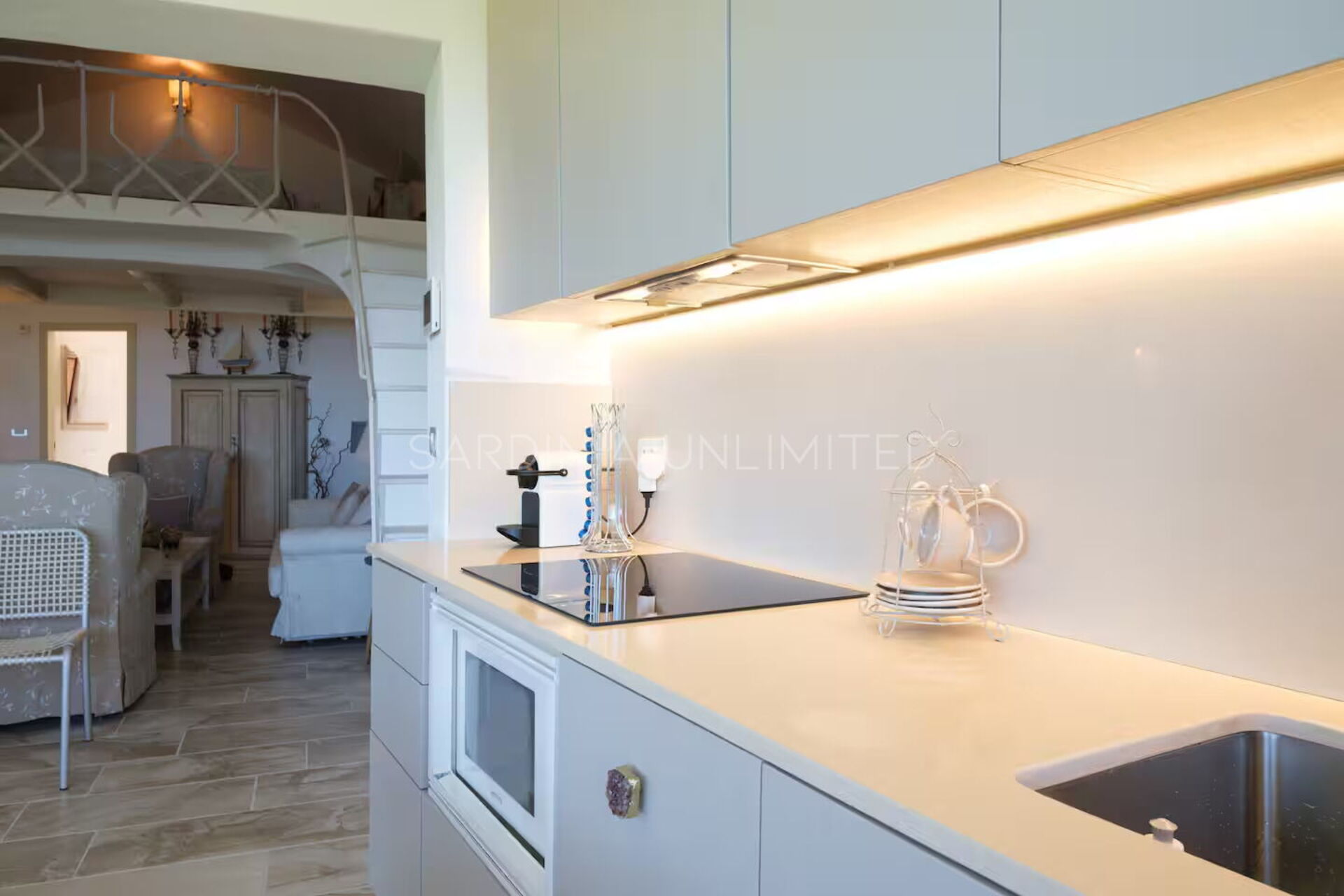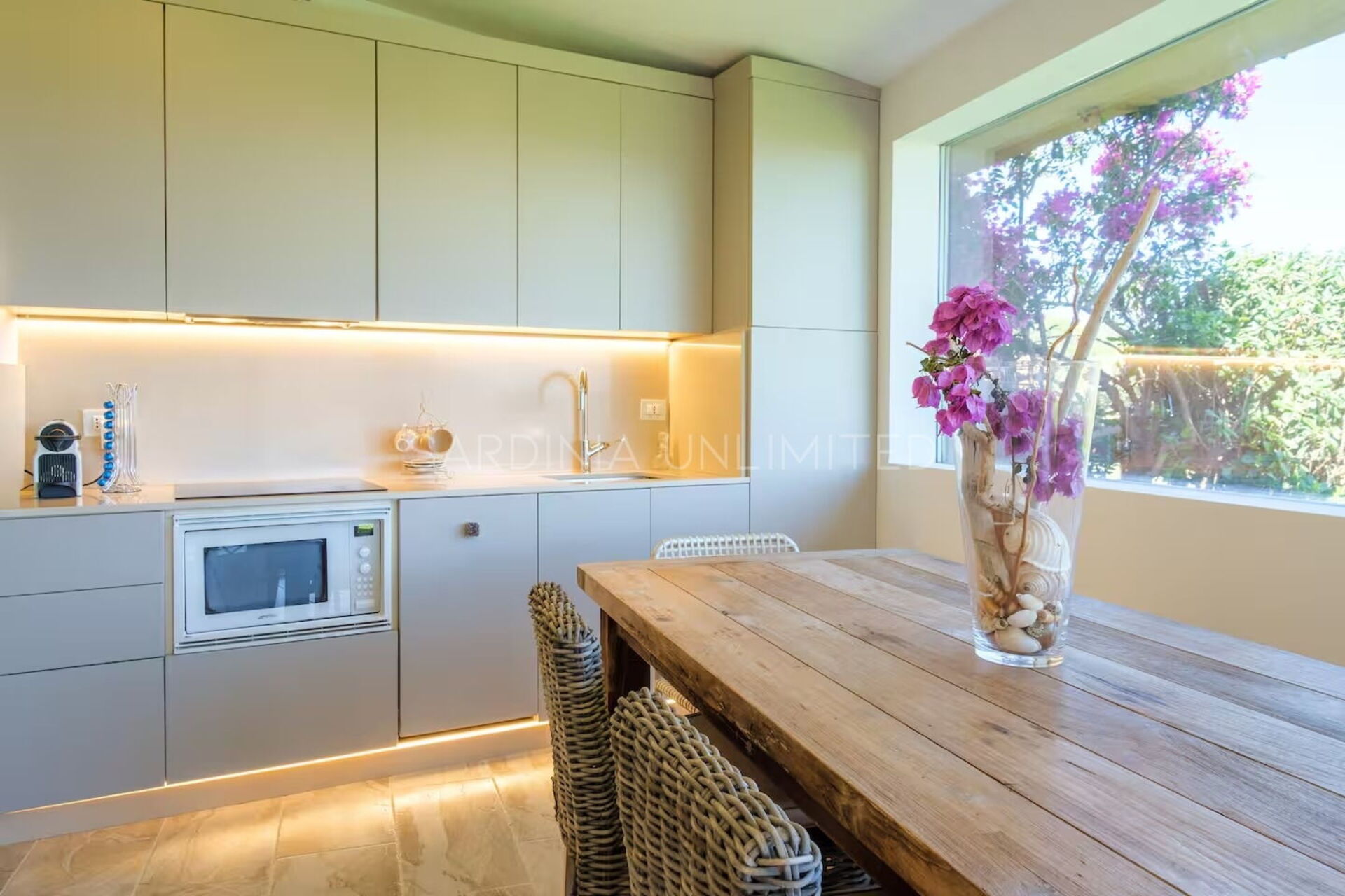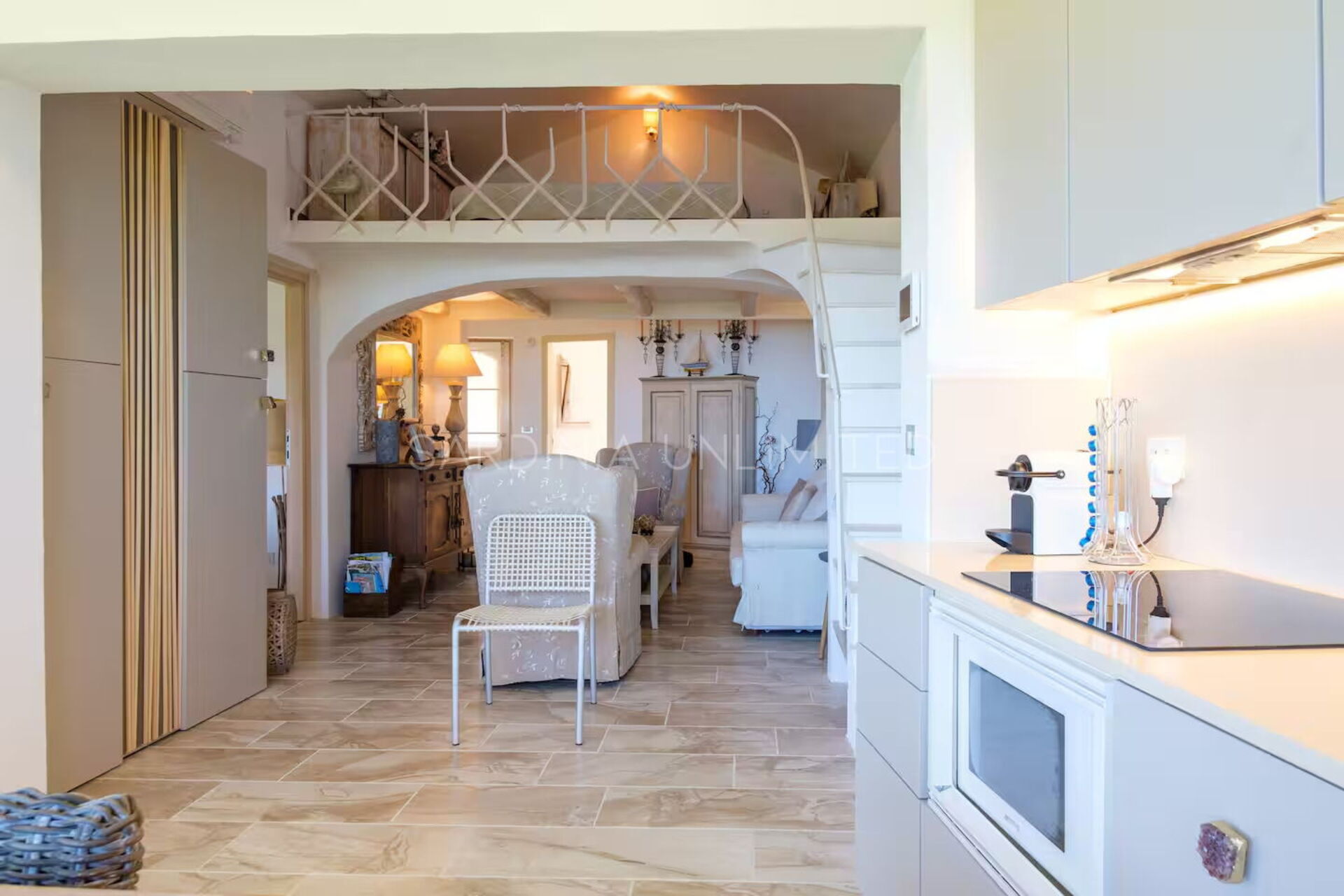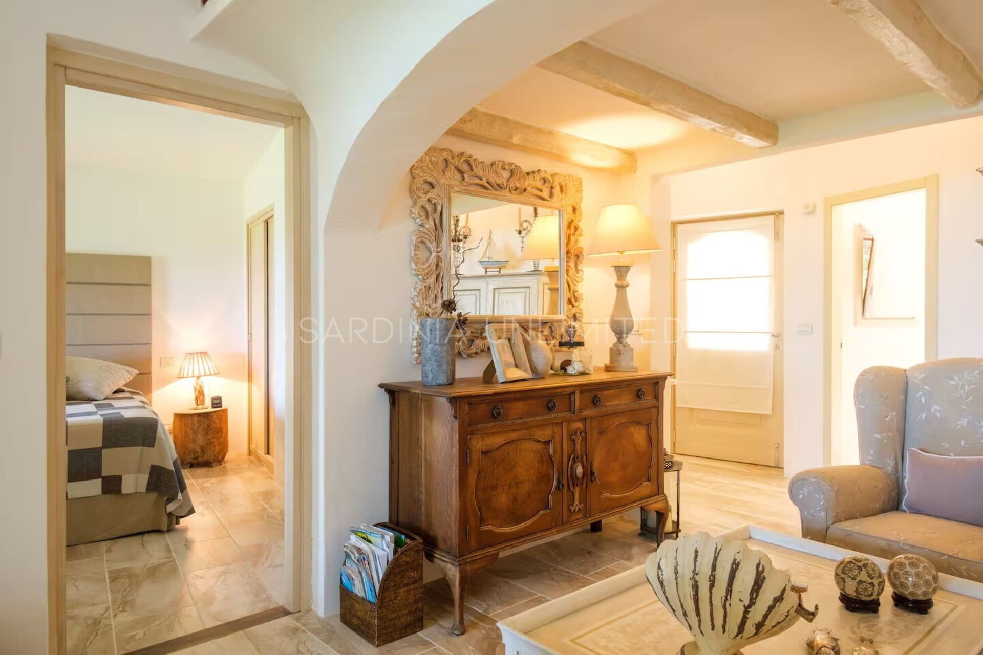 Binnen combineert Villa Cala Granu elegantie en functionaliteit in een lichte en verfijnde omgeving, in perfecte shabby chic-stijl, zonder in te boeten aan modern comfort.