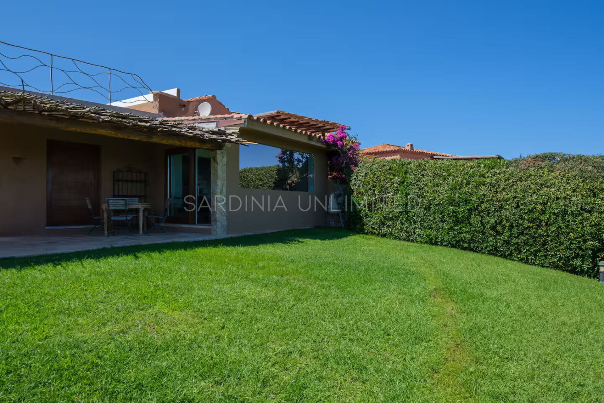 De ruime privé-tuin, tot in de kleinste details onderhouden en voorzien van een weelderig Engels gazon, biedt een oase van rust – perfect om te ontspannen na een duik of een wandeling langs de stijlvolle restaurants en chique boetieks in de buurt.