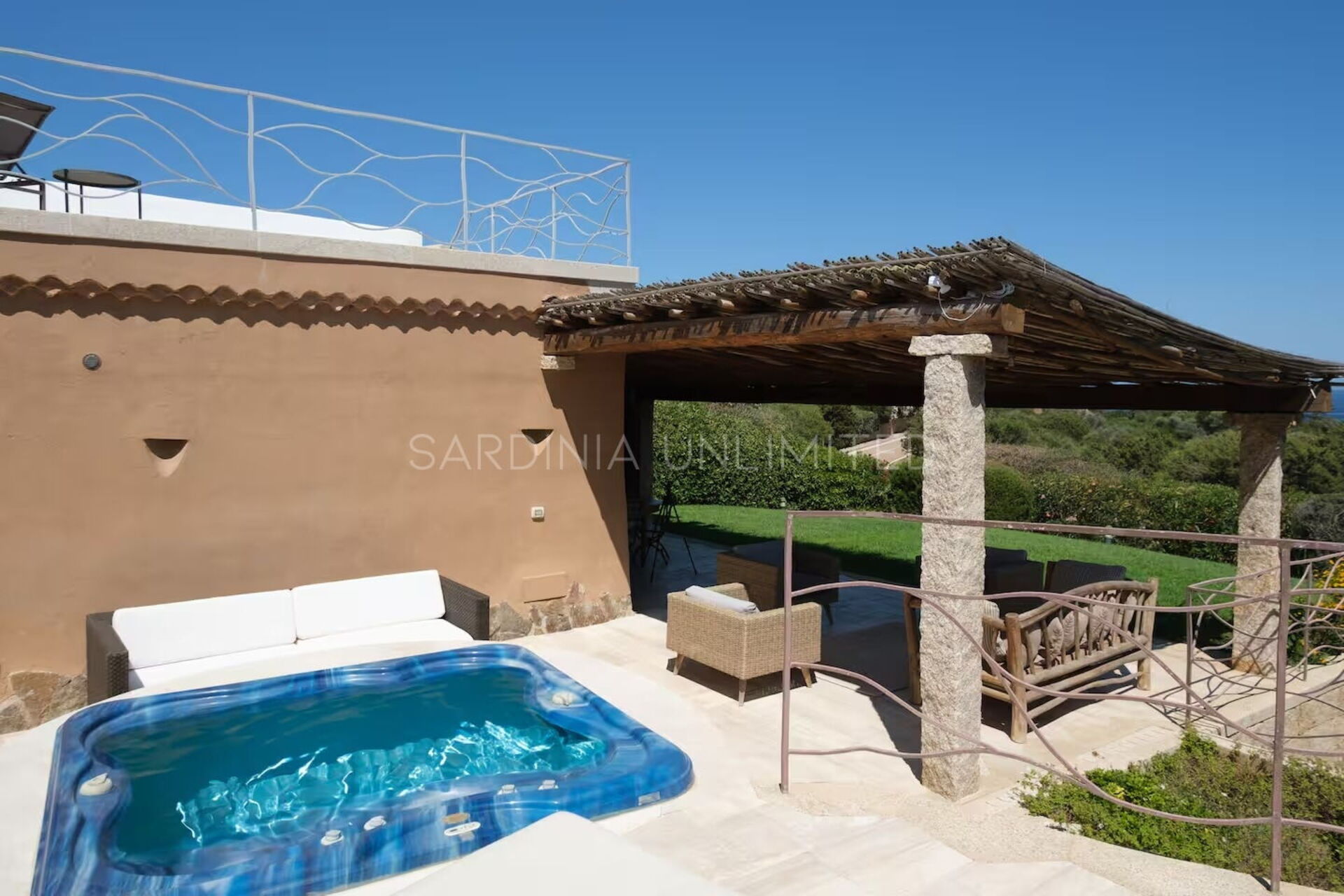 Het buitengebied wordt vervolledigd door het panoramische zonneterras met comfortabele ligstoelen en een jacuzzi, voor momenten van puur welzijn met een spectaculair uitzicht op de smaragdgroene zee.