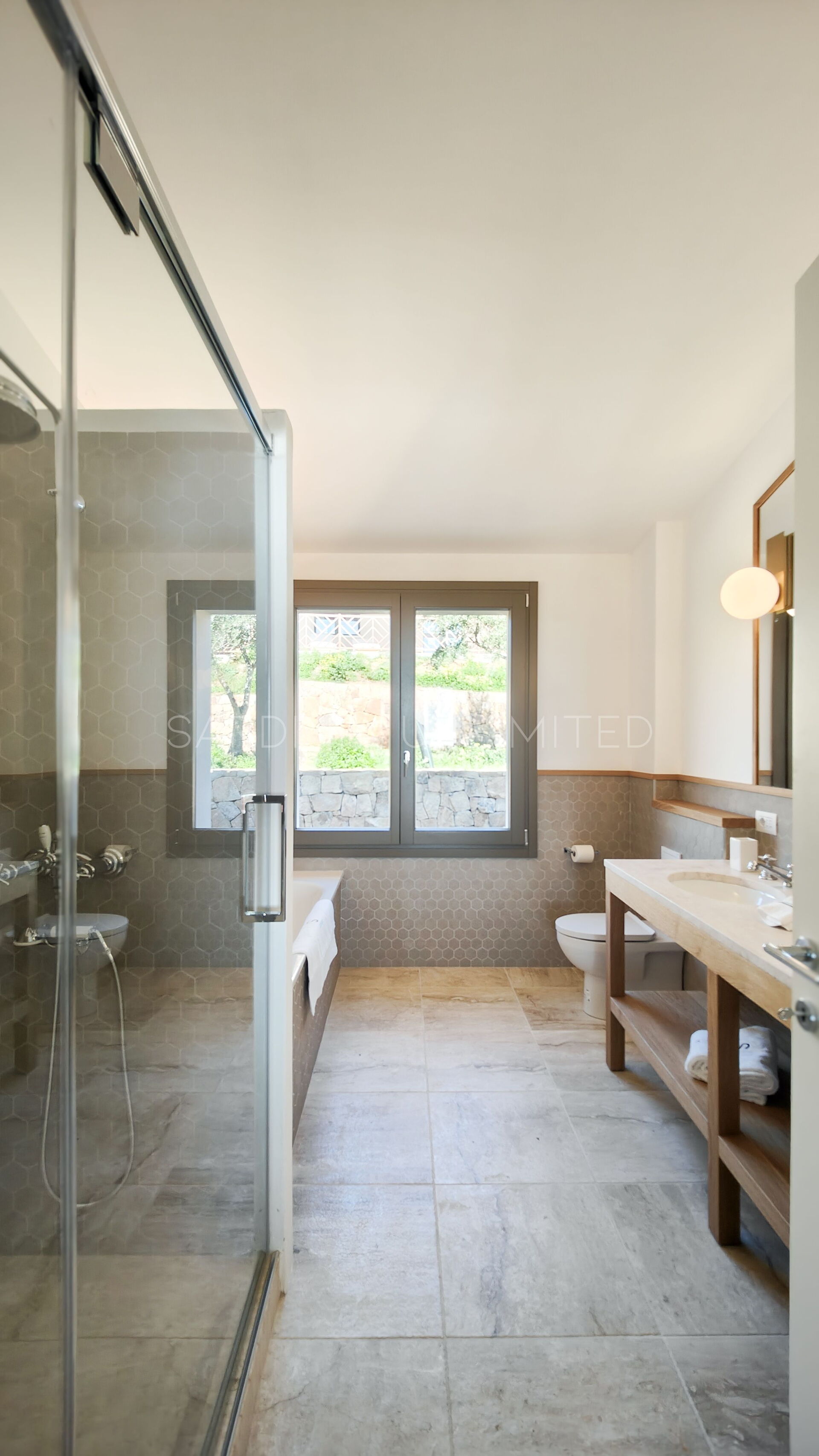 Вилла располагает тремя просторными спальнями с двуспальными кроватями, каждая из которых оснащена раскладным диваном и ванной комнатой с ванной и отдельным душем. Четвертая спальня, также элегантная, также имеет собственную ванную комнату с душем. Кроме того, гости могут воспользоваться изысканным гостевым туалетом, предназначенным для удобства всех.