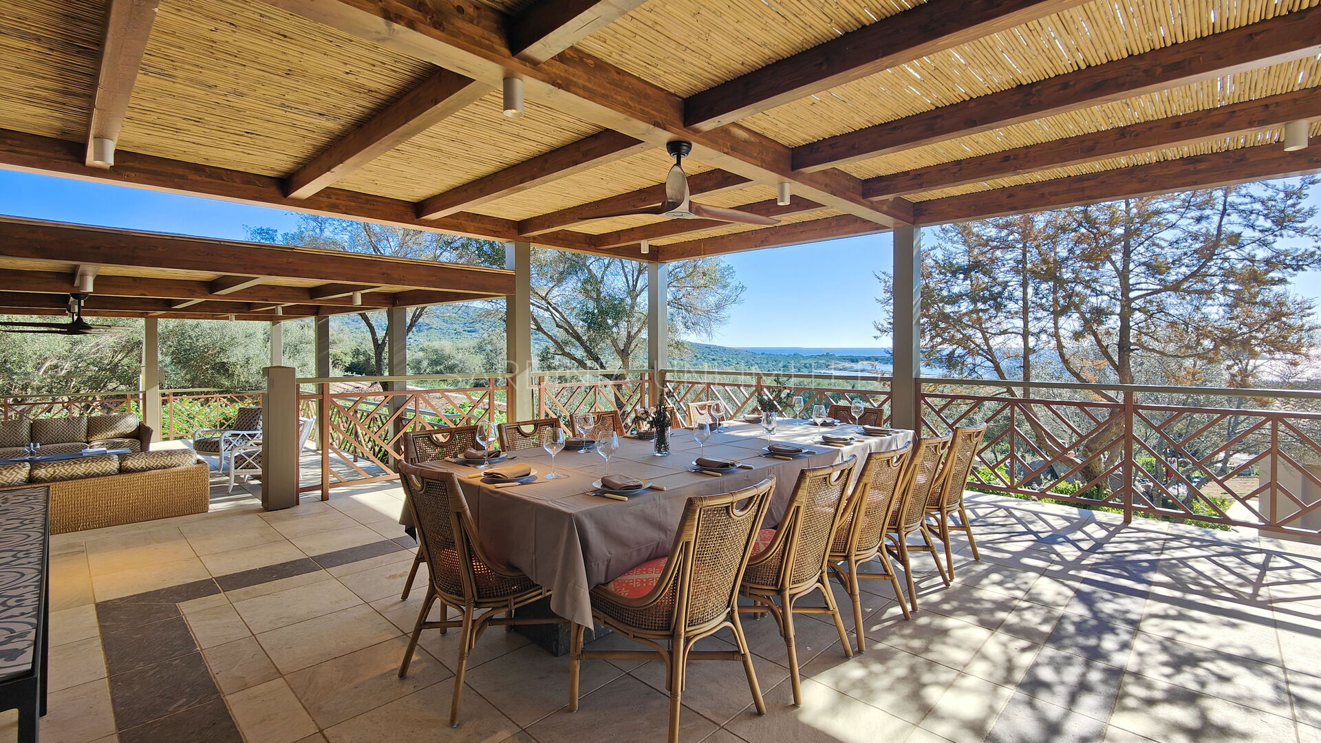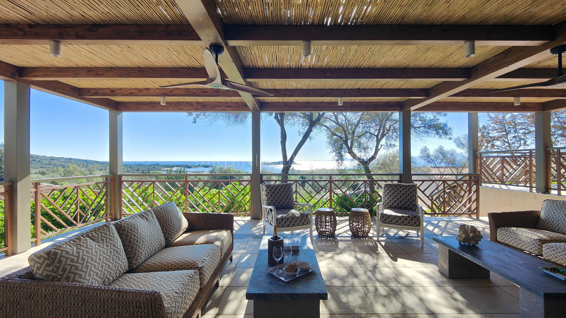 На улице две большие крытые террасы с удобными зонами для отдыха и приема пищи приглашают наслаждаться захватывающим видом и приятным морским бризом. Большой подогреваемый бассейн размером 15x5,5 метров — это идеальное место для отдыха и восстановления сил.