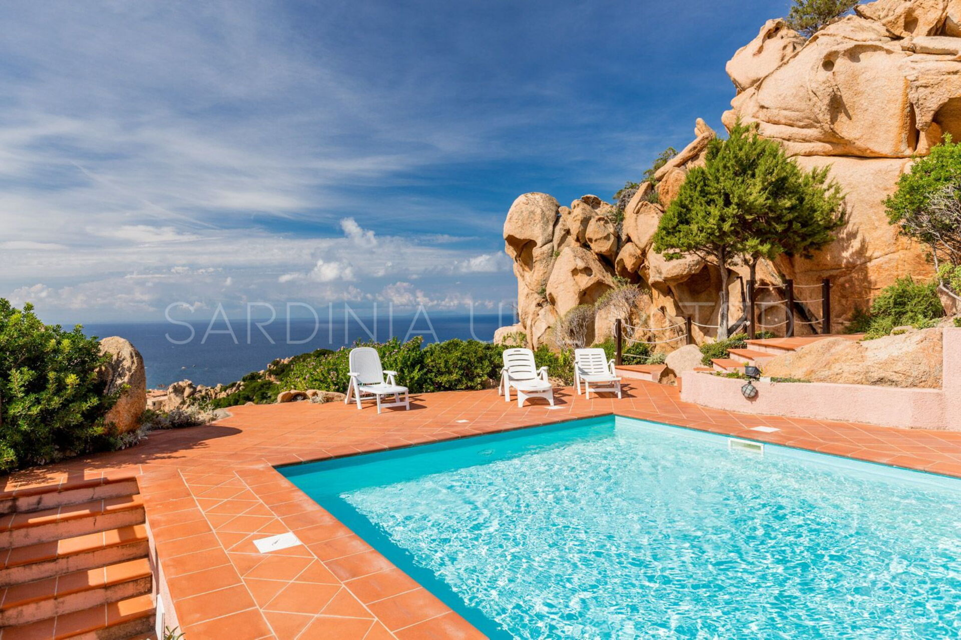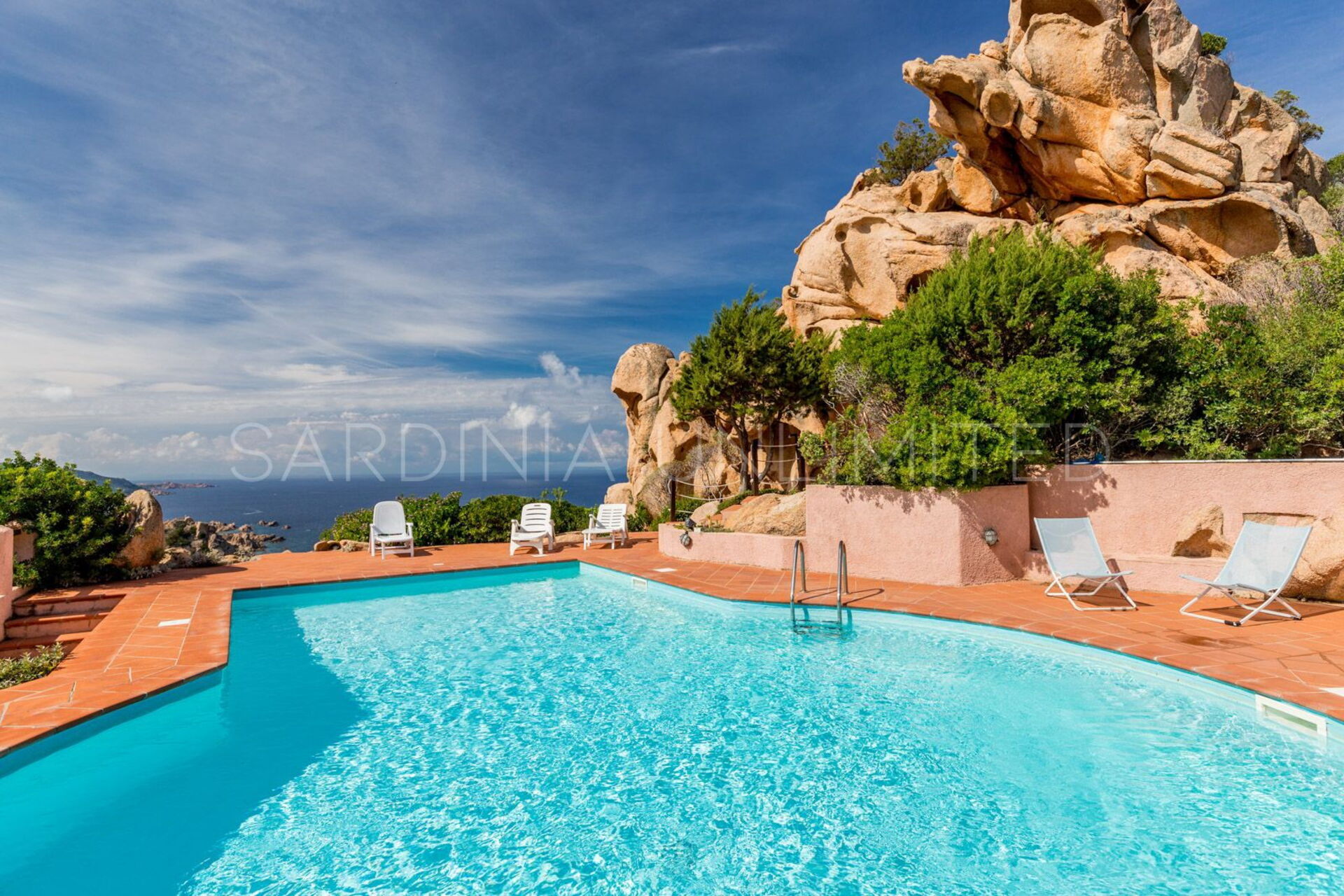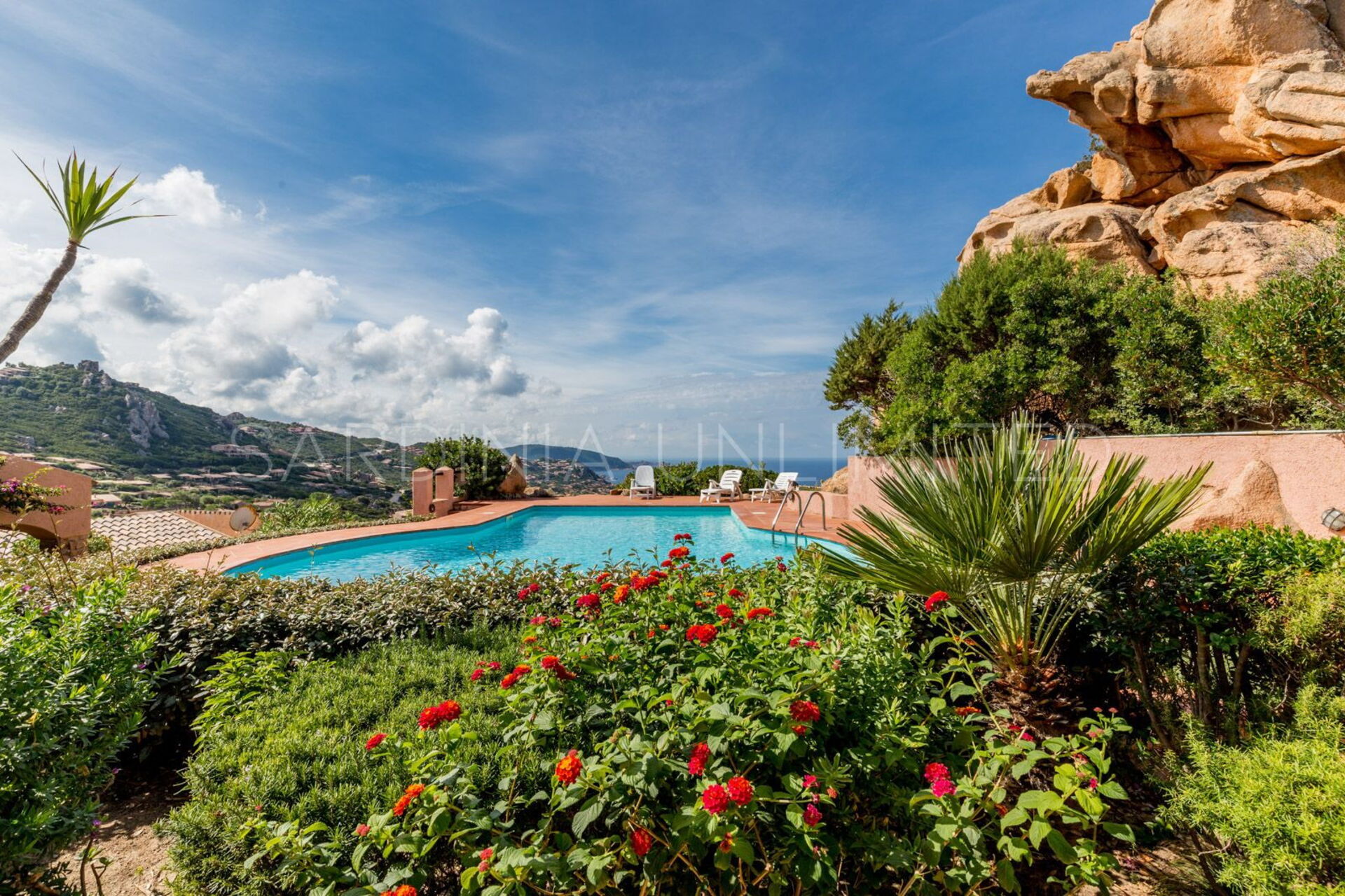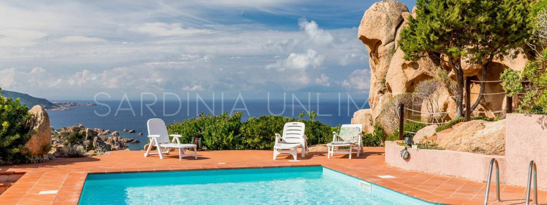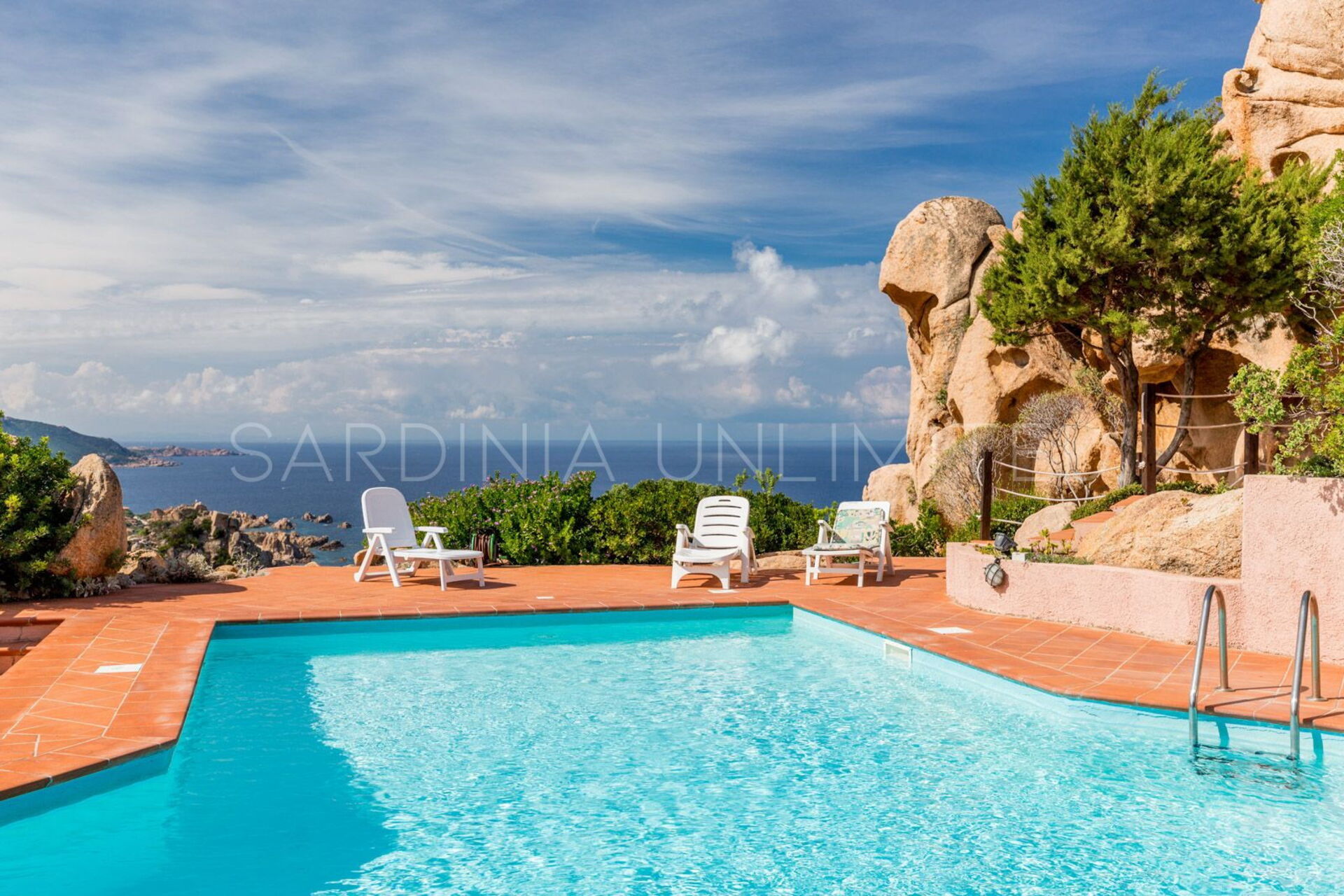 На террасе есть удобный бассейн с длинными шезлонгами, которые позволят вам отдохнуть уникальным способом. Панорамный вид на побережье и горы Коста Парадизо создает незабываемый момент.
