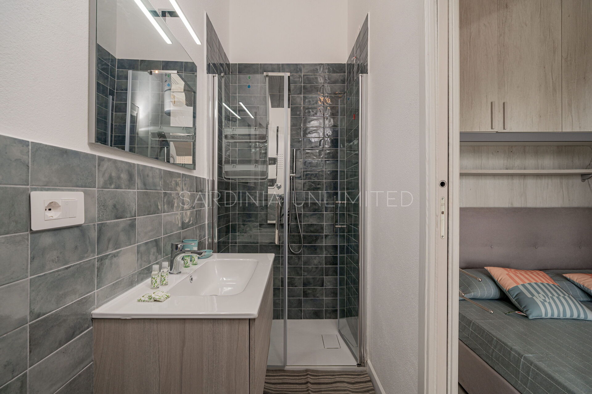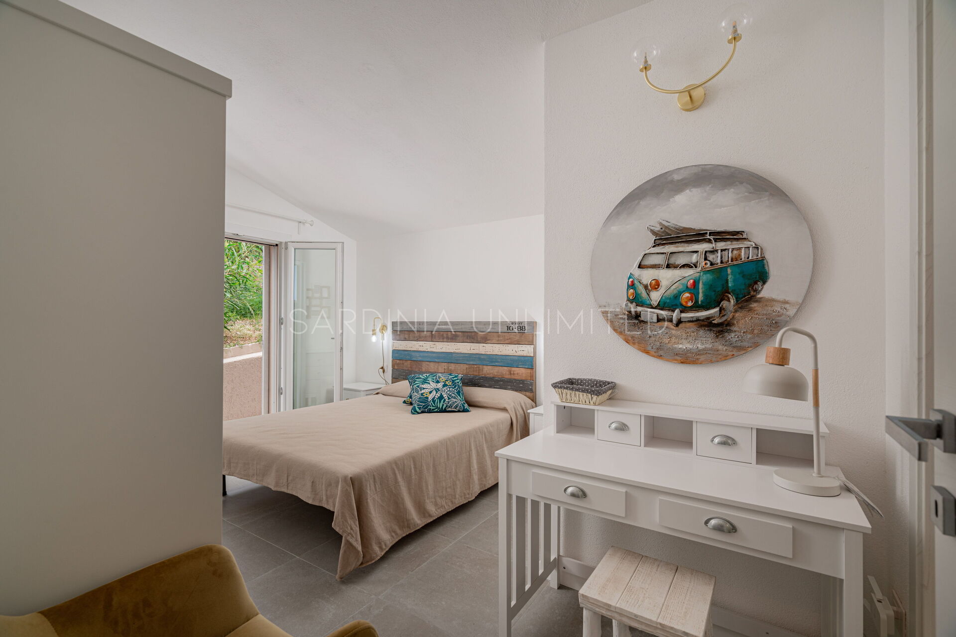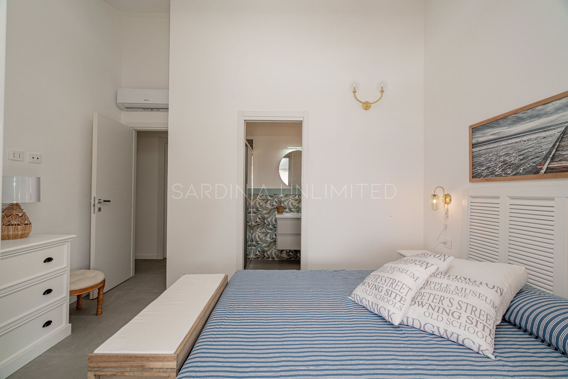 Спальная зона состоит из пяти просторных спален: четырех с двуспальными кроватями и одной с односпальной. Каждая комната спроектирована для уединения и комфорта, а из некоторых комнат есть выход на небольшие террасы. На вилле пять современных ванных комнат, по одной на каждую спальню, сочетающих в себе функциональность и комфорт.